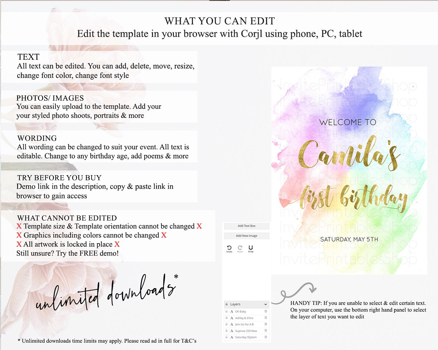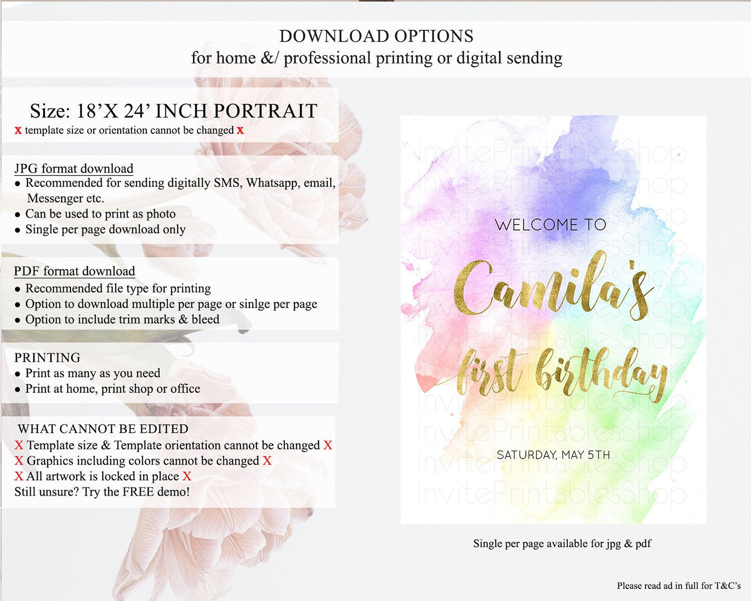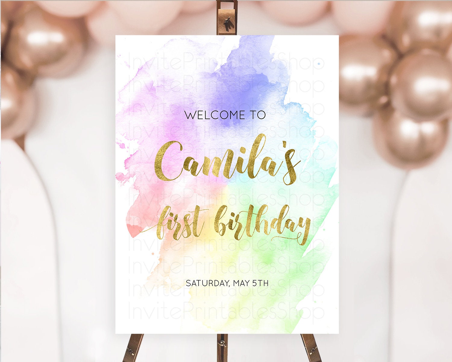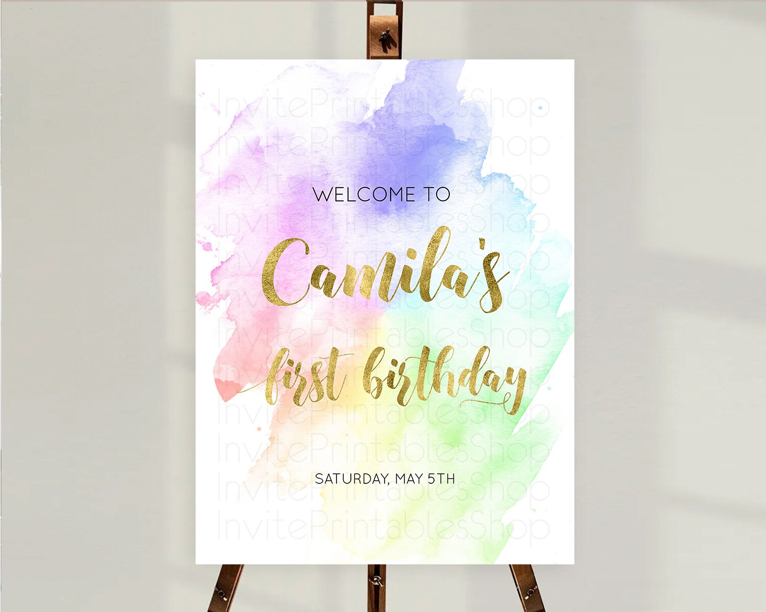 Pastel Welcome Sign Pastel Rainbow Welcome Sign Colorful Rainbow Confetti Watercolor Glitter Pastel First Birthday Welcome Sign D10876