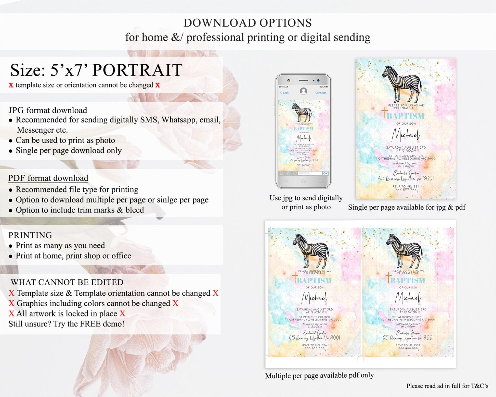 • Template size & orientation cannot be changed. Please use the demo link to confirm this product suits your needs.