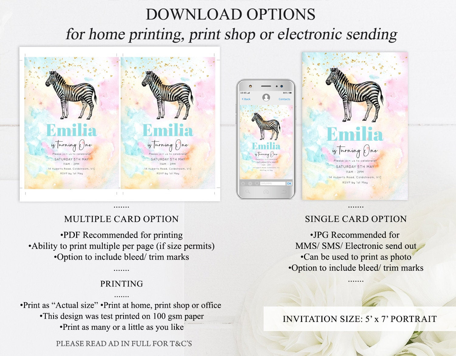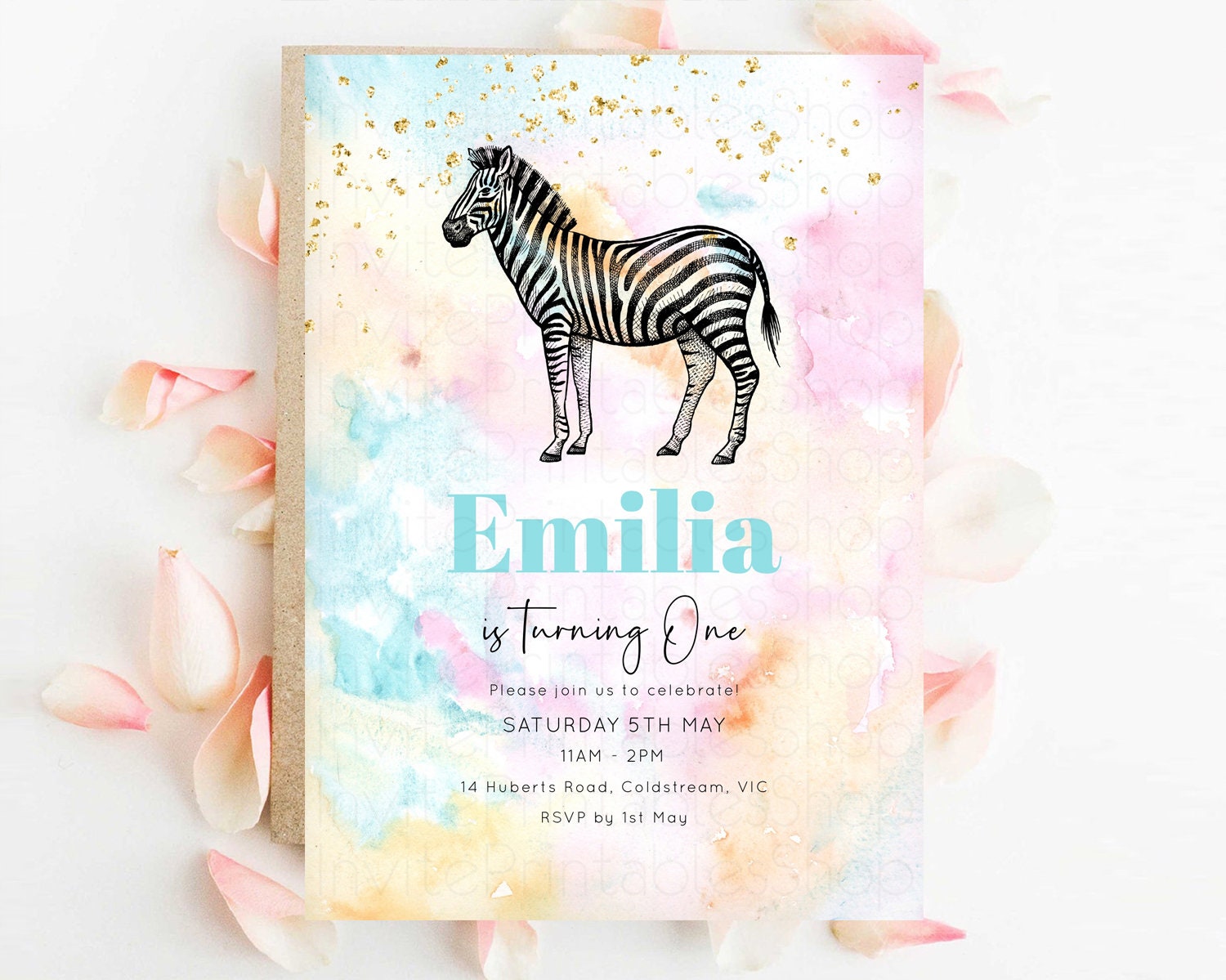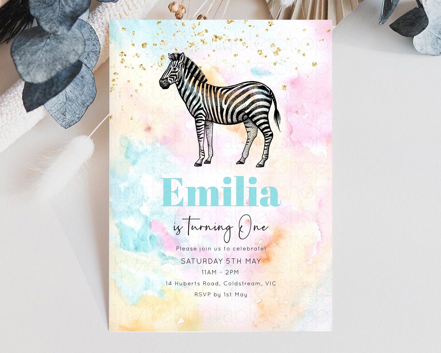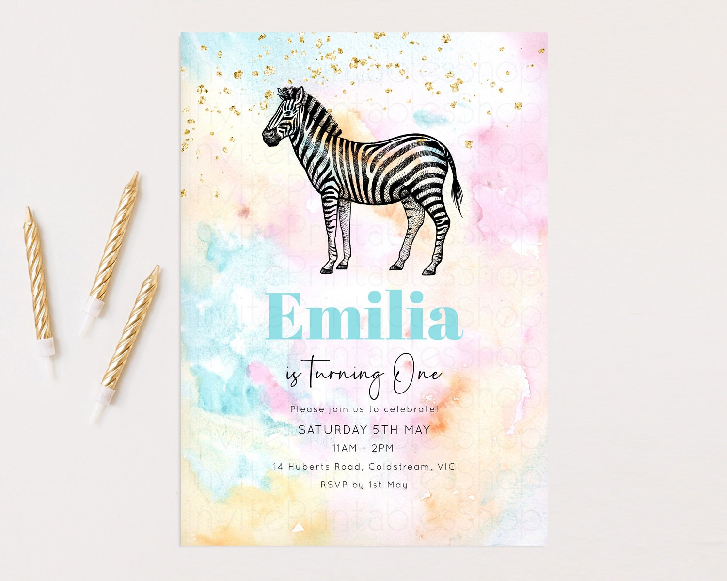 Pastel Zebra Birthday Invitation Pastel Zebra Invite Rainbow Zebra Invitation Colorful Watercolor Invite Safari Zoo Glitter Invite W282