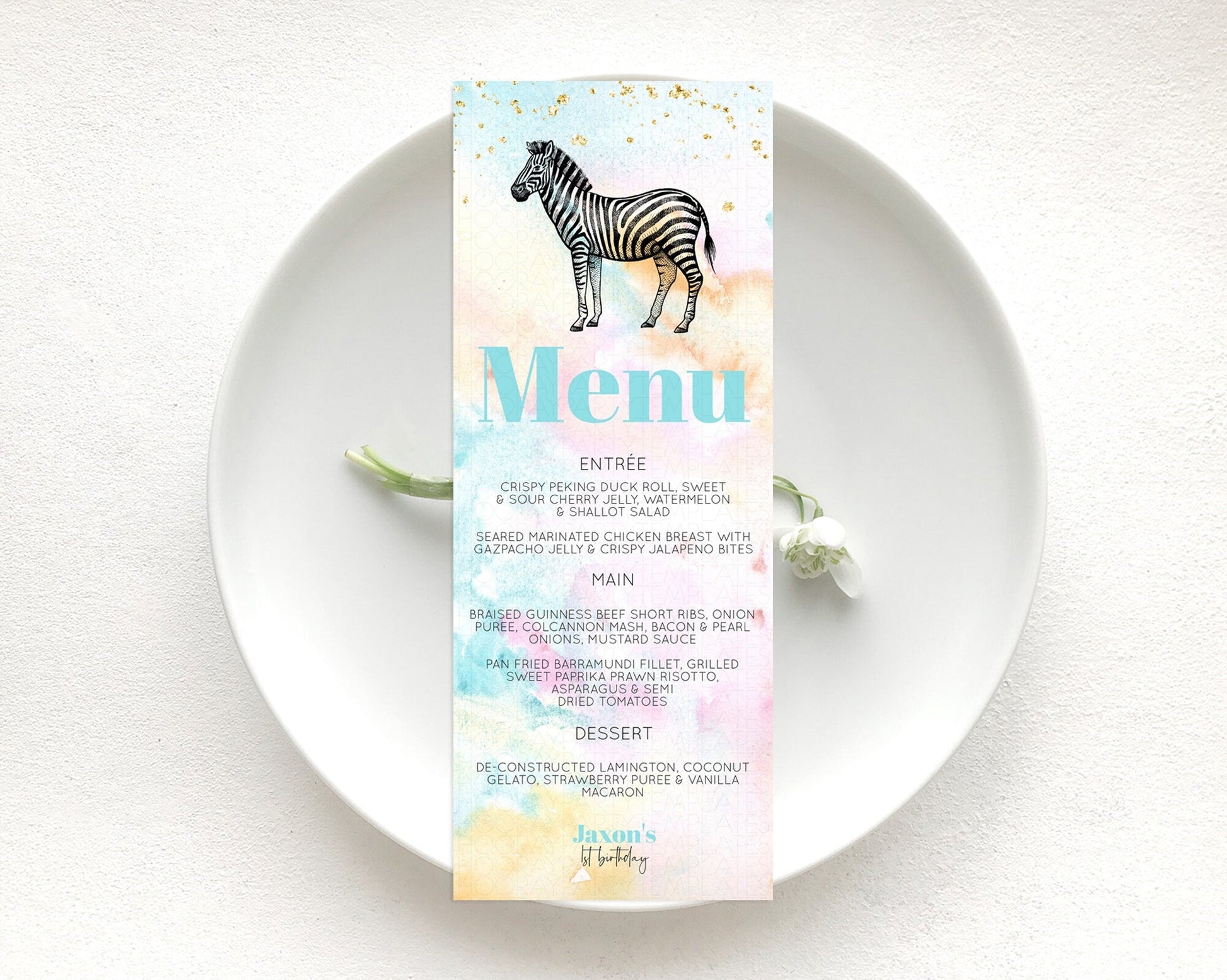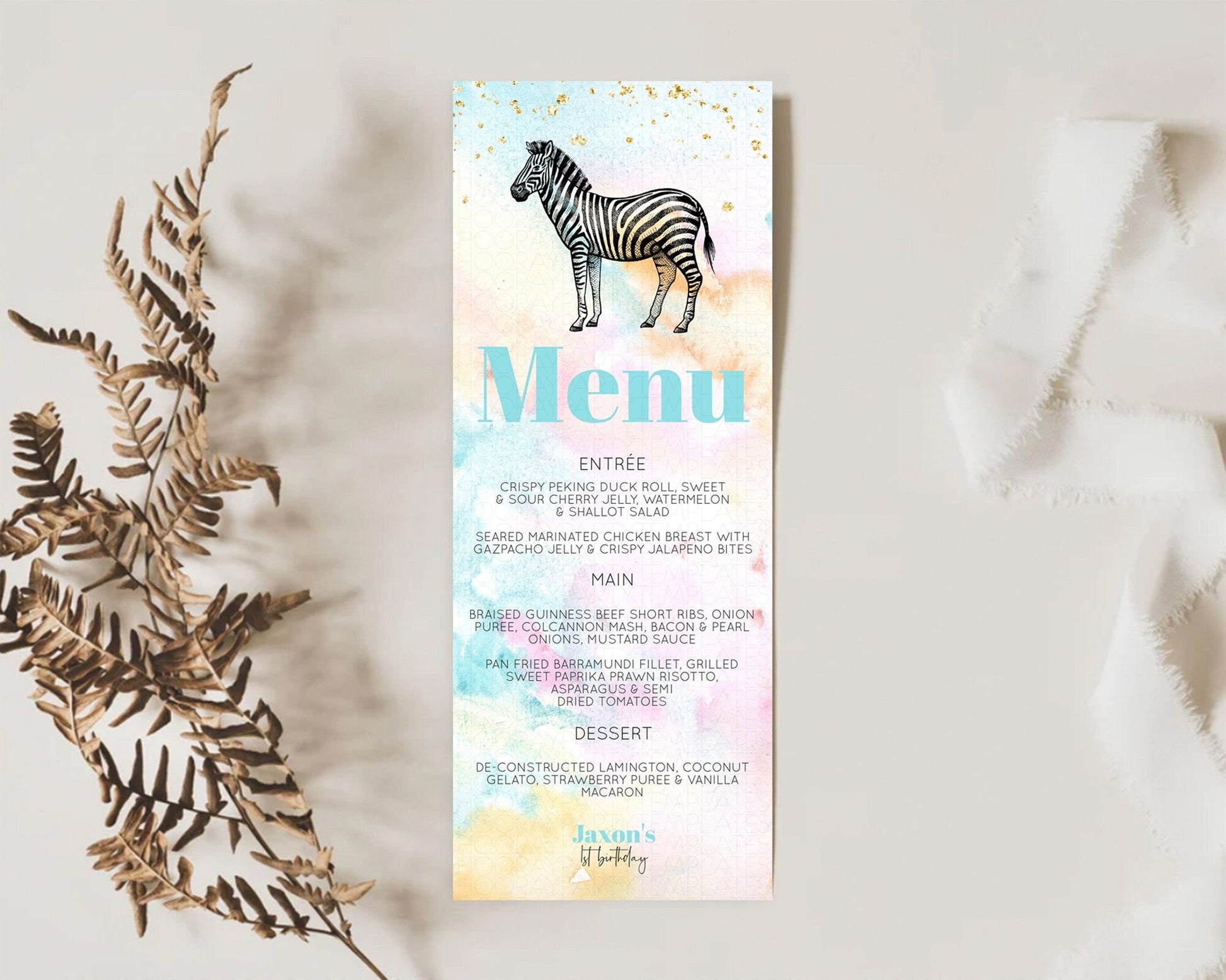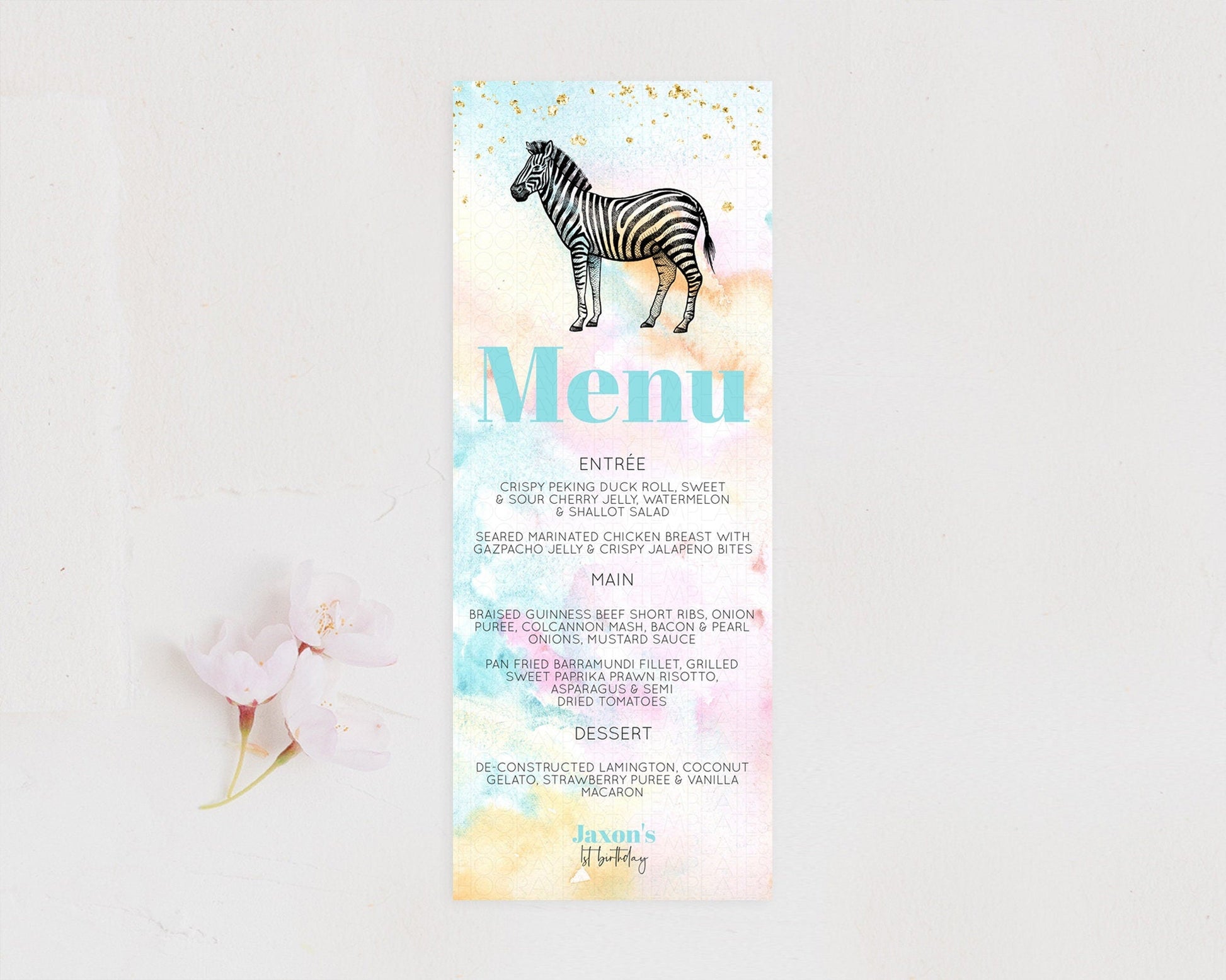 Pastel Zebra Menu Rainbow Zebra Menu Template Colorful Rainbow Table Decor Pastel Dinner Dessert Menu Zebra Party Food Menu D10281