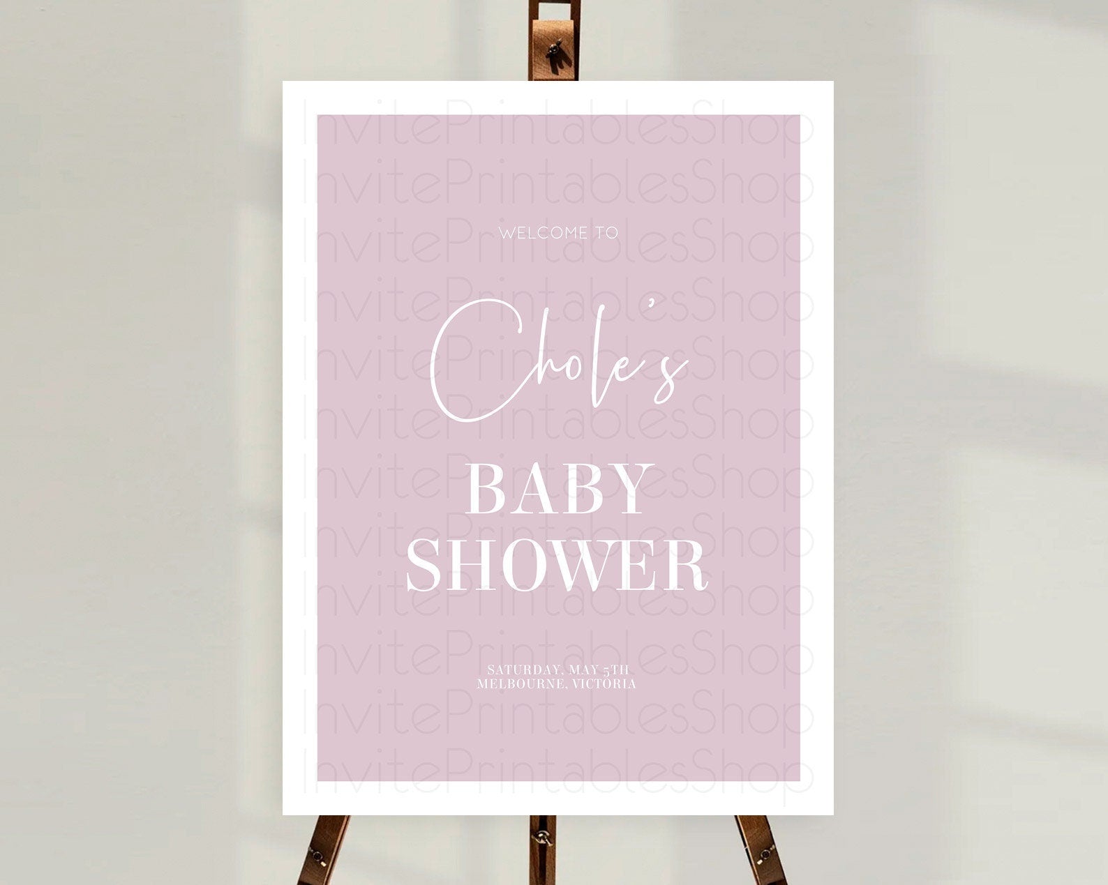 Pink Baby Shower Welcome Sign Plain Pink Welcome Board Minimalist Pastel Pink Welcome Poster Modern Pink Minimal Welcome Sign D10940