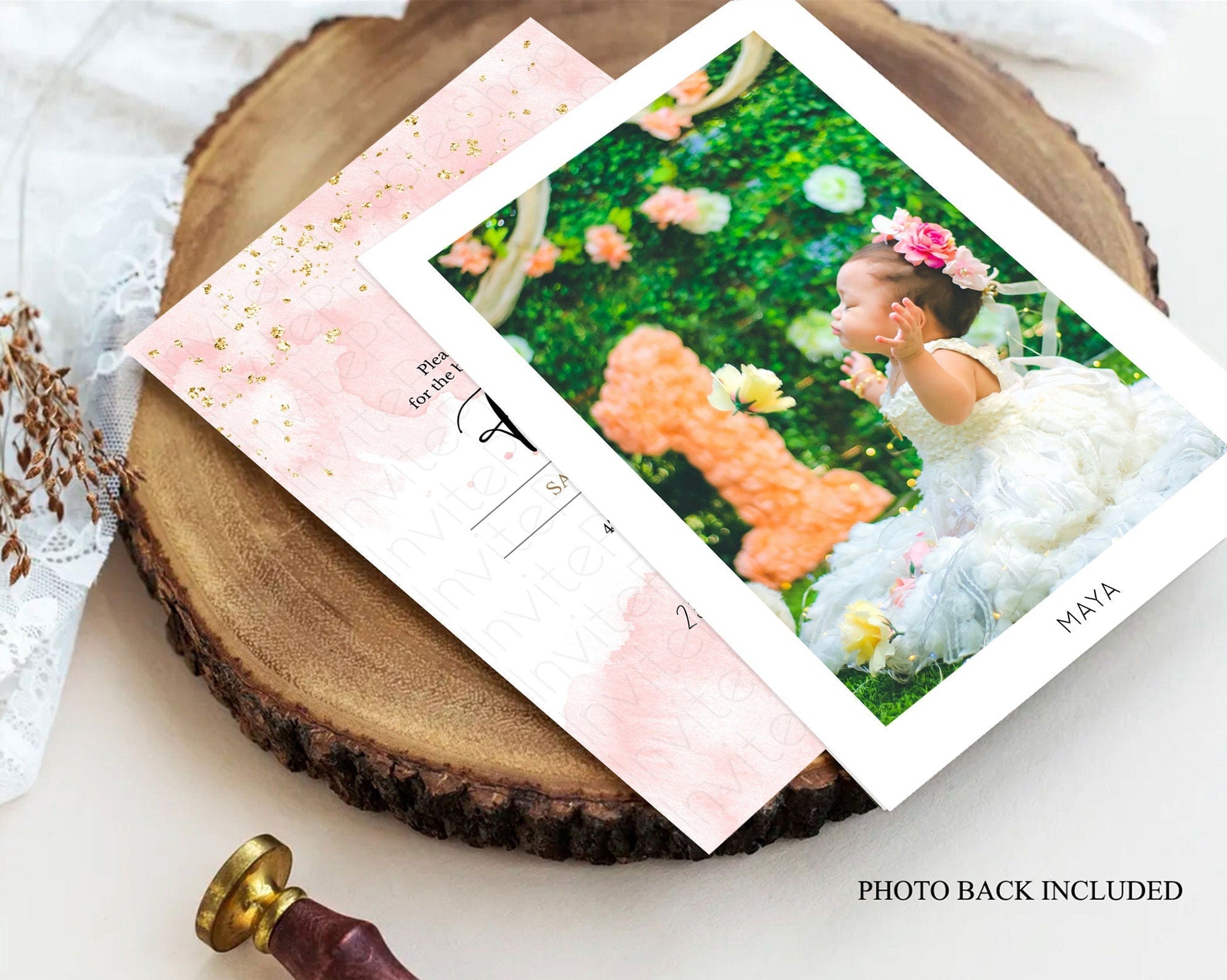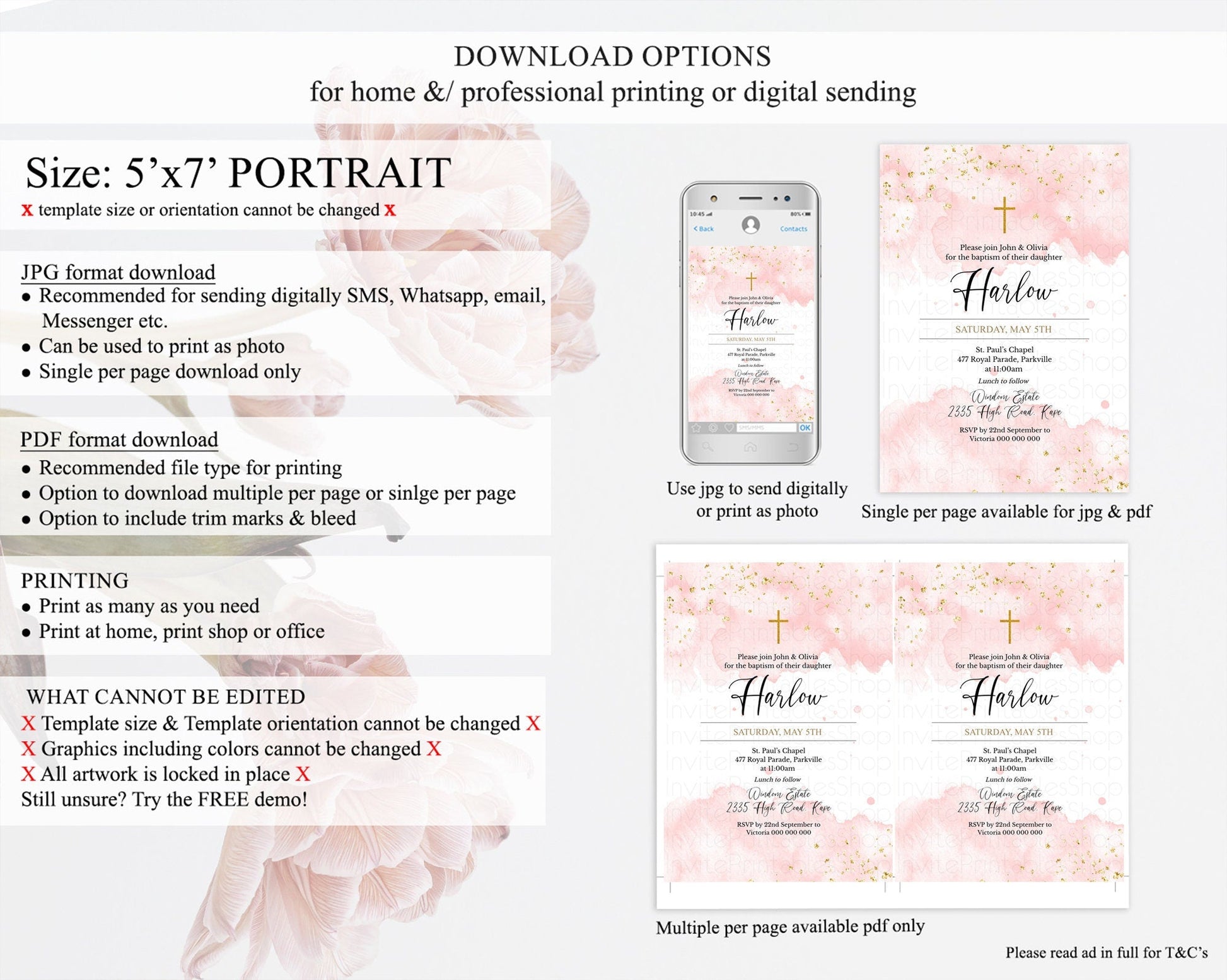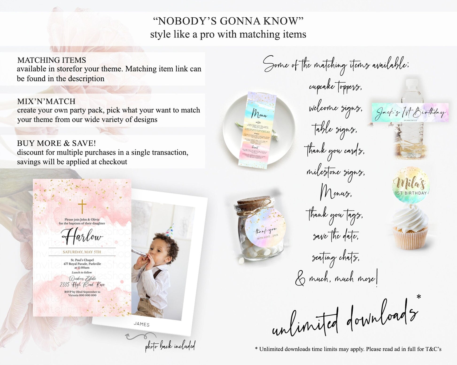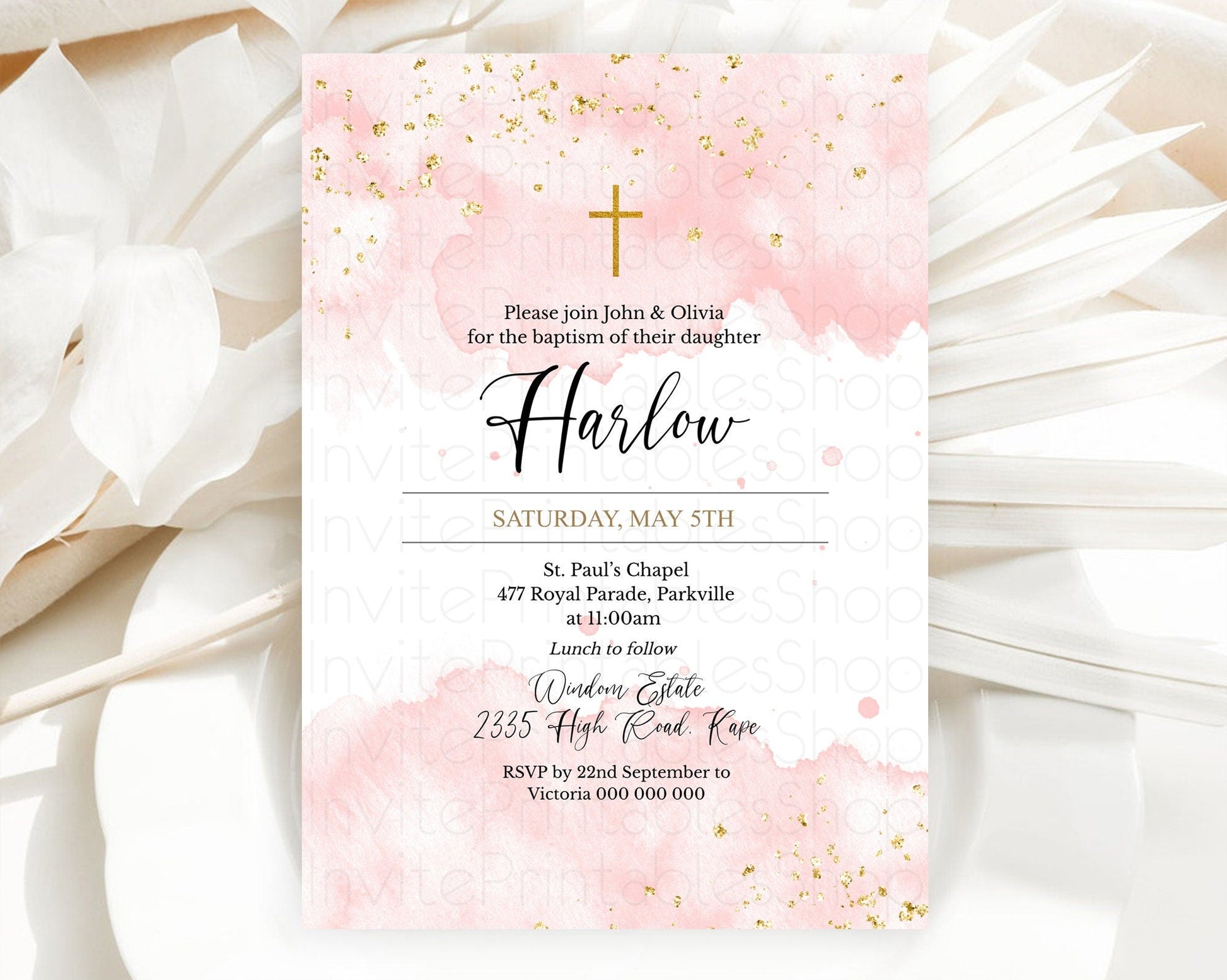 Pink Baptism Invitation Pink Watercolor Baptism 1st Birthday Invitation Pastel Pink Watercolor Christening Invite Pink Splash D10328