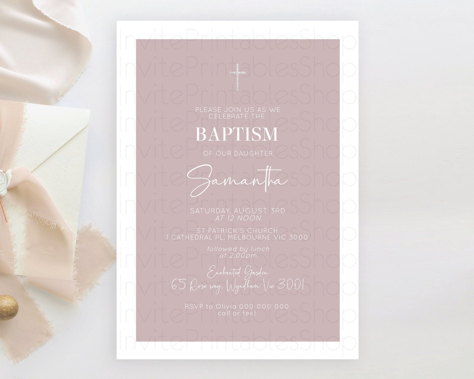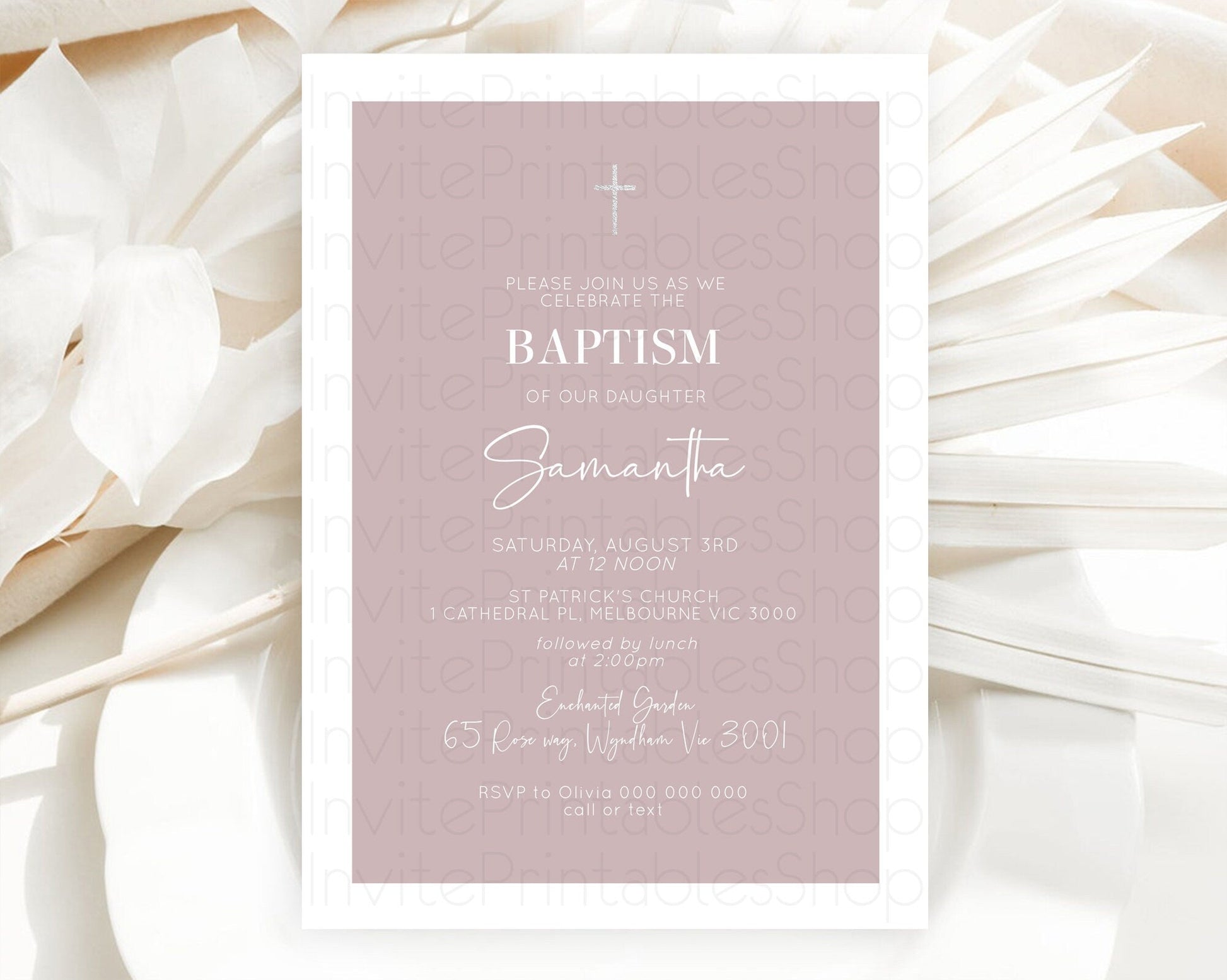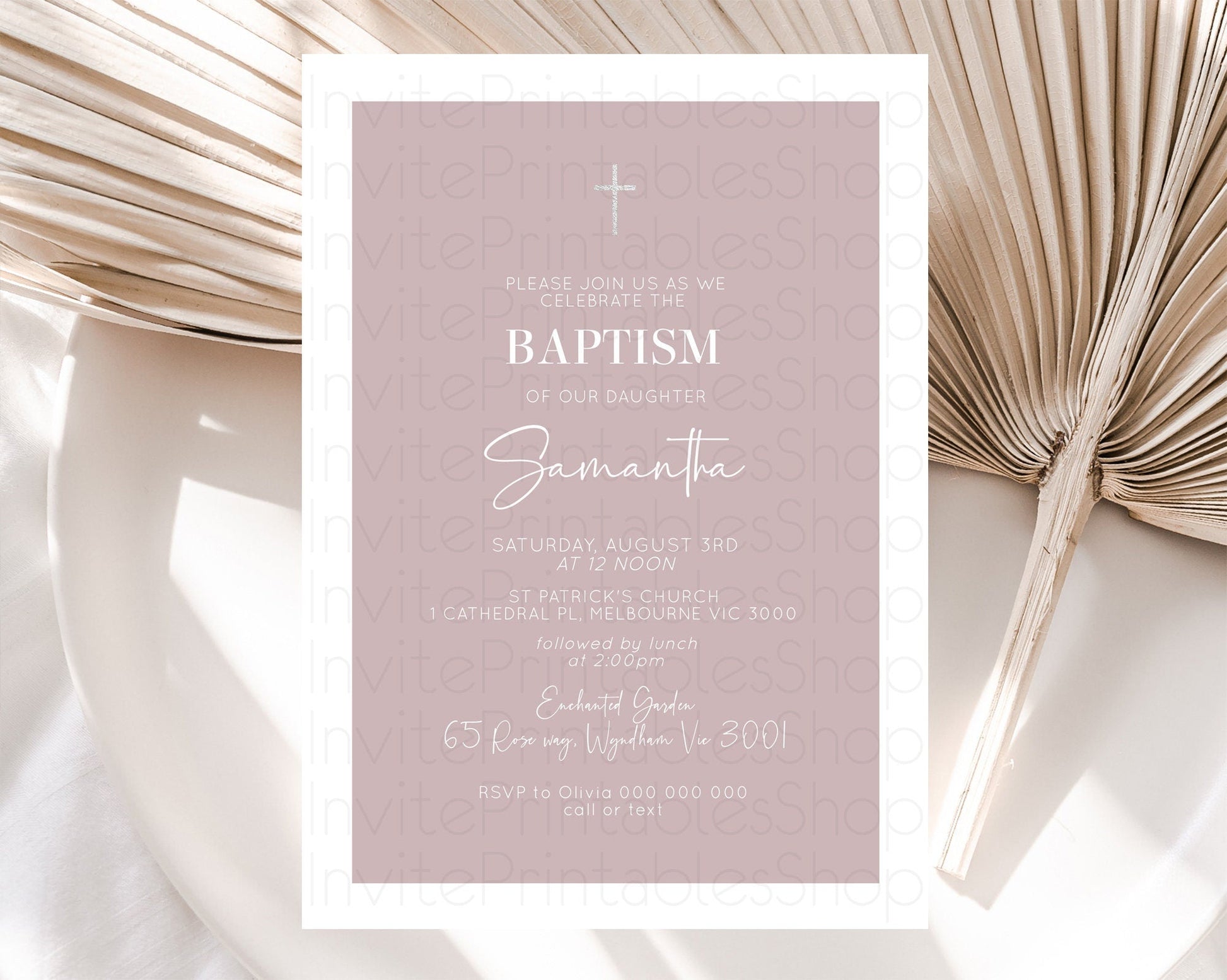 Pink Baptism Invitation Plain Pink Baptism 1st Birthday Invitation Minimalist Pastel Pink Christening Invitation Holy Communion D10936