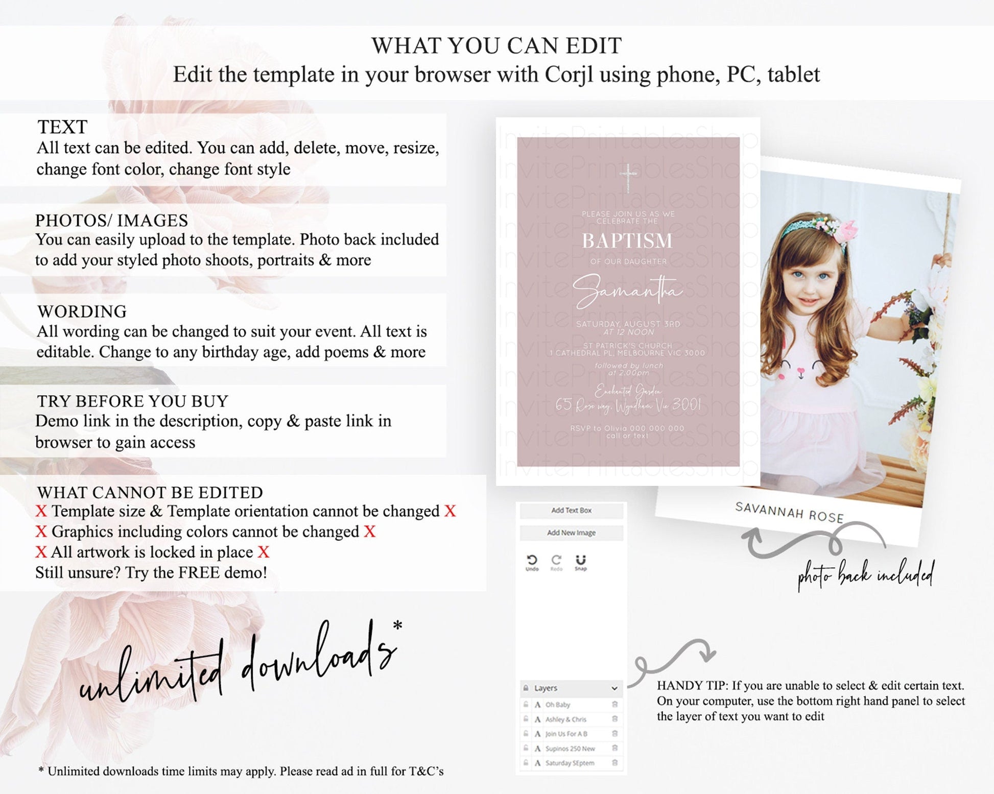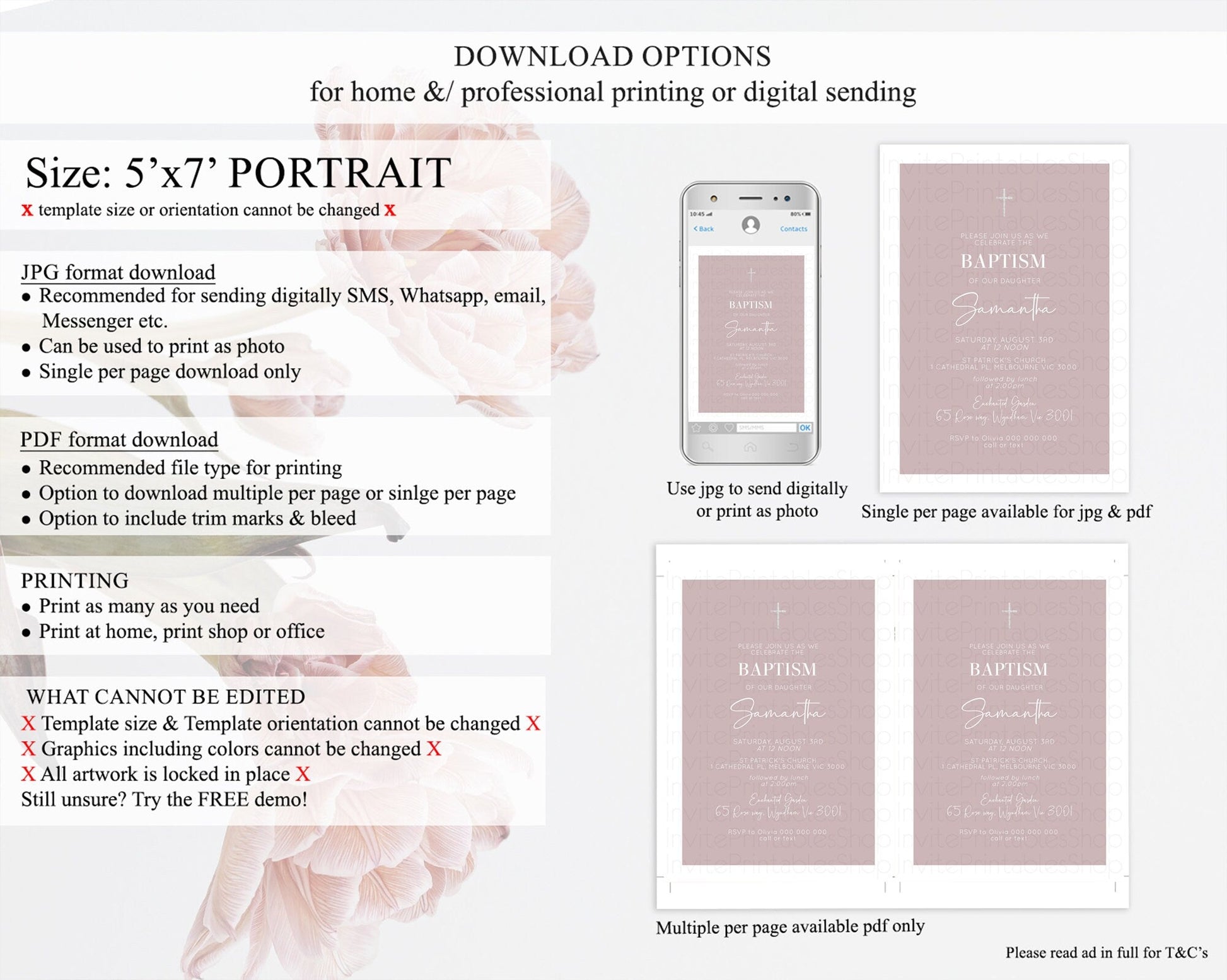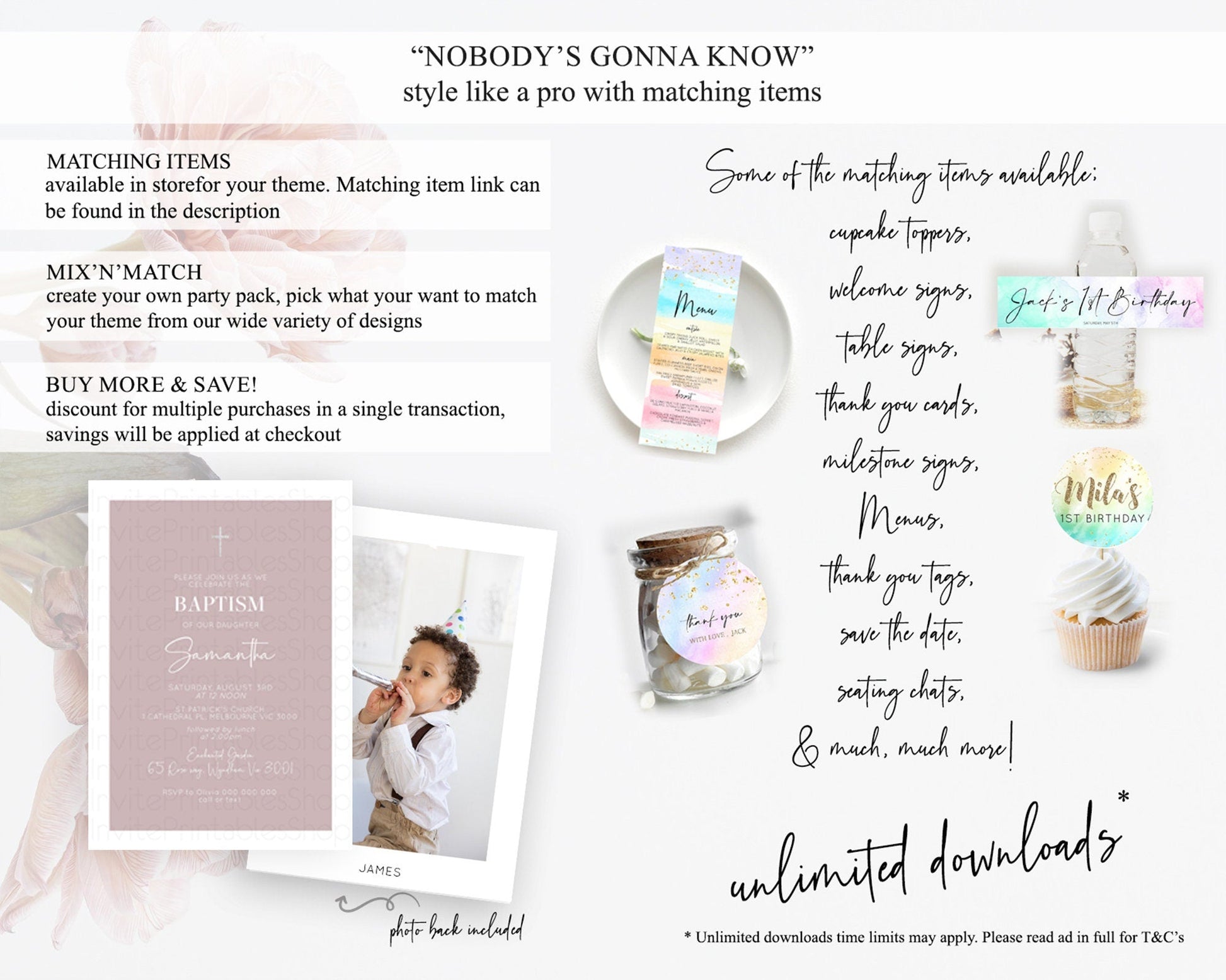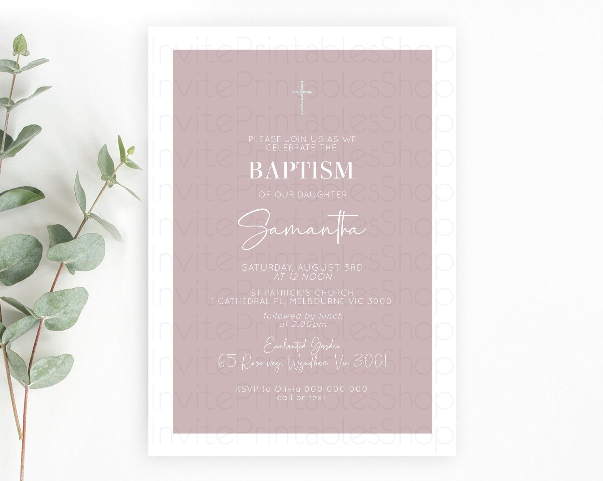 Pink Baptism Invitation Plain Pink Baptism 1st Birthday Invitation Minimalist Pastel Pink Christening Invitation Holy Communion D10936