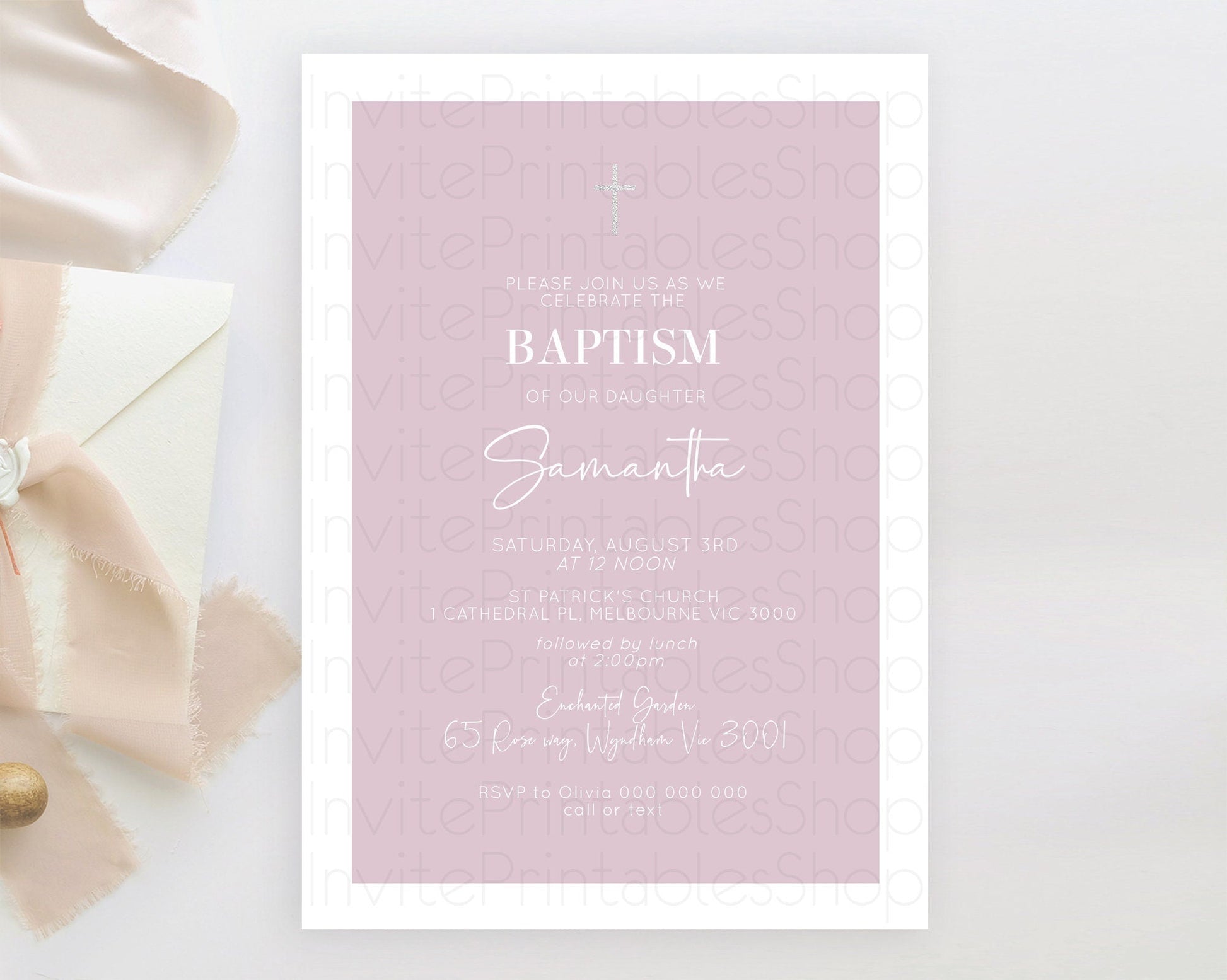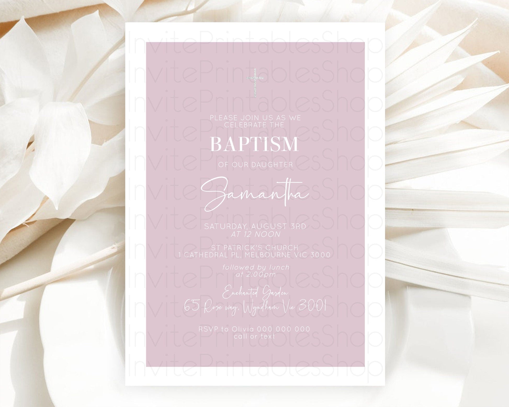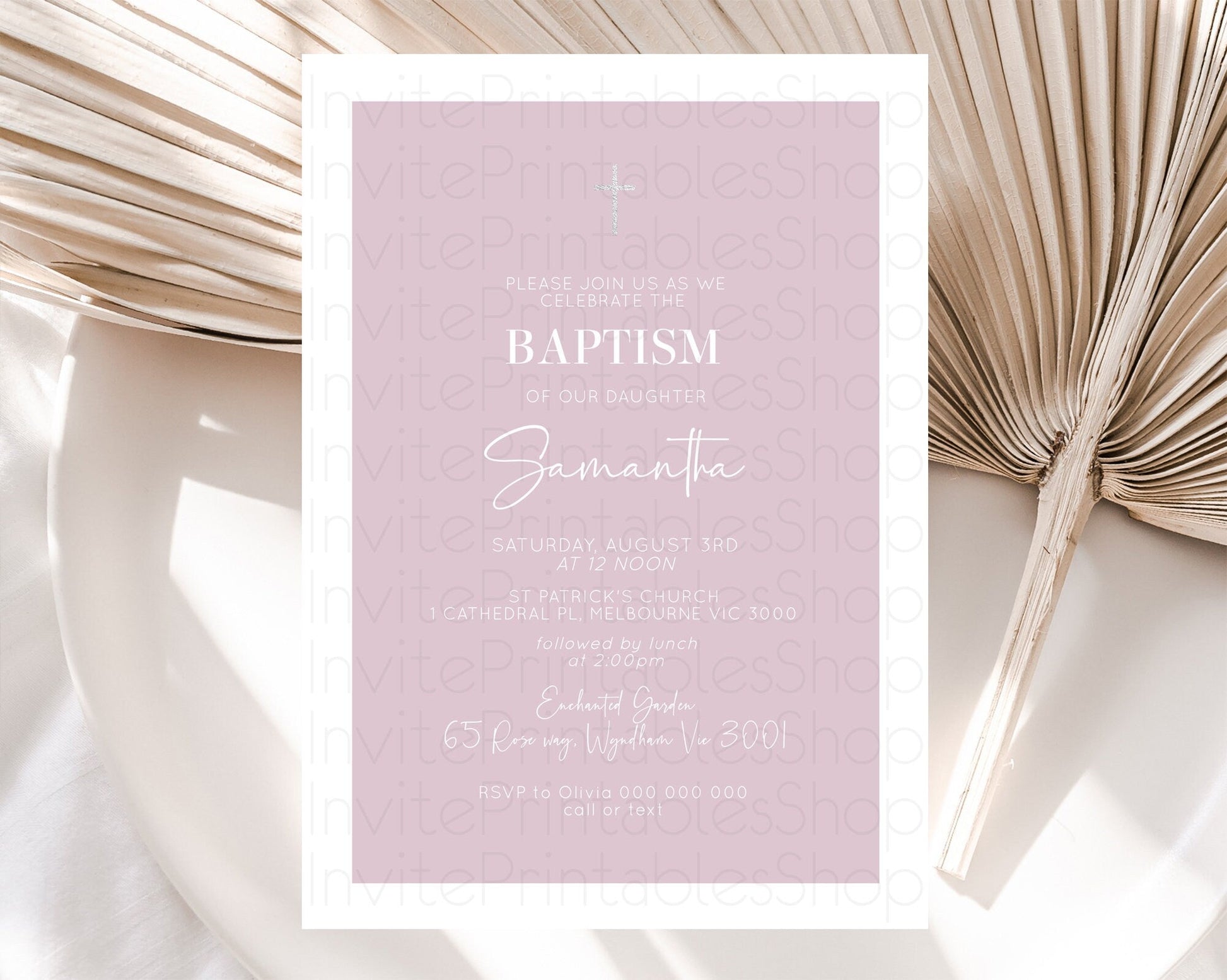 Pink Baptism Invitation Plain Pink Baptism 1st Birthday Invitation Minimalist Pastel Pink Christening Invitation Holy Communion D10940
