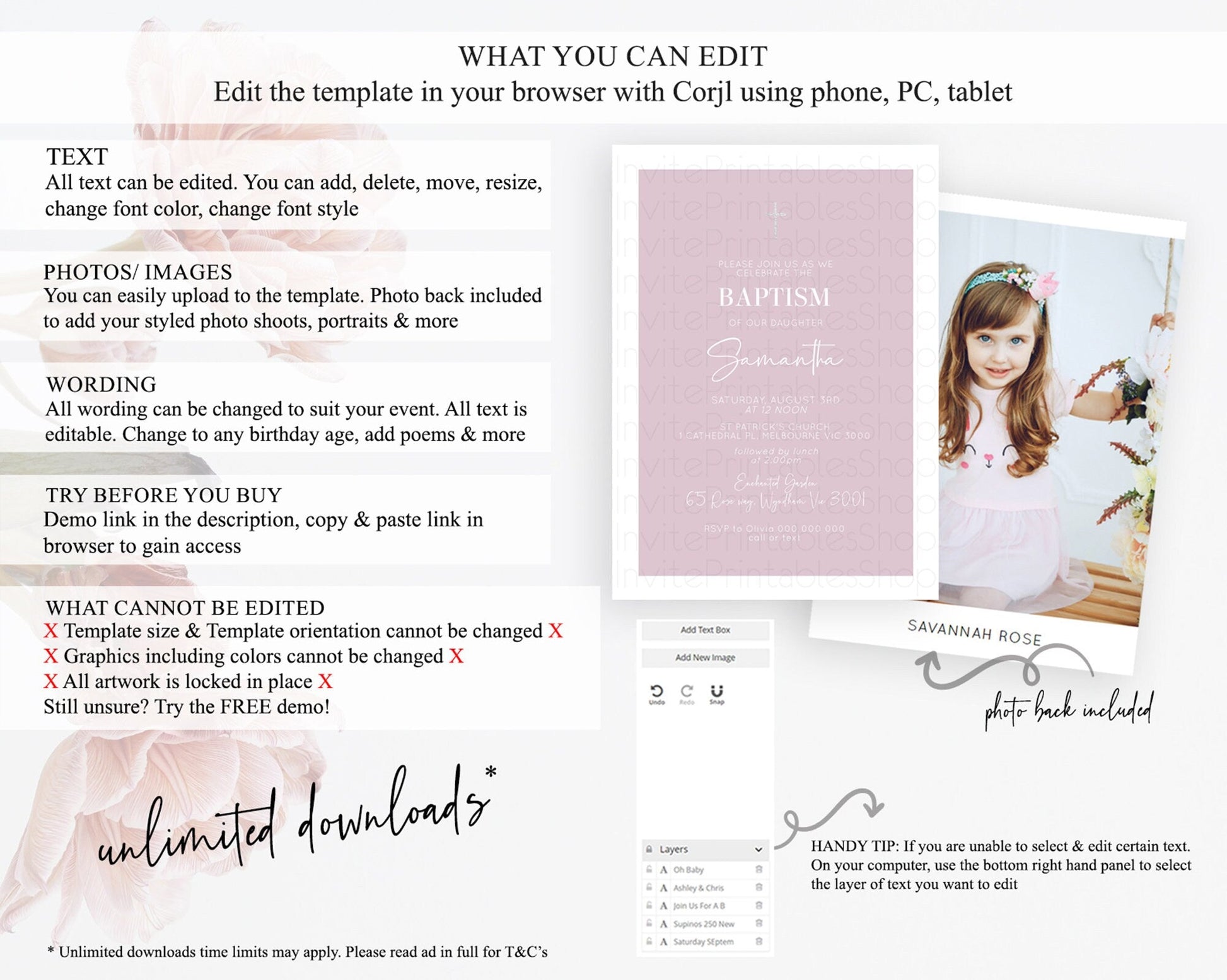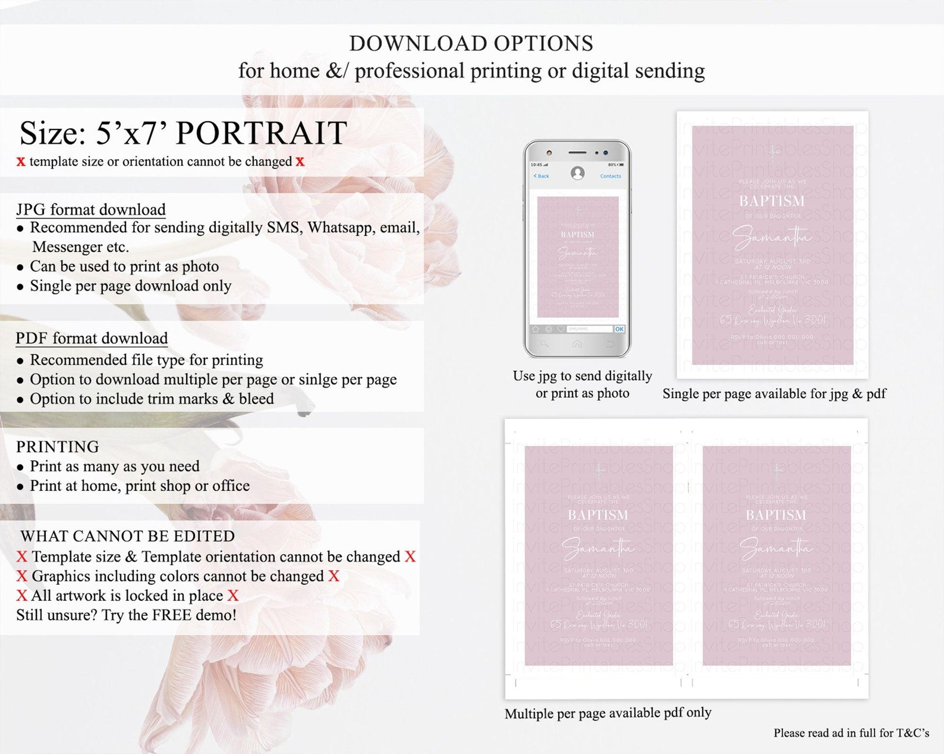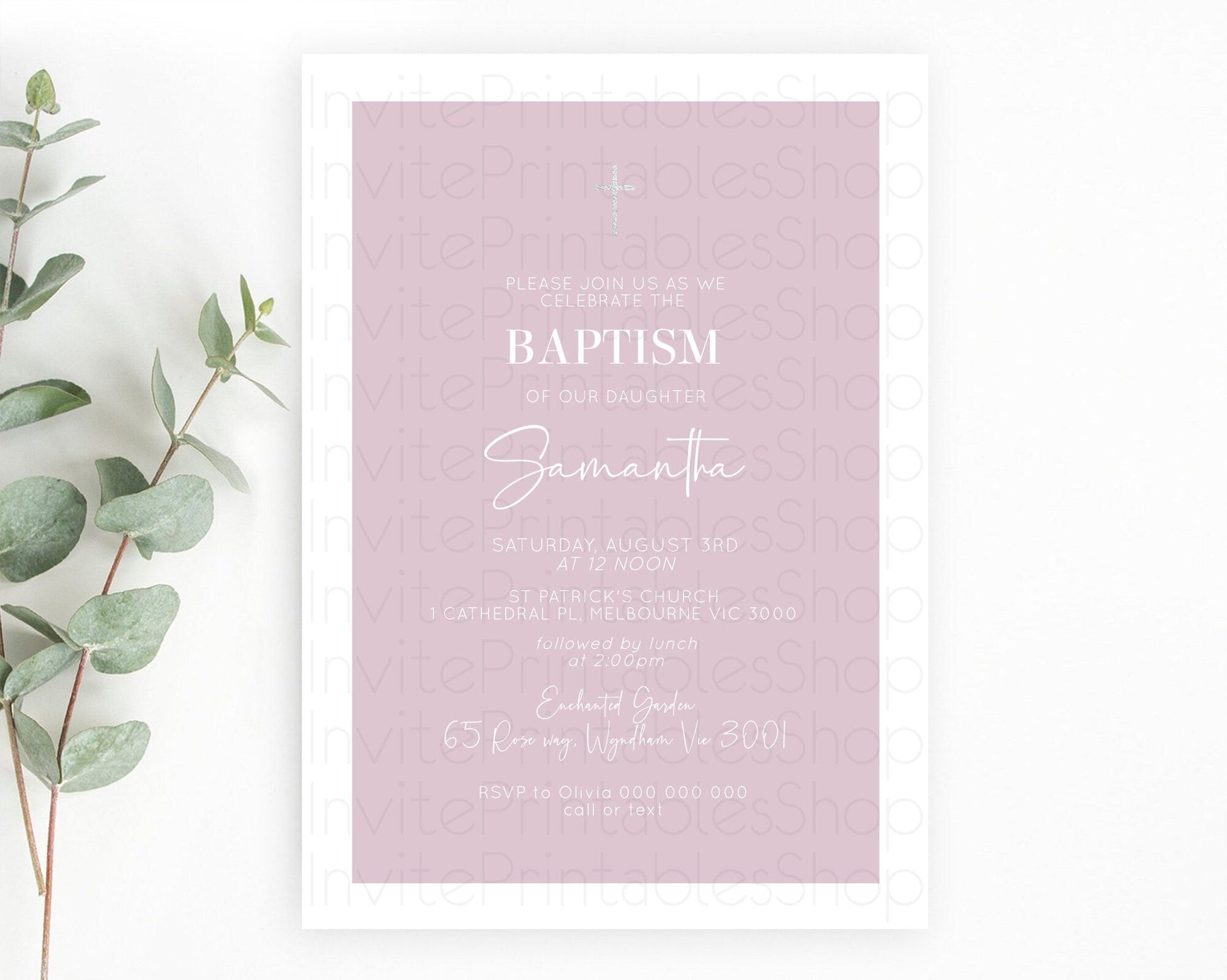 Pink Baptism Invitation Plain Pink Baptism 1st Birthday Invitation Minimalist Pastel Pink Christening Invitation Holy Communion D10940