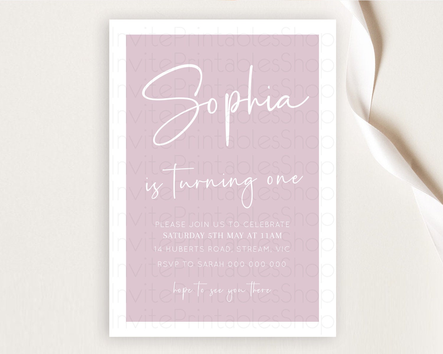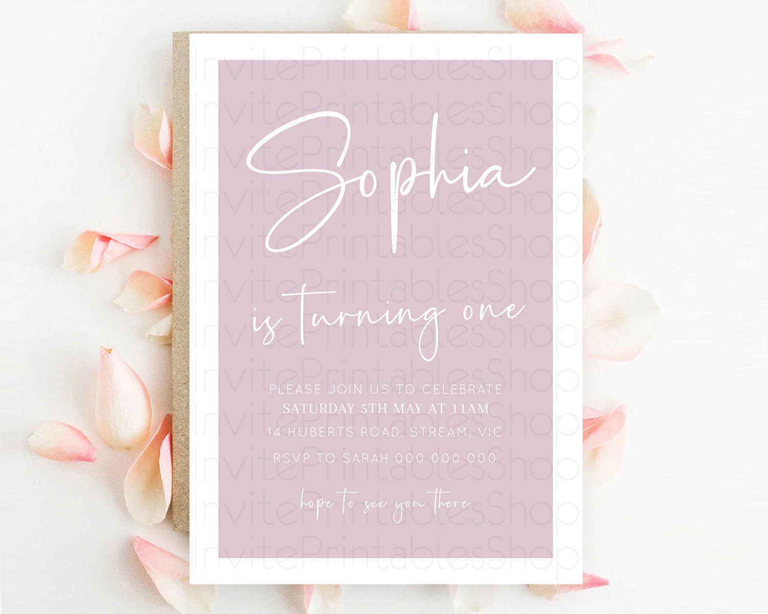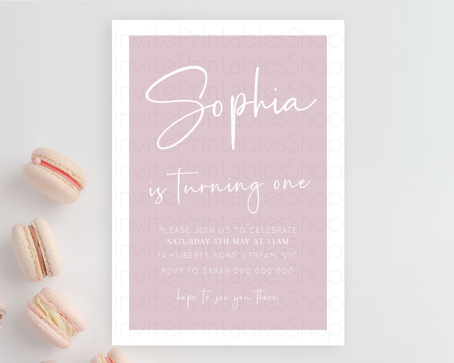 Pink Birthday Invitation Plain Pink Invitation Minimalist Invitation Pastel Pink Invitation Modern Invitation 2nd 1st First Birthday D10940