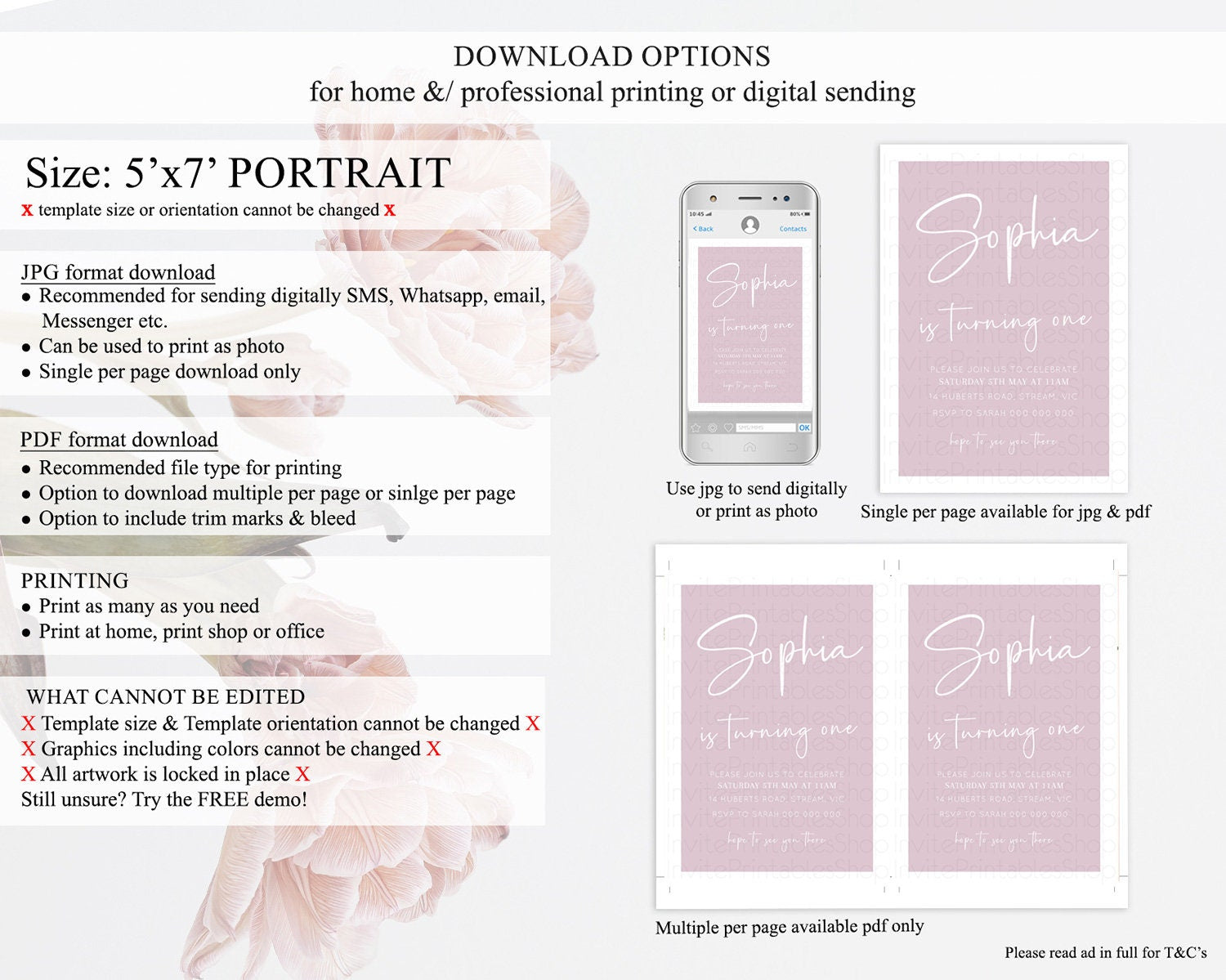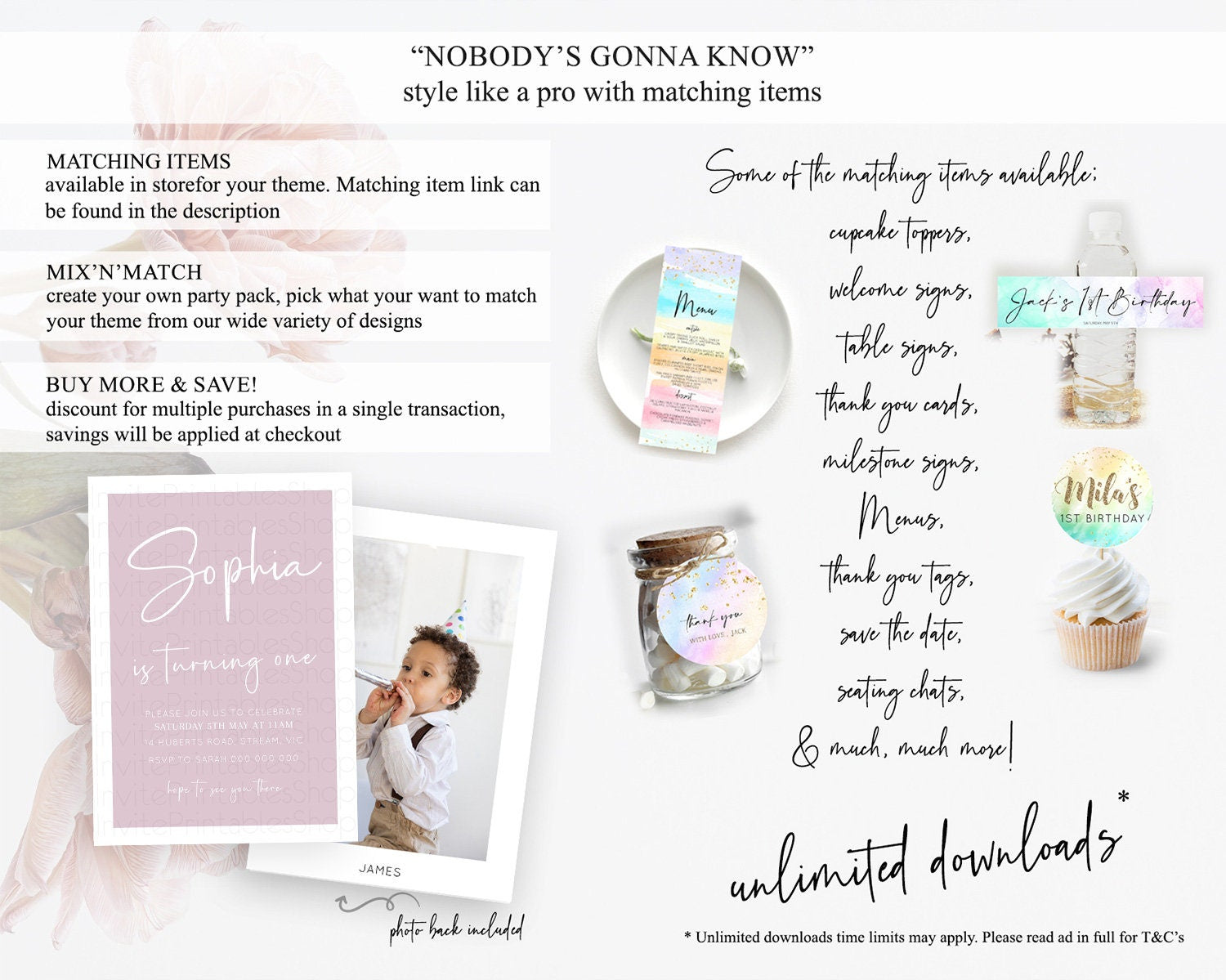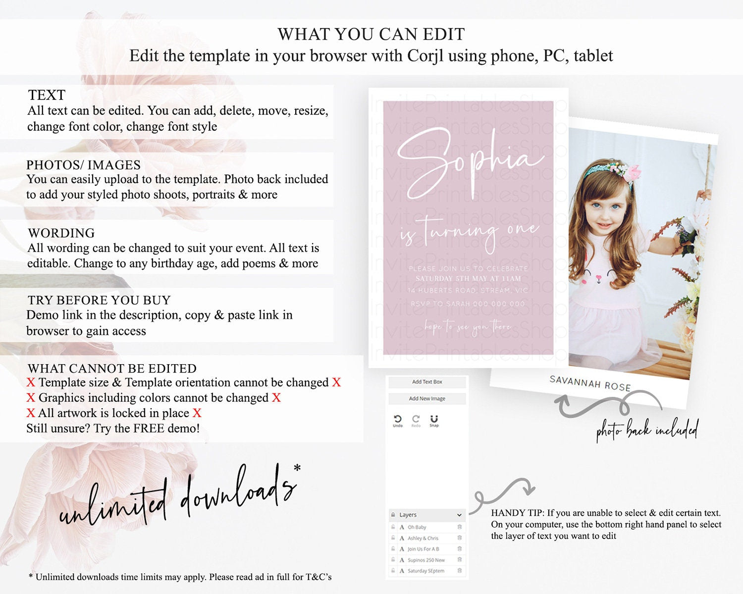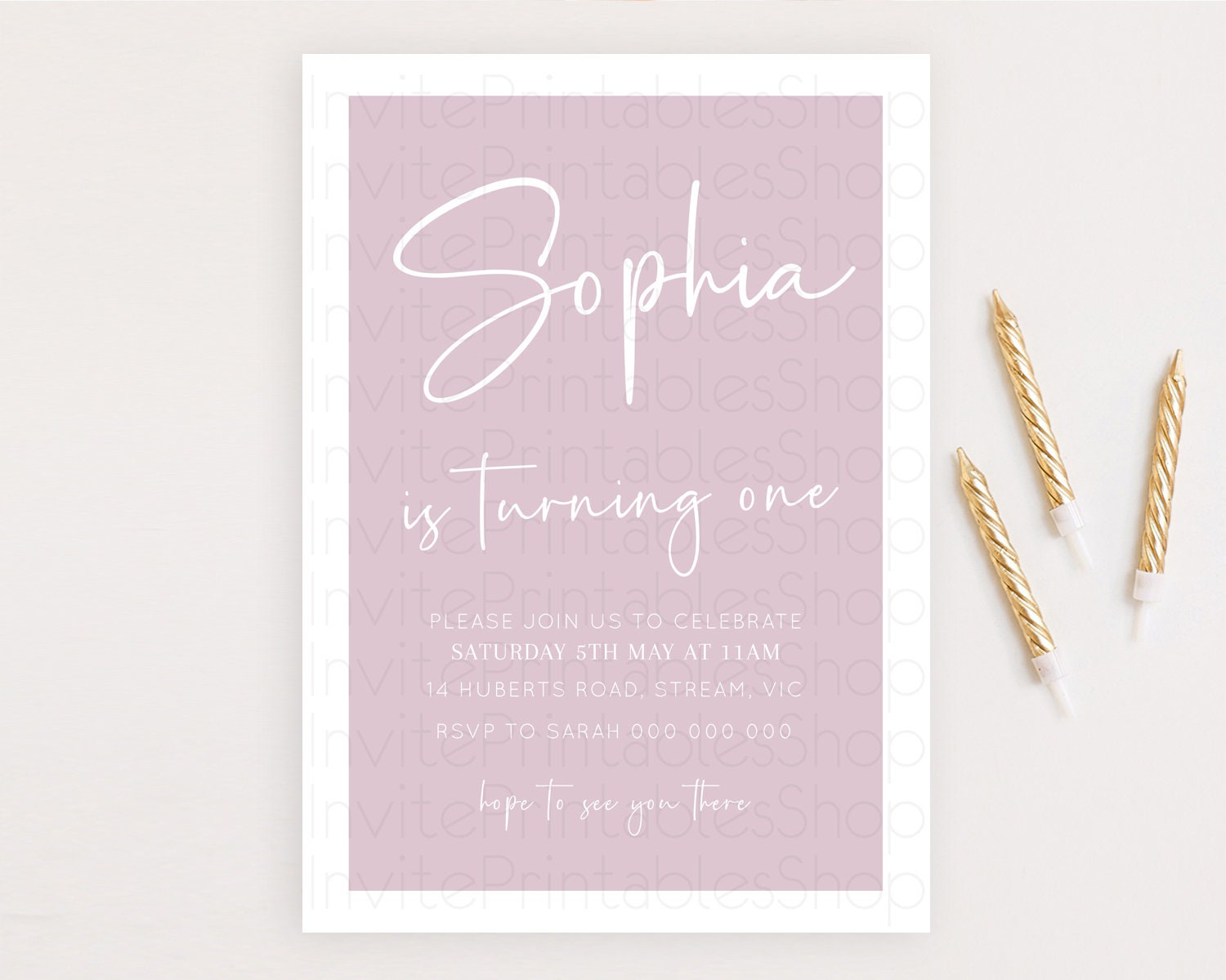 Pink Birthday Invitation Plain Pink Invitation Minimalist Invitation Pastel Pink Invitation Modern Invitation 2nd 1st First Birthday D10940