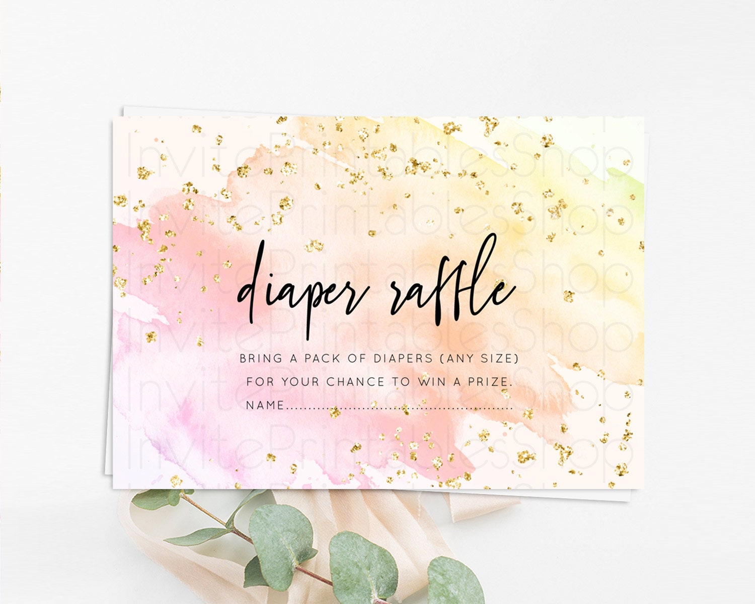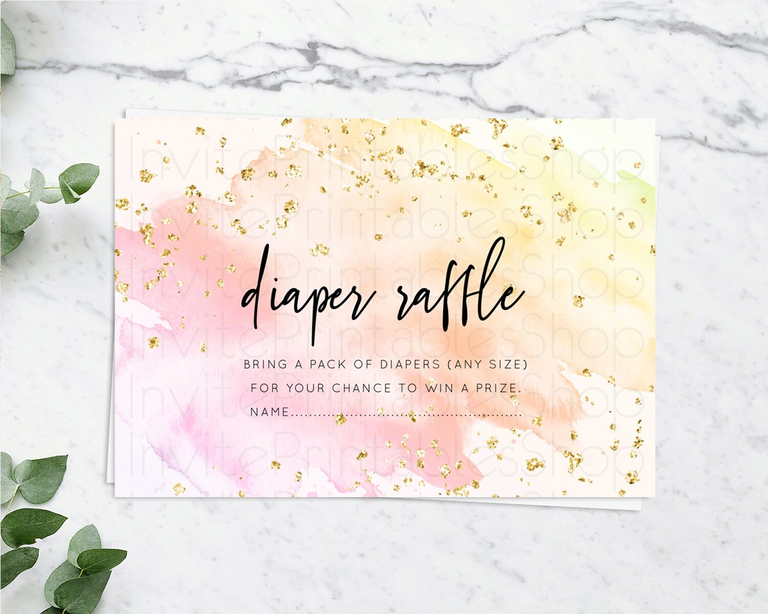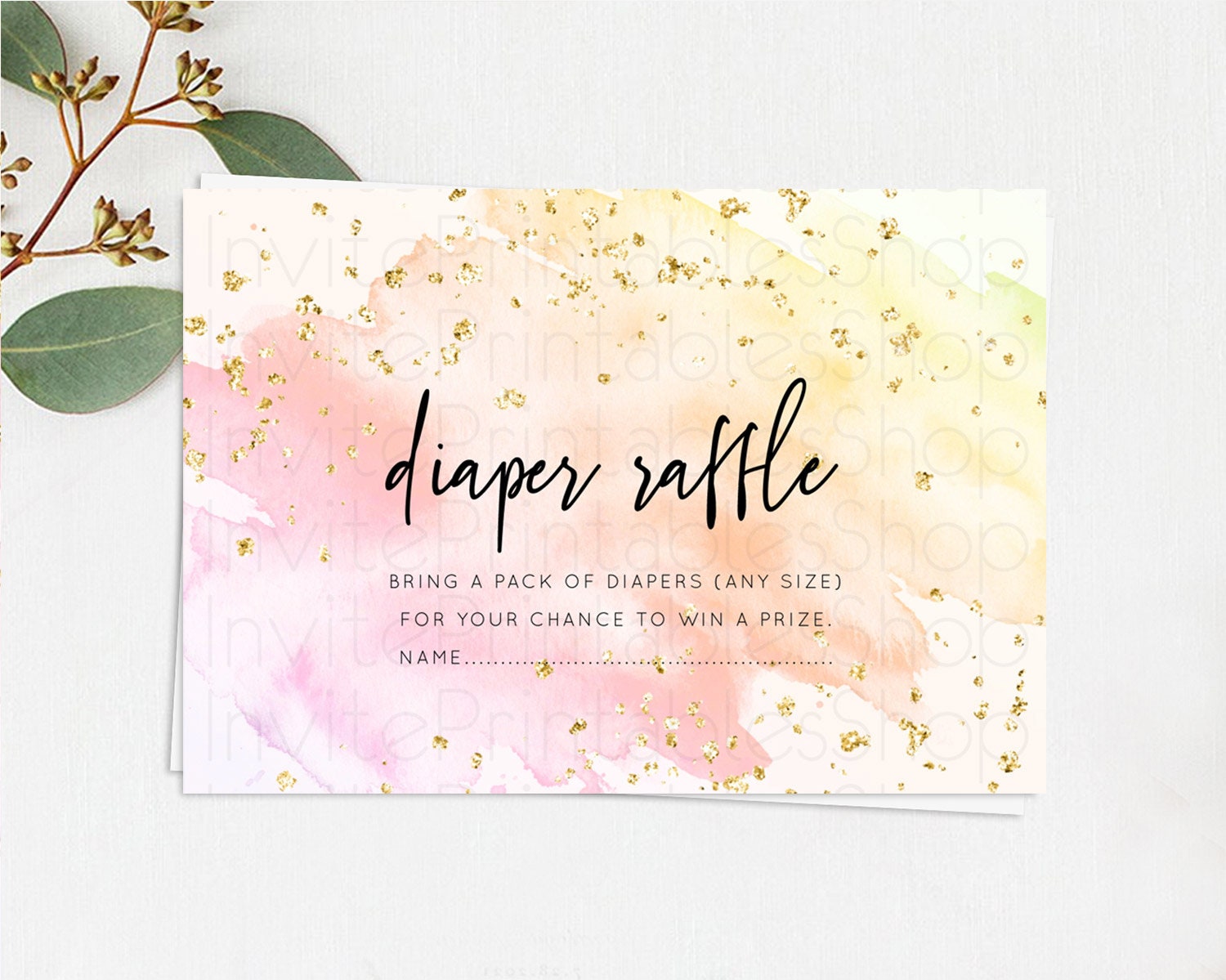 Pink Diaper Raffle Card Watercolor Diaper Raffle Insert Pastel Pink Baby Shower Diaper Ticket Pink Watercolor Splash Raffle Game D10167
