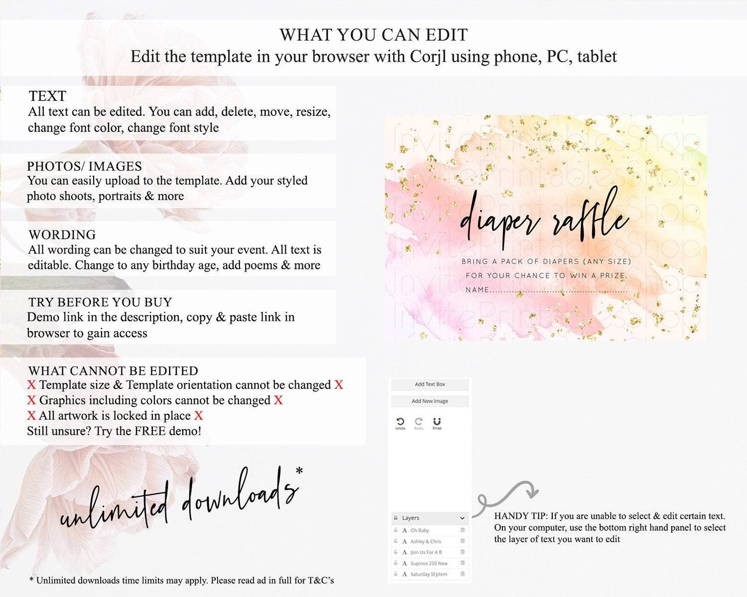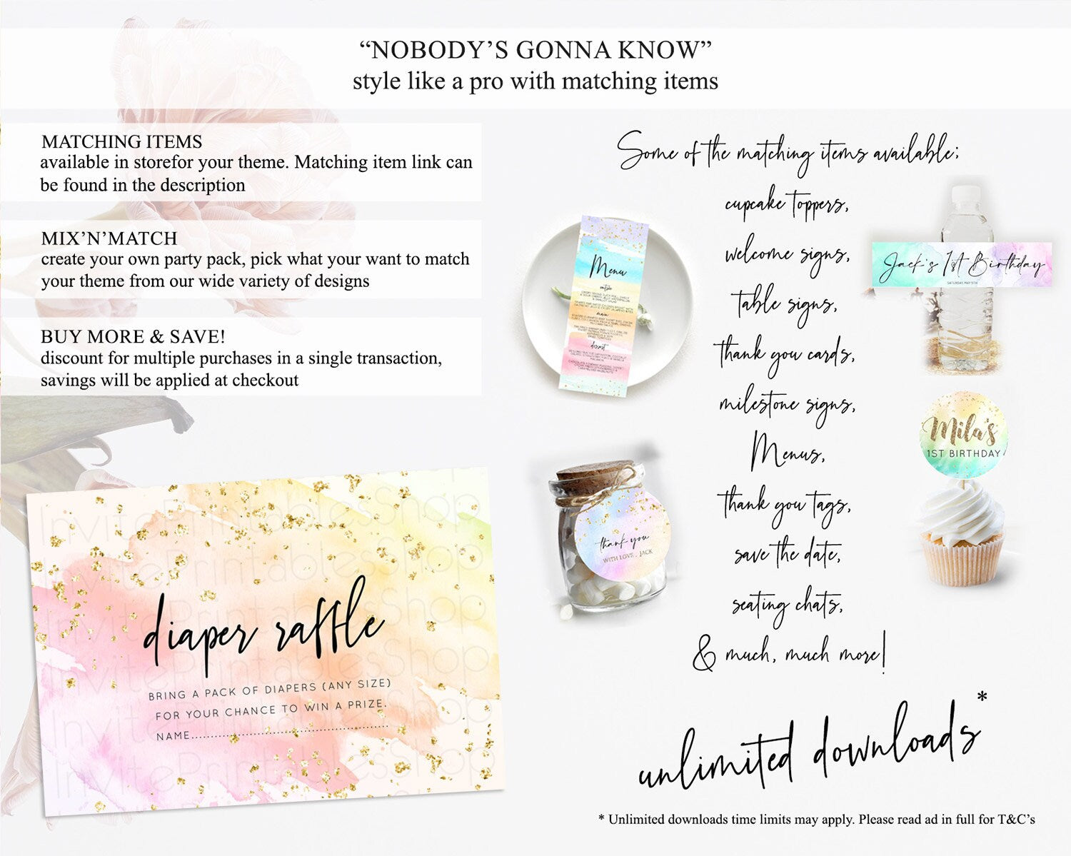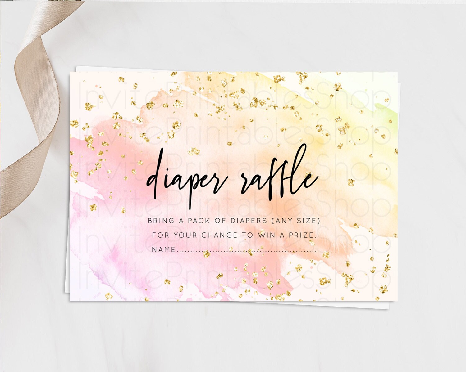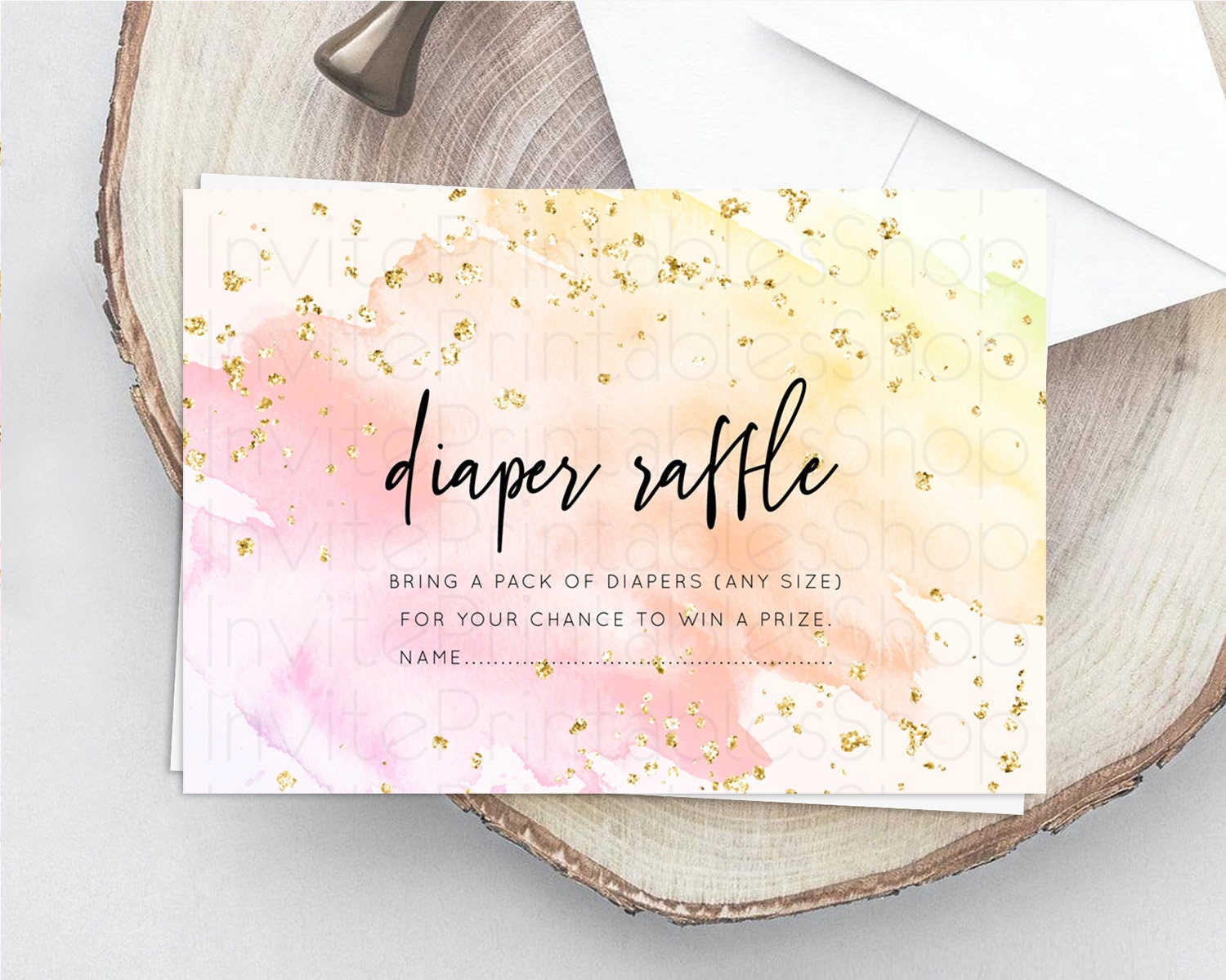 Pink Diaper Raffle Card Watercolor Diaper Raffle Insert Pastel Pink Baby Shower Diaper Ticket Pink Watercolor Splash Raffle Game D10167