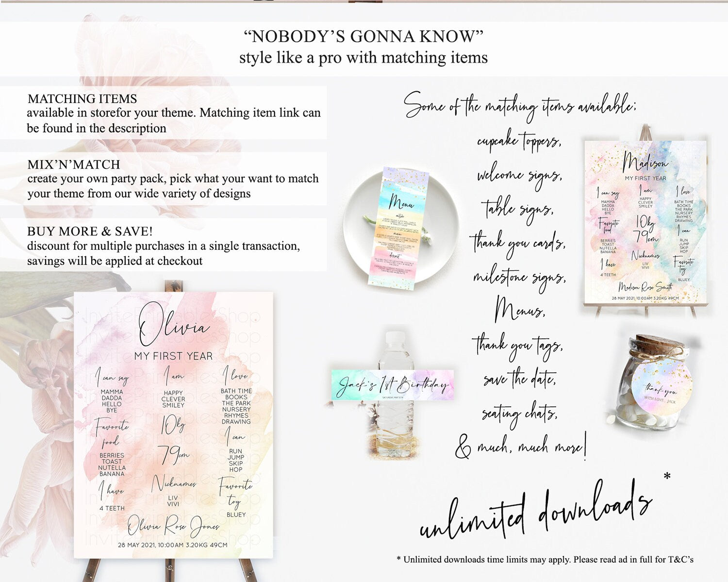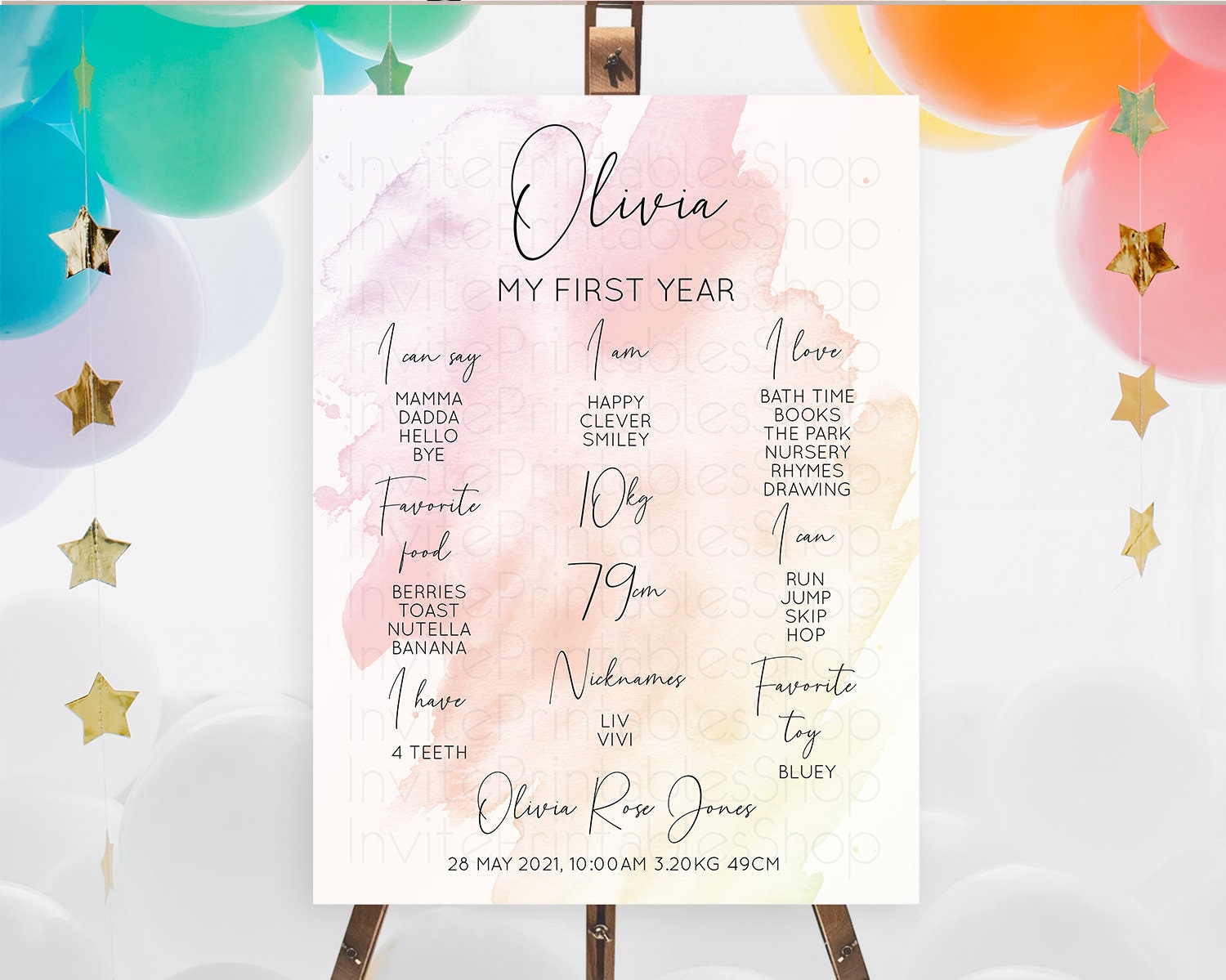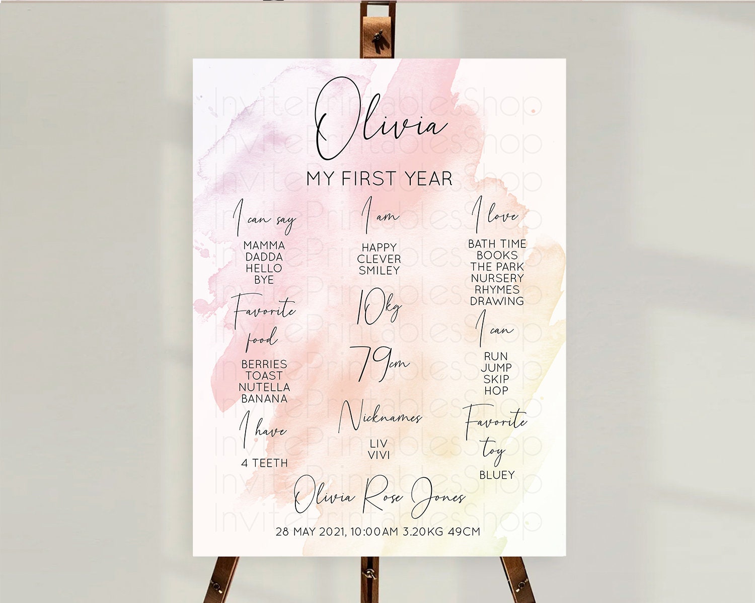Pink First Birthday Milestone Poster Pink Watercolor Milestone Board Pastel Pink Watercolor Splash Milestone Board 1st Birthday D10164