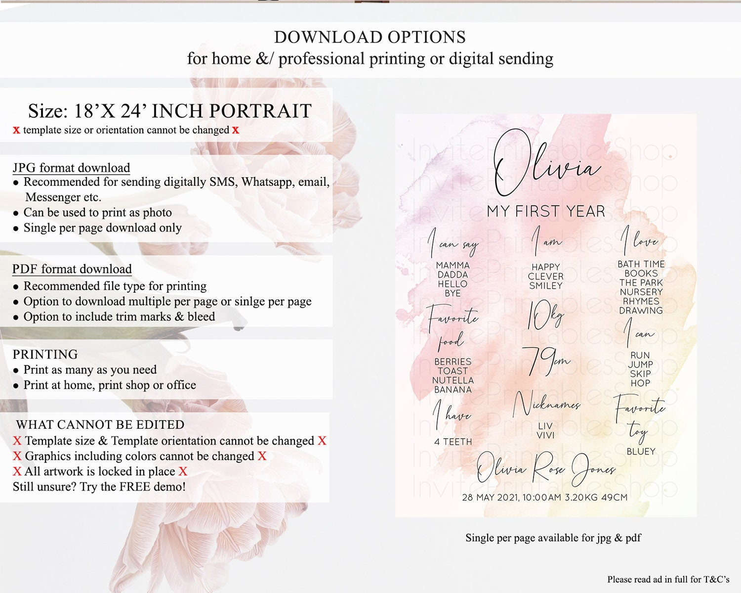 • Template size & orientation cannot be changed. Please use the demo link to confirm this product suits your needs.