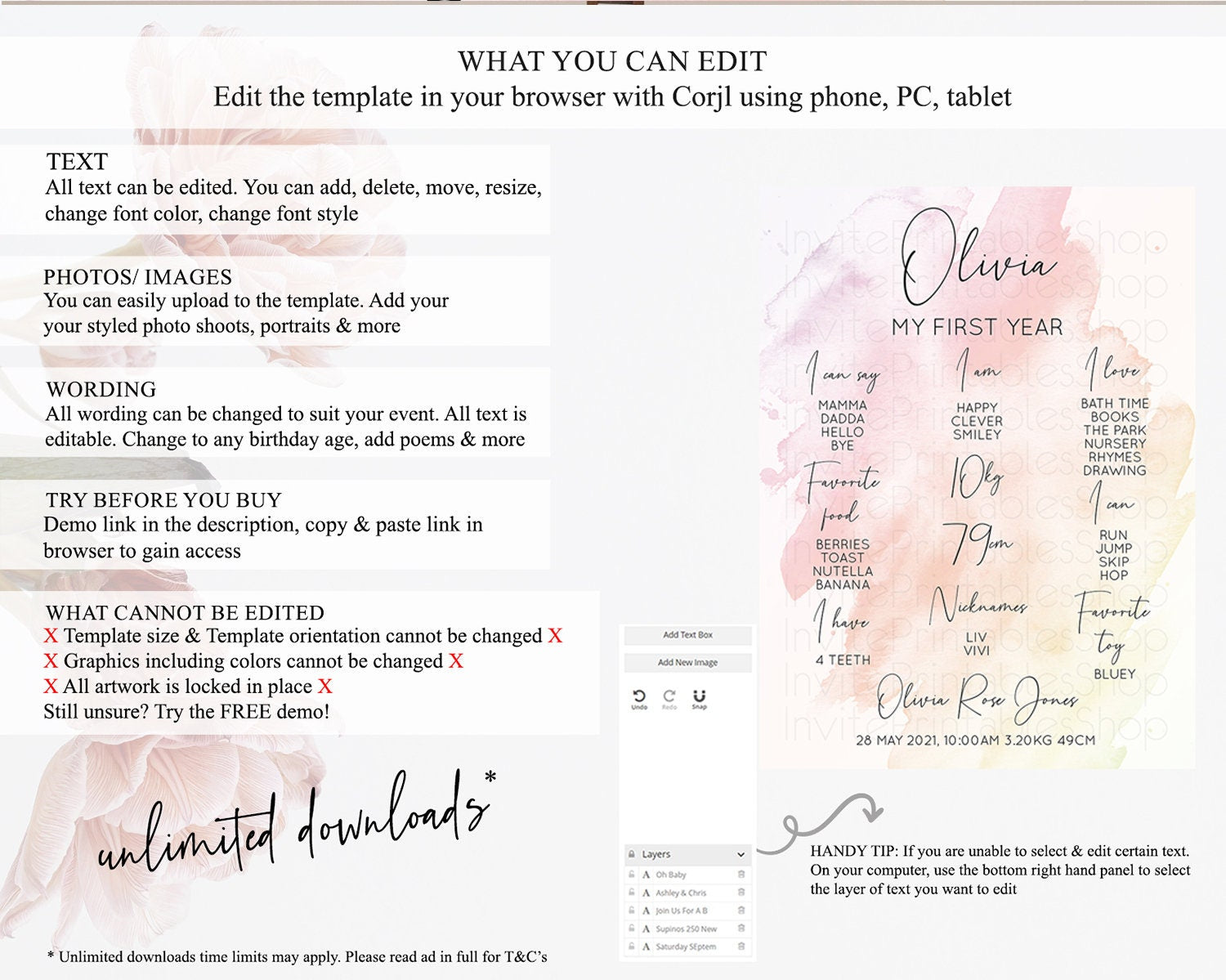 • After purchase, Corjl emails your editing link. Allow up to 15 minutes for delivery.