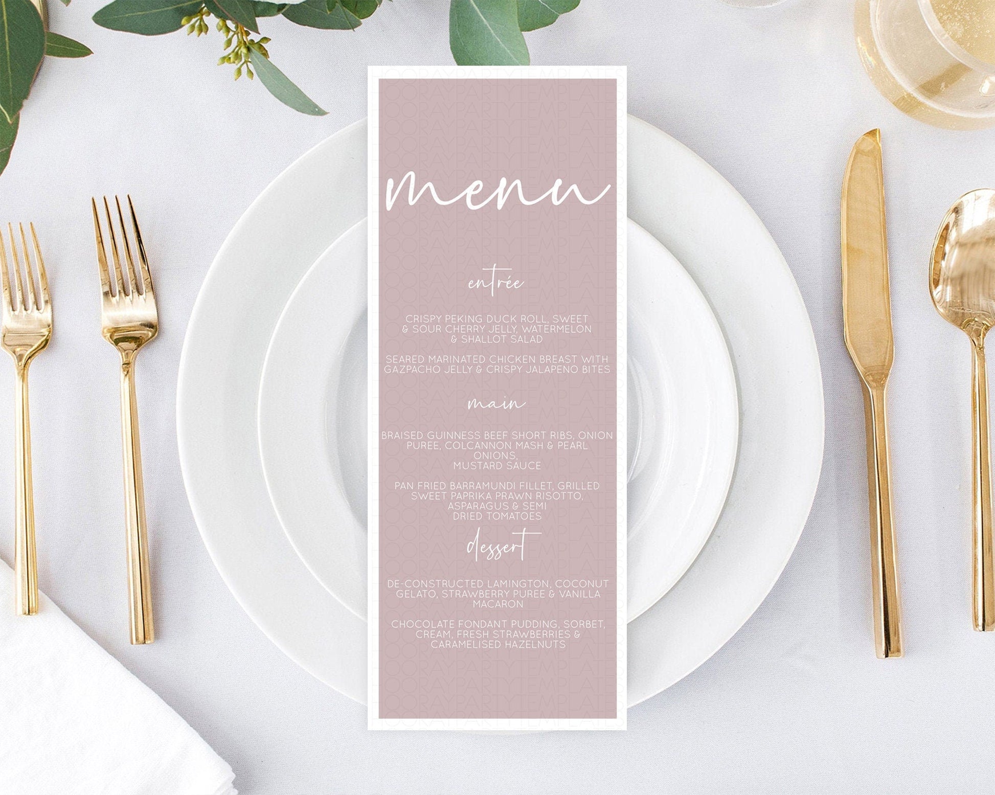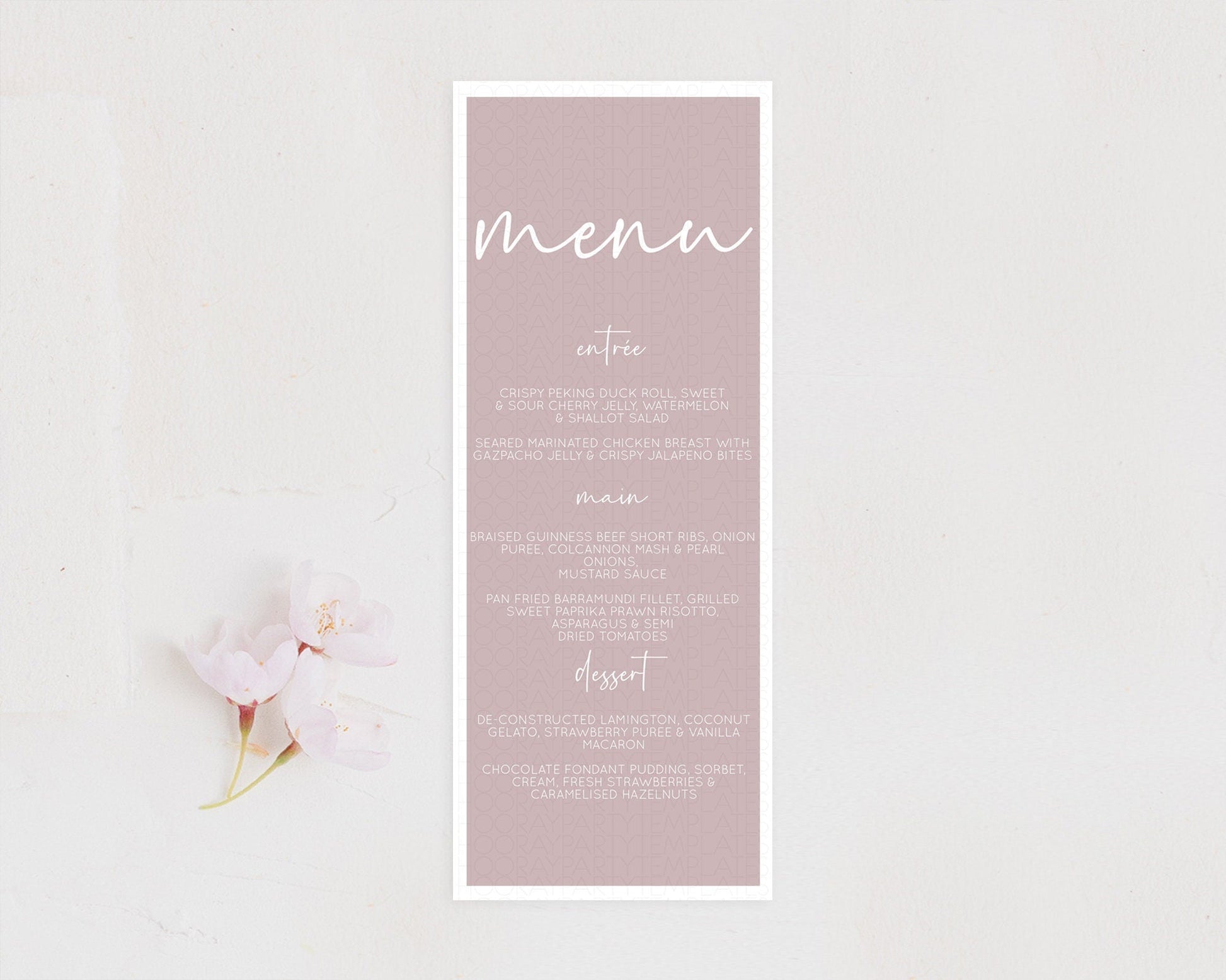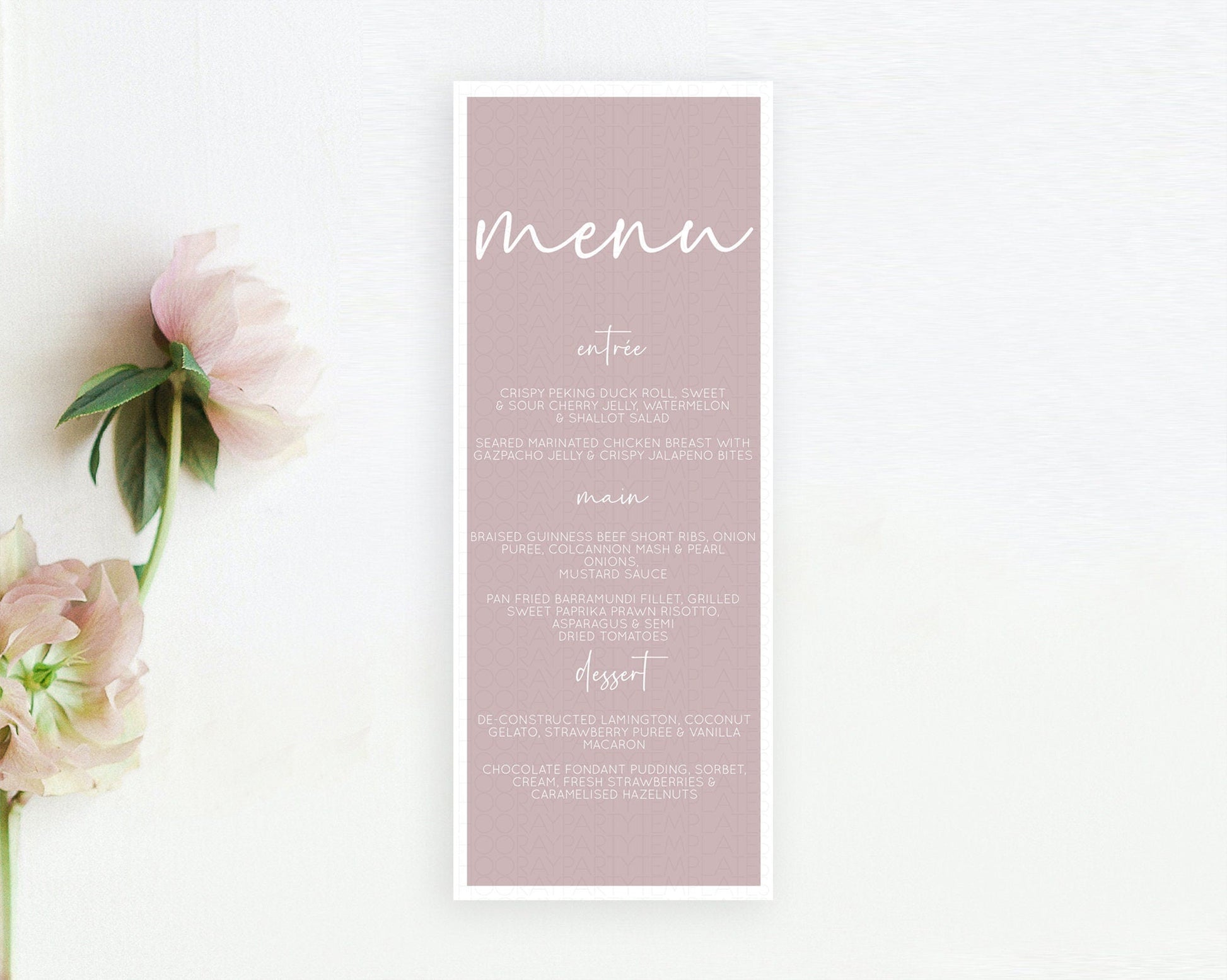 Pink Menu Pastel Pink Menu Template Pink Minimalist Table Decor Modern Pink Menu Simple Pink Dinner Dessert Menu Party Food Menu D10936