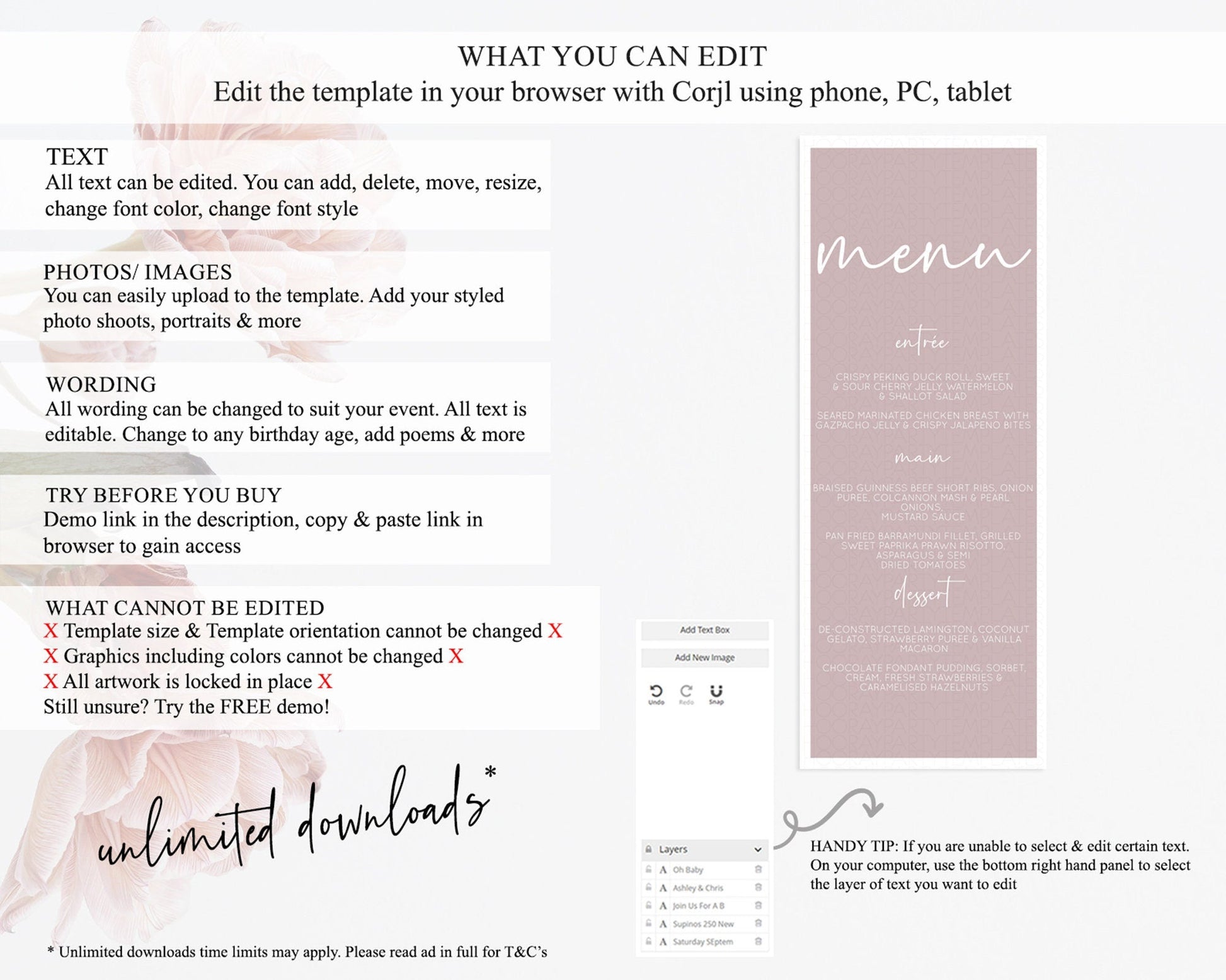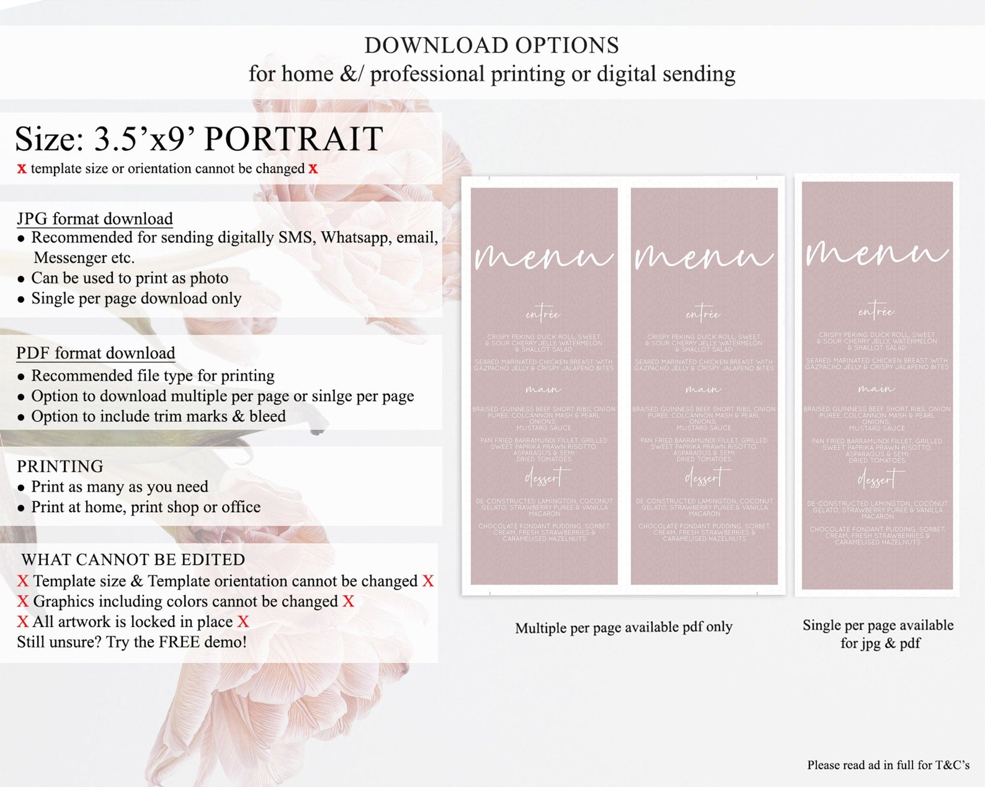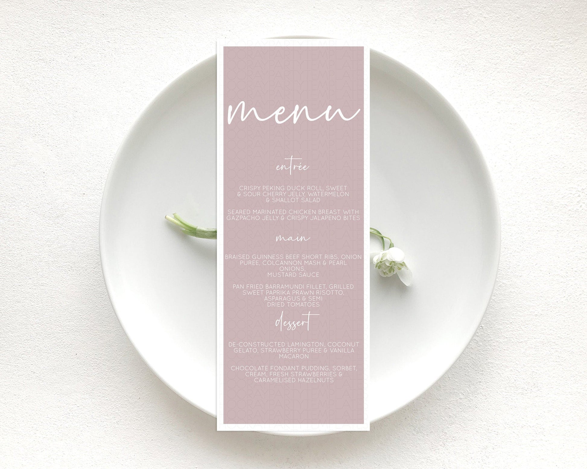 Pink Menu Pastel Pink Menu Template Pink Minimalist Table Decor Modern Pink Menu Simple Pink Dinner Dessert Menu Party Food Menu D10936