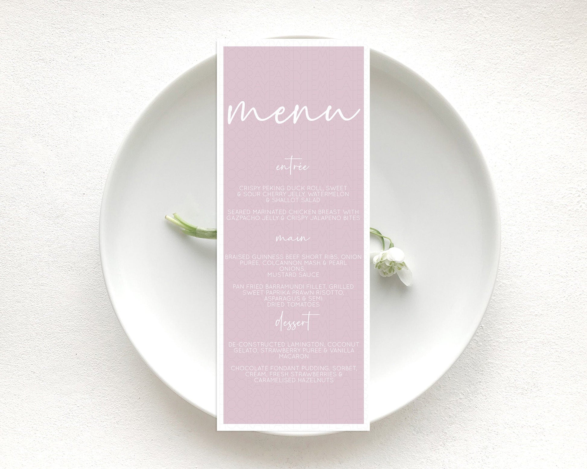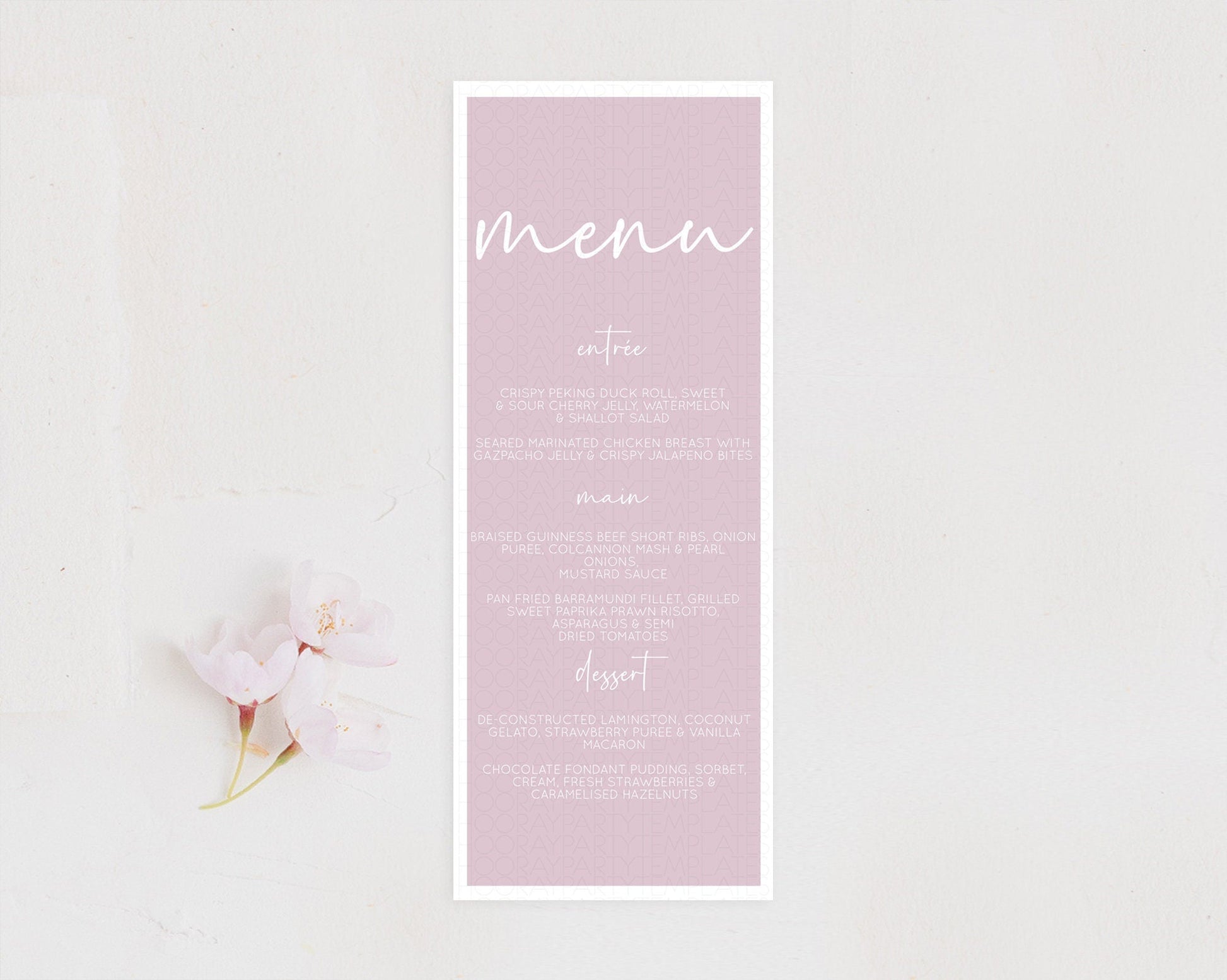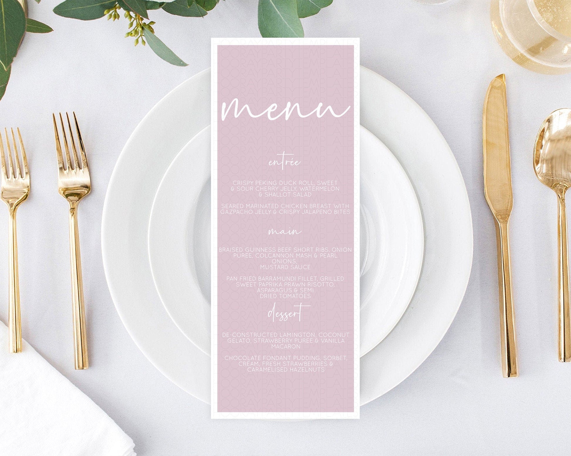Pink Menu Pastel Pink Menu Template Pink Minimalist Table Decor Modern Pink Menu Simple Pink Dinner Dessert Menu Party Food Menu D10940