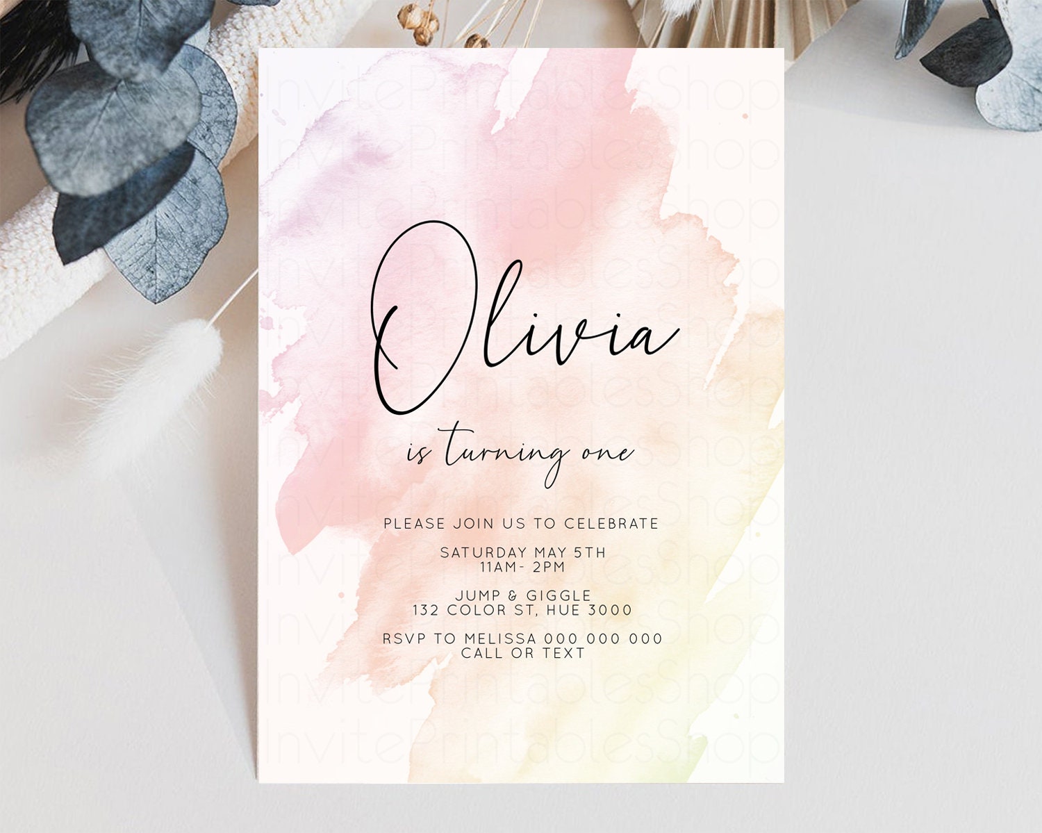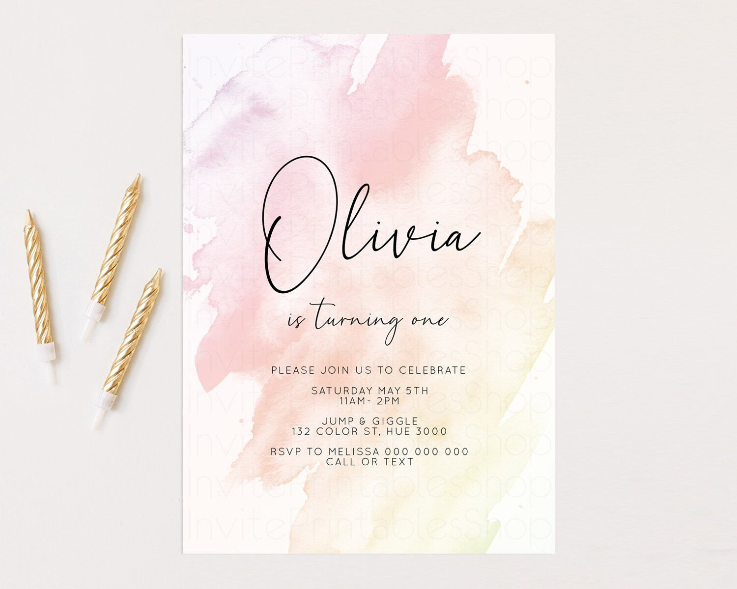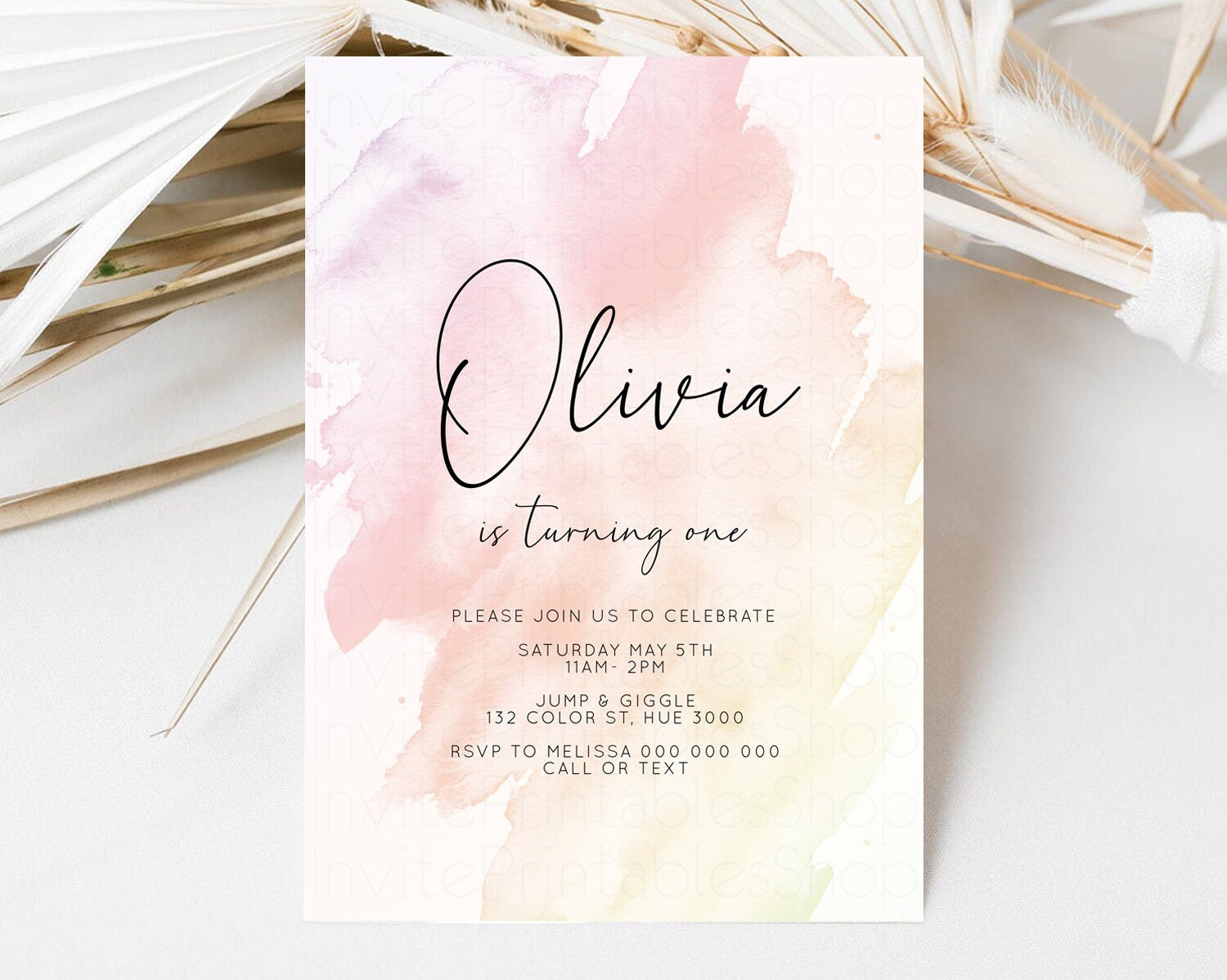 Pink Ombre Birthday Invitation Pastel Splash Birthday Invitation Pastel Watercolor Invite Watercolor Invite Glitter Sprinkle Invitation 145