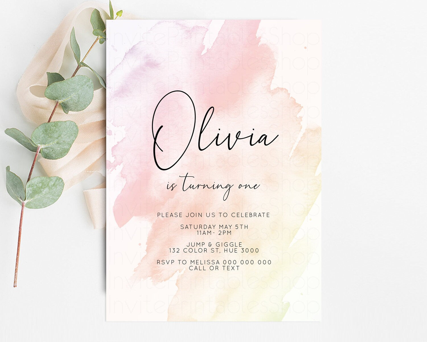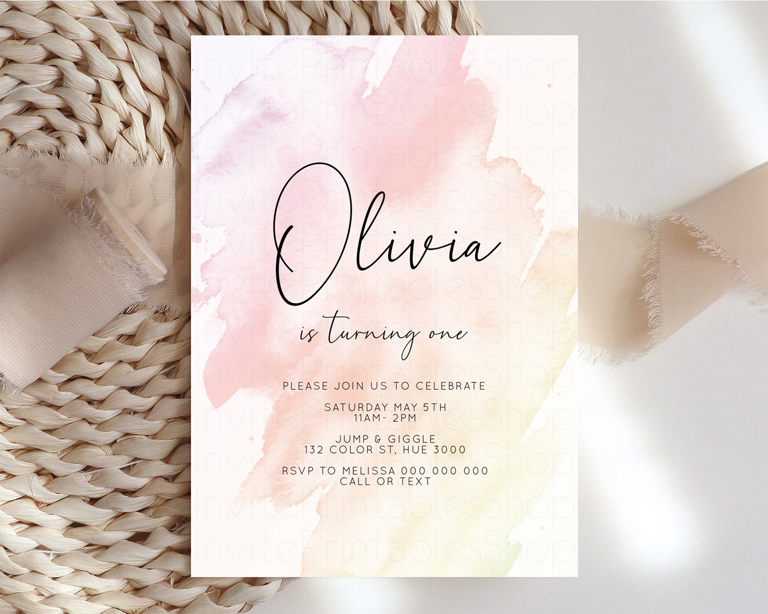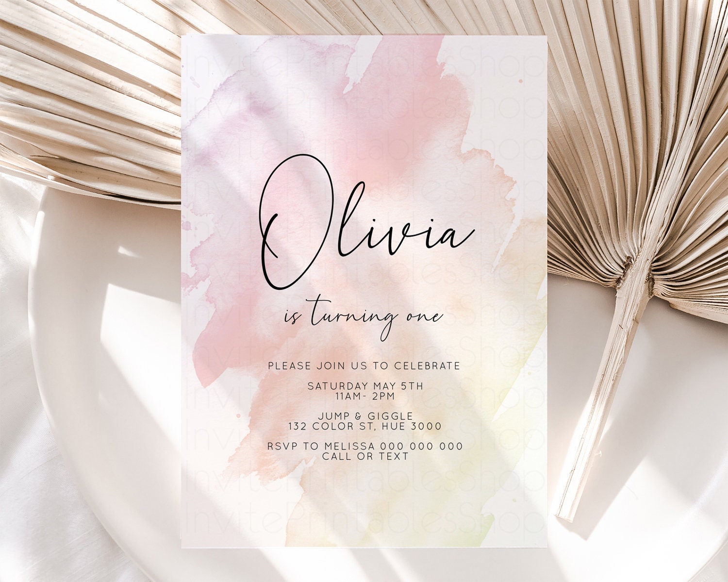 Pink Ombre Birthday Invitation Pastel Splash Birthday Invitation Pastel Watercolor Invite Watercolor Invite Glitter Sprinkle Invitation 145