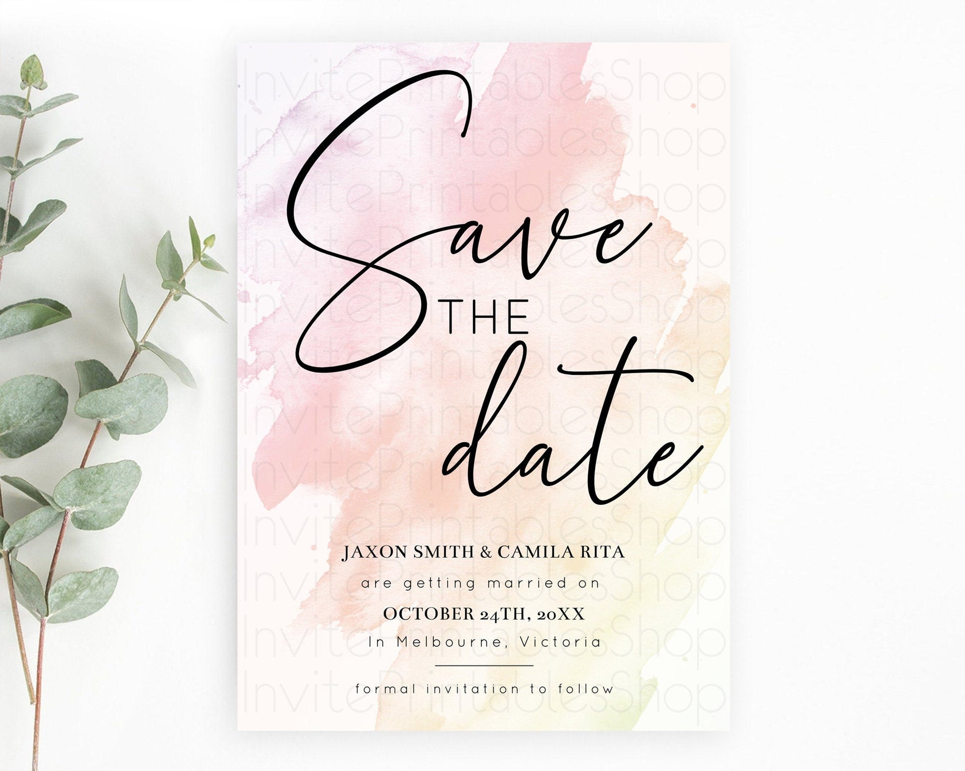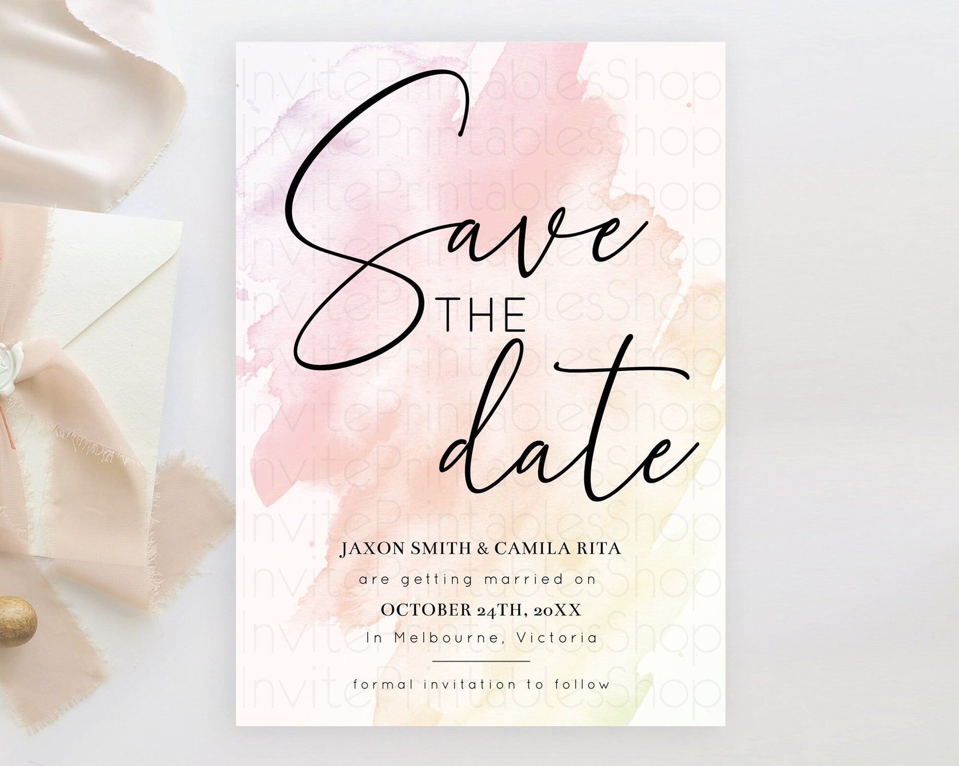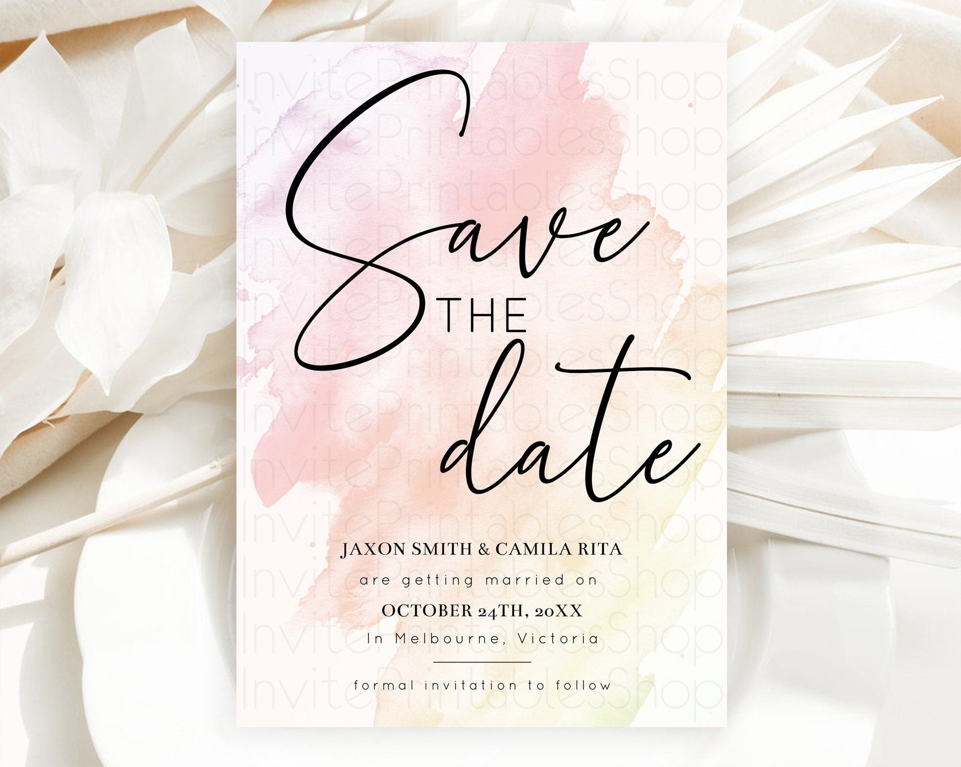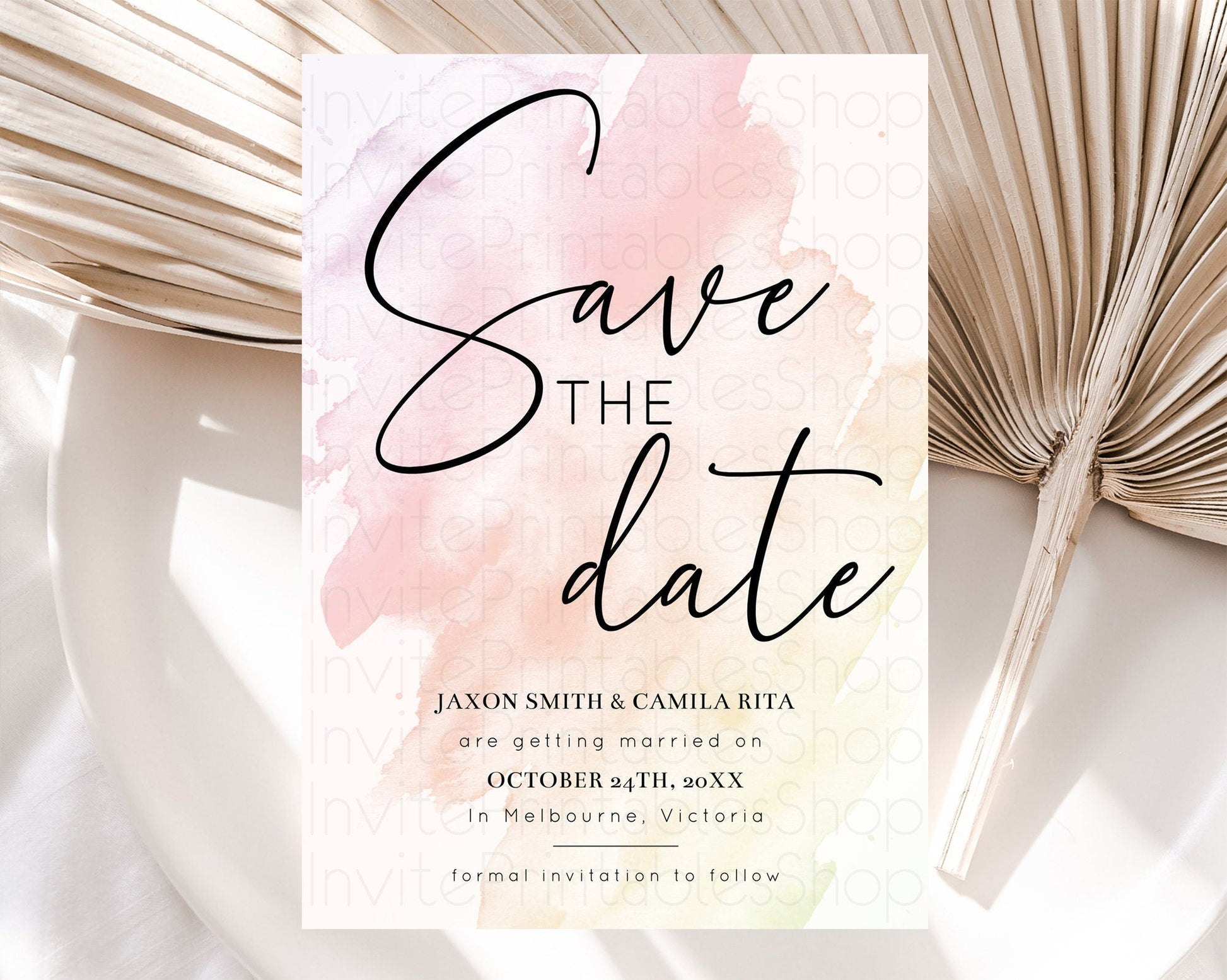 Pink Watercolor Save The Date Template Ombre Pink Watercolor Splash Party 1st Birthday Baby Shower Wedding Baptism Bridal Shower D10164