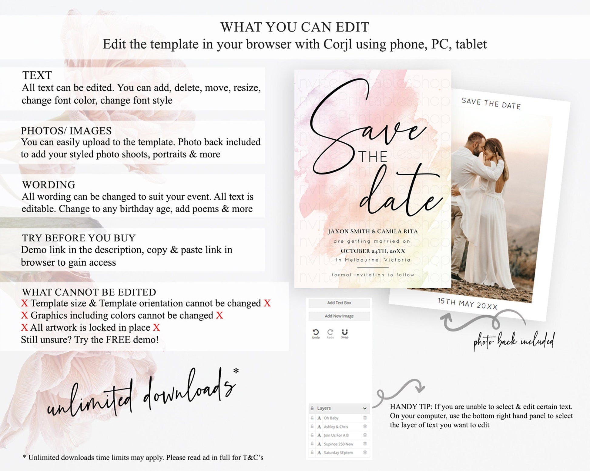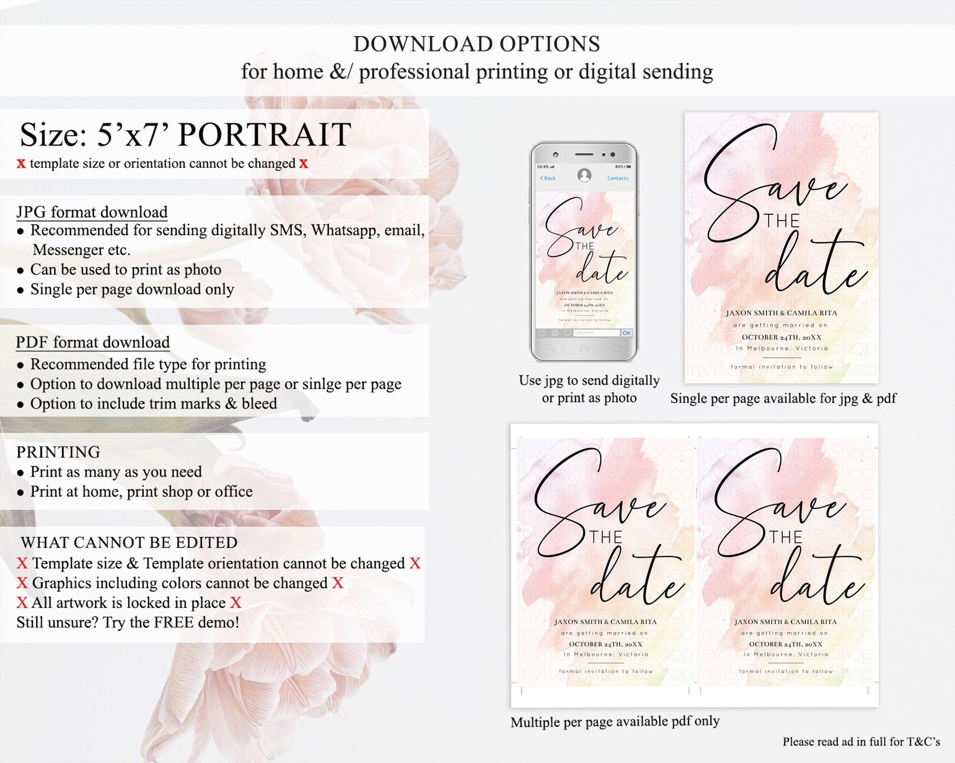 • Template size & orientation cannot be changed. Please use the demo link to confirm this product suits your needs.