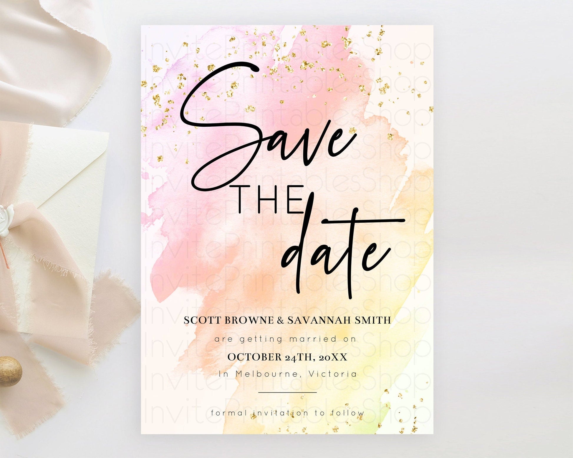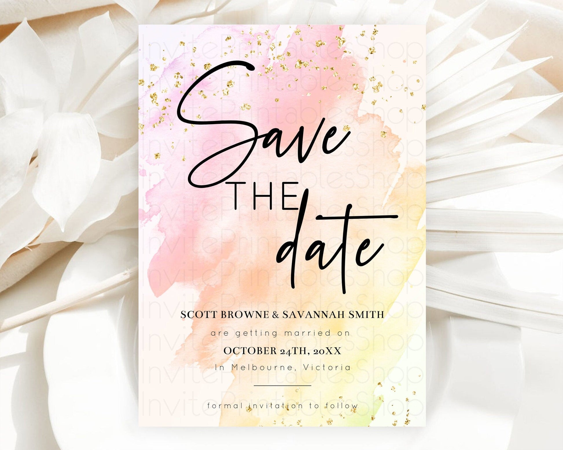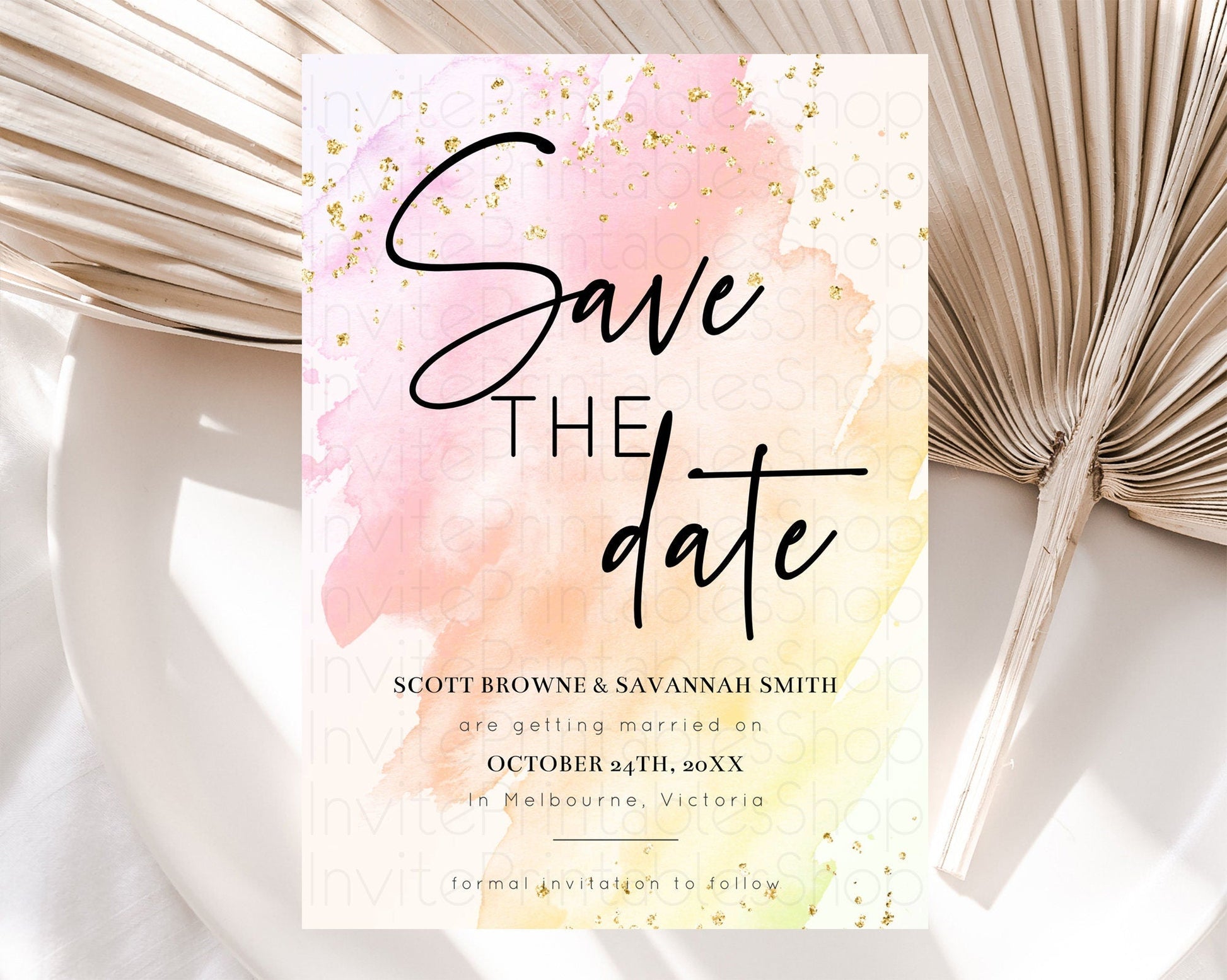 Pink Watercolor Save The Date Template Ombre Pink Watercolor Splash Party 1st Birthday Baby Shower Wedding Baptism Bridal Shower D10167
