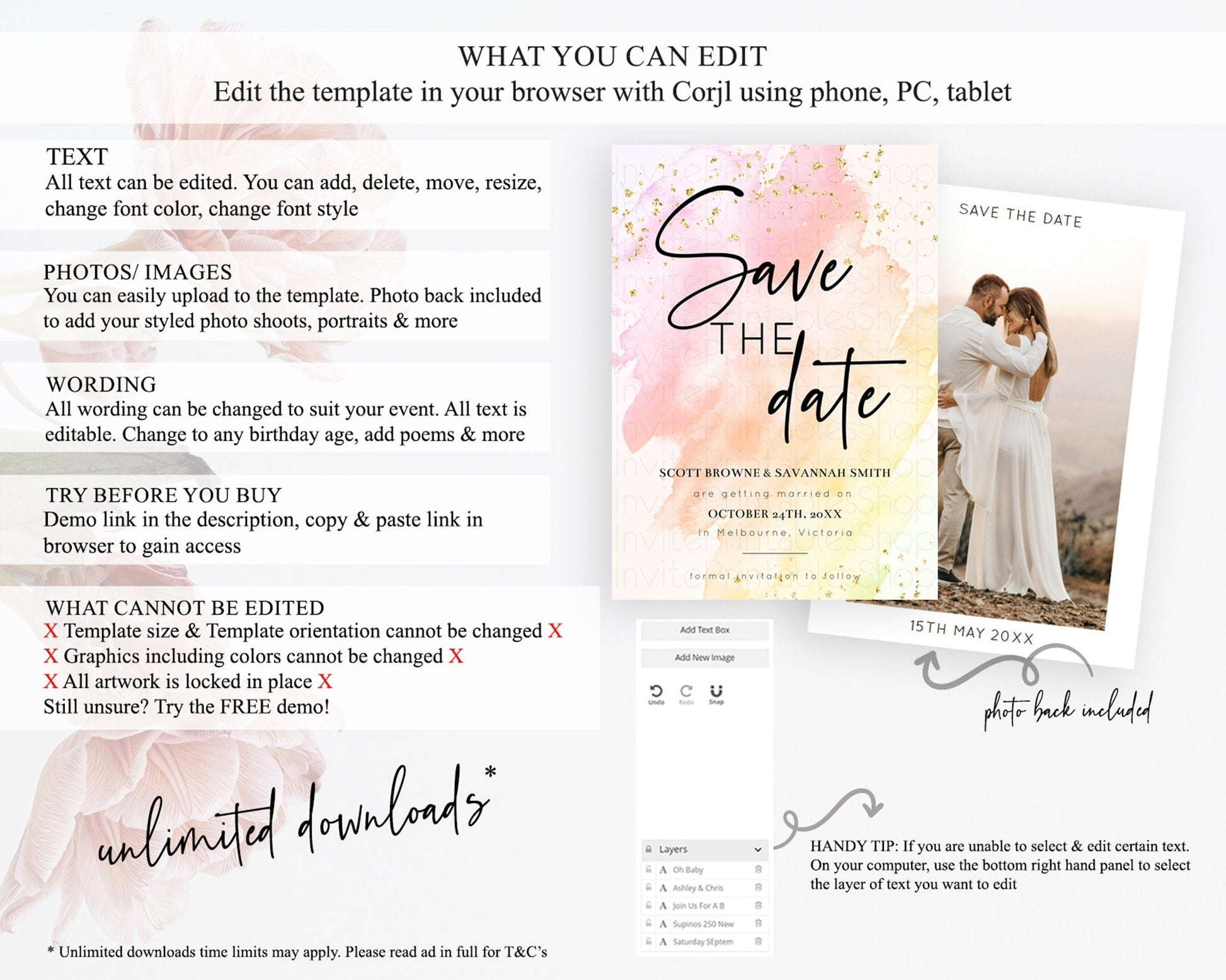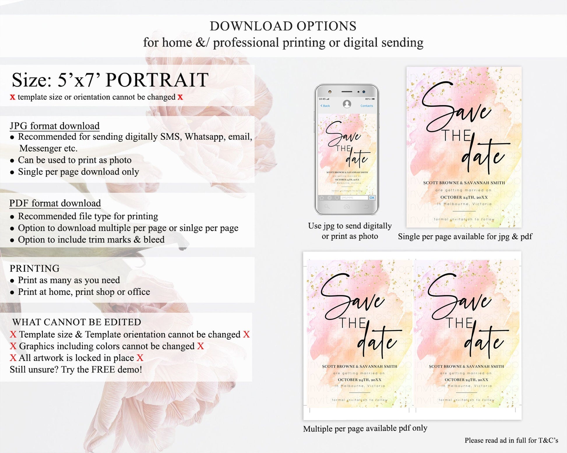 • Template size & orientation cannot be changed. Please use the demo link to confirm this product suits your needs.