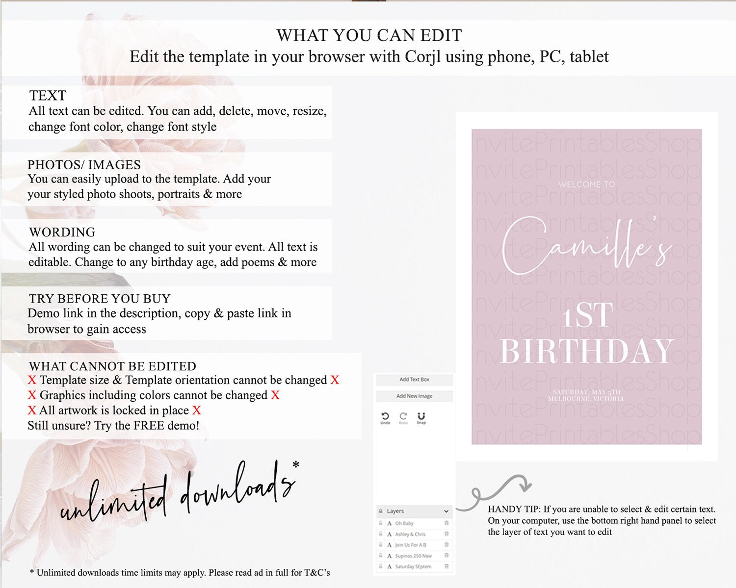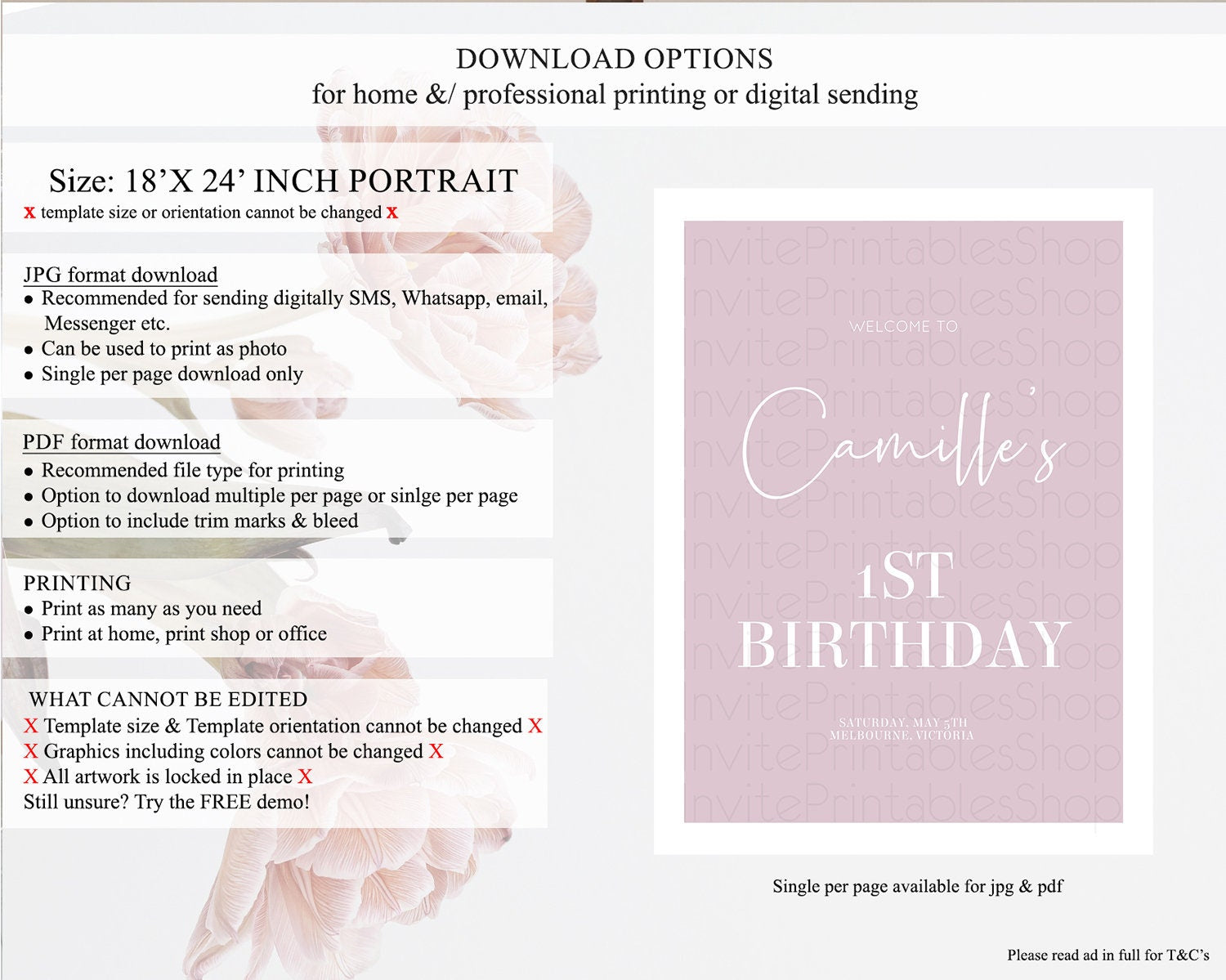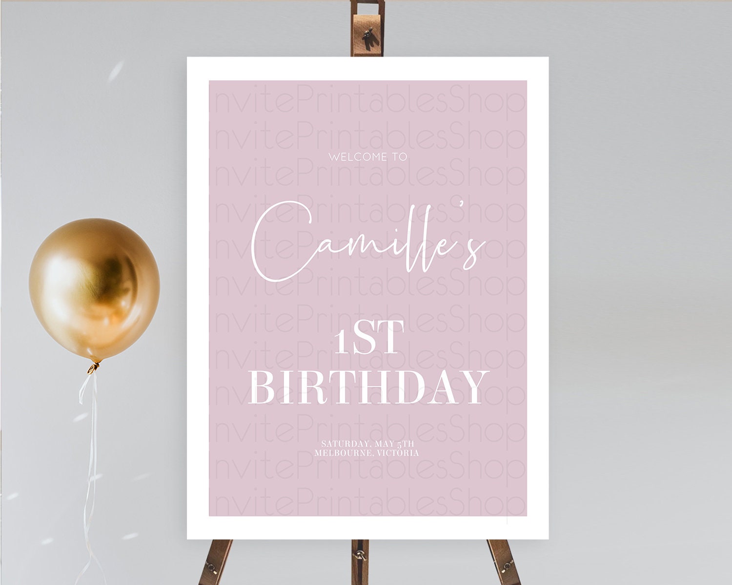 Pink Welcome Sign Plain Pink Welcome Board Minimalist Pastel Pink Welcome Poster Modern Pink First Birthday Welcome Sign D10940