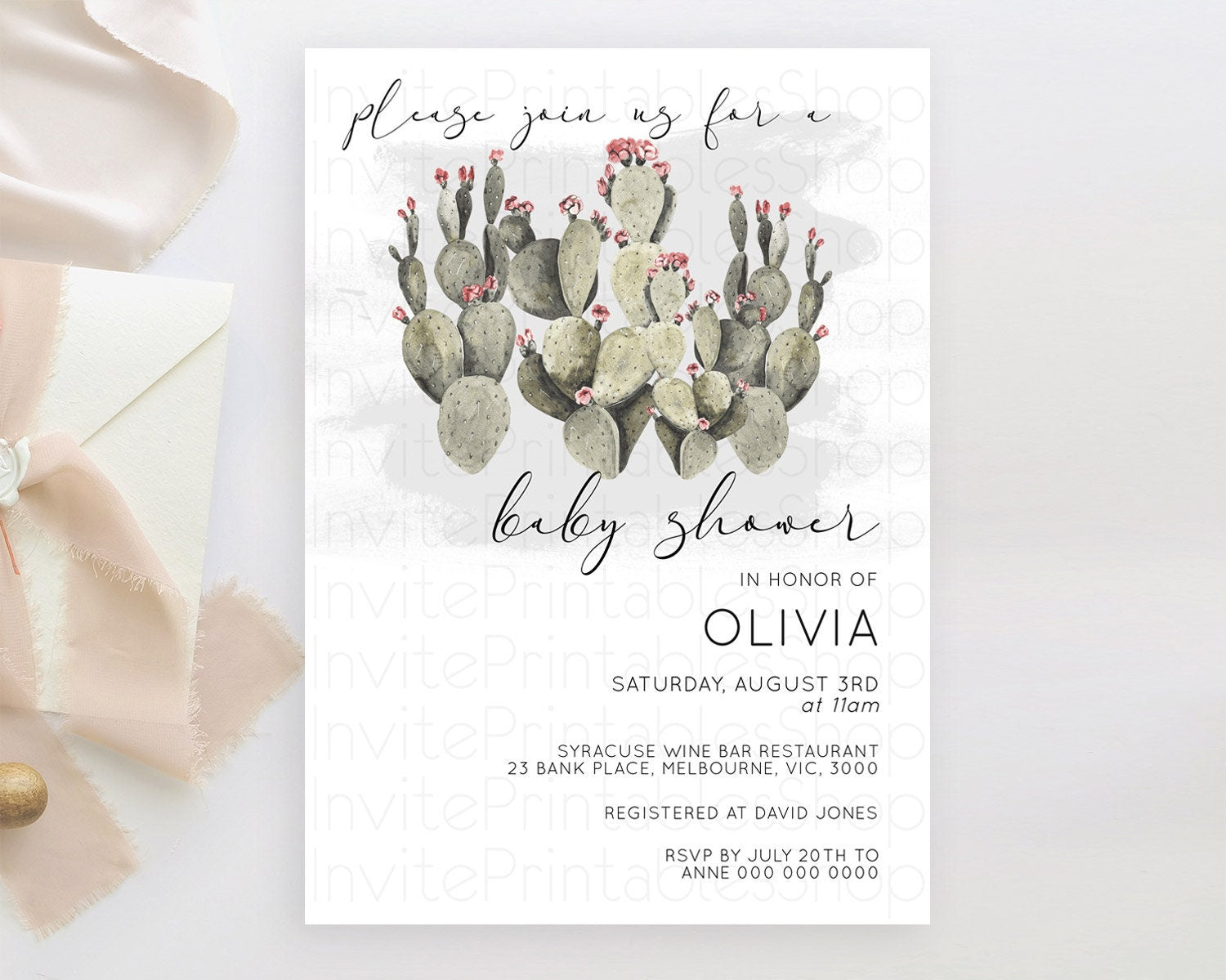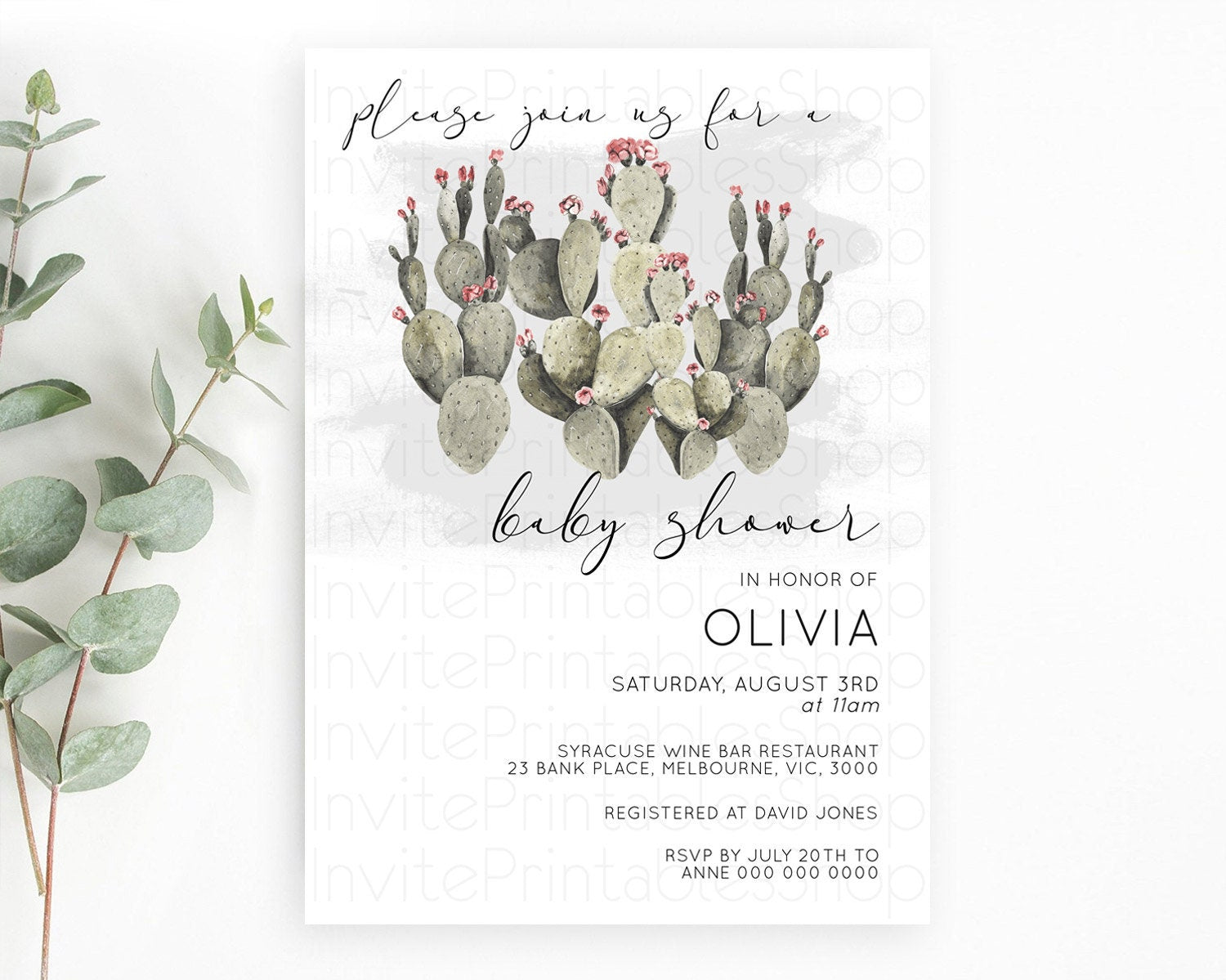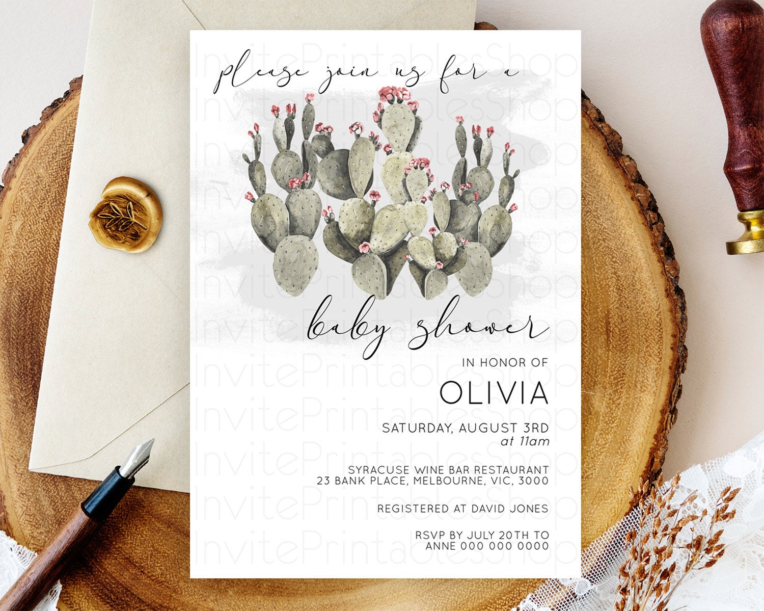 Prickly Pear Baby Shower Invitation Prickly Pear Invitation Cactus Watercolor Invitation Tropical Fiesta Baby Shower Invites D11015