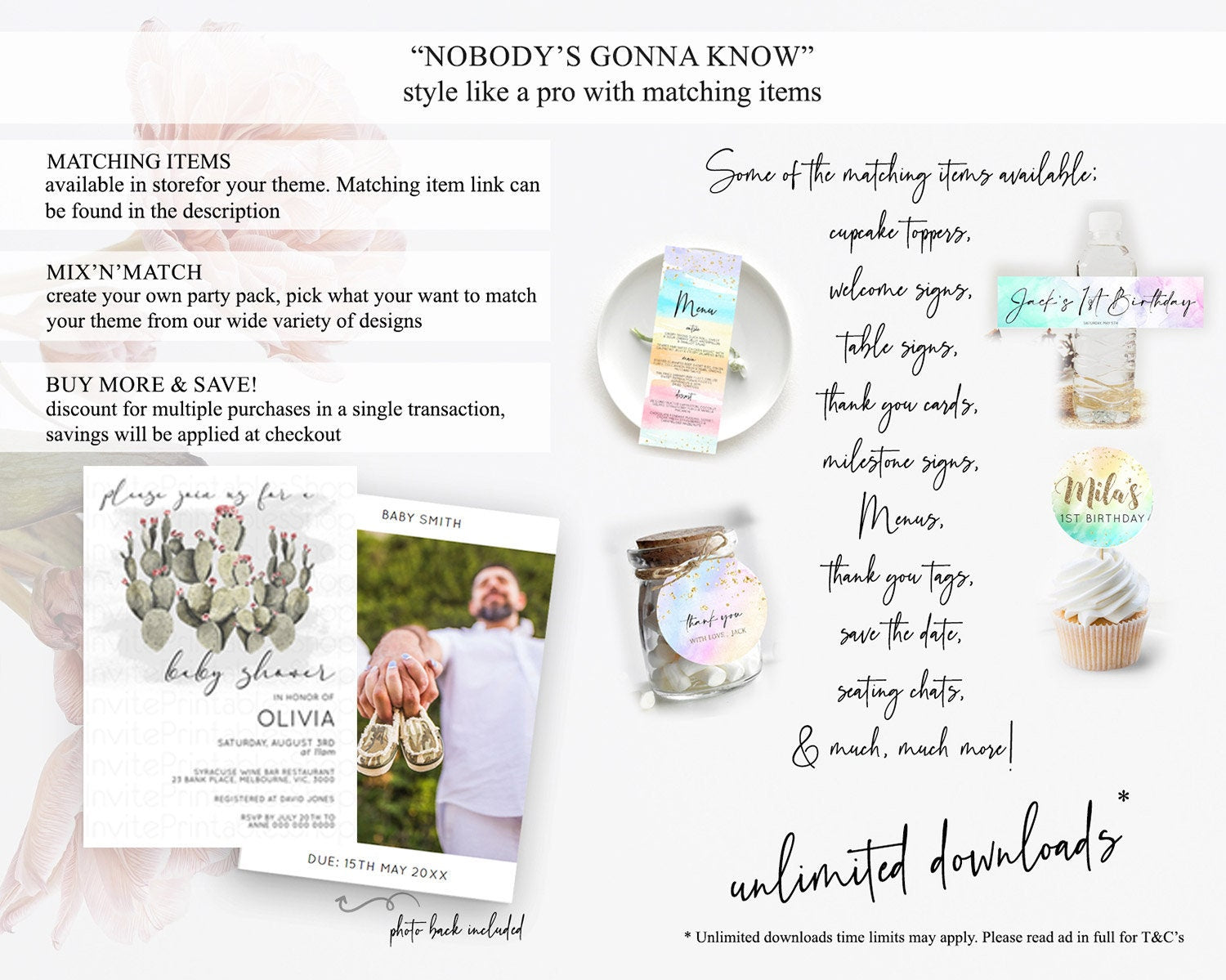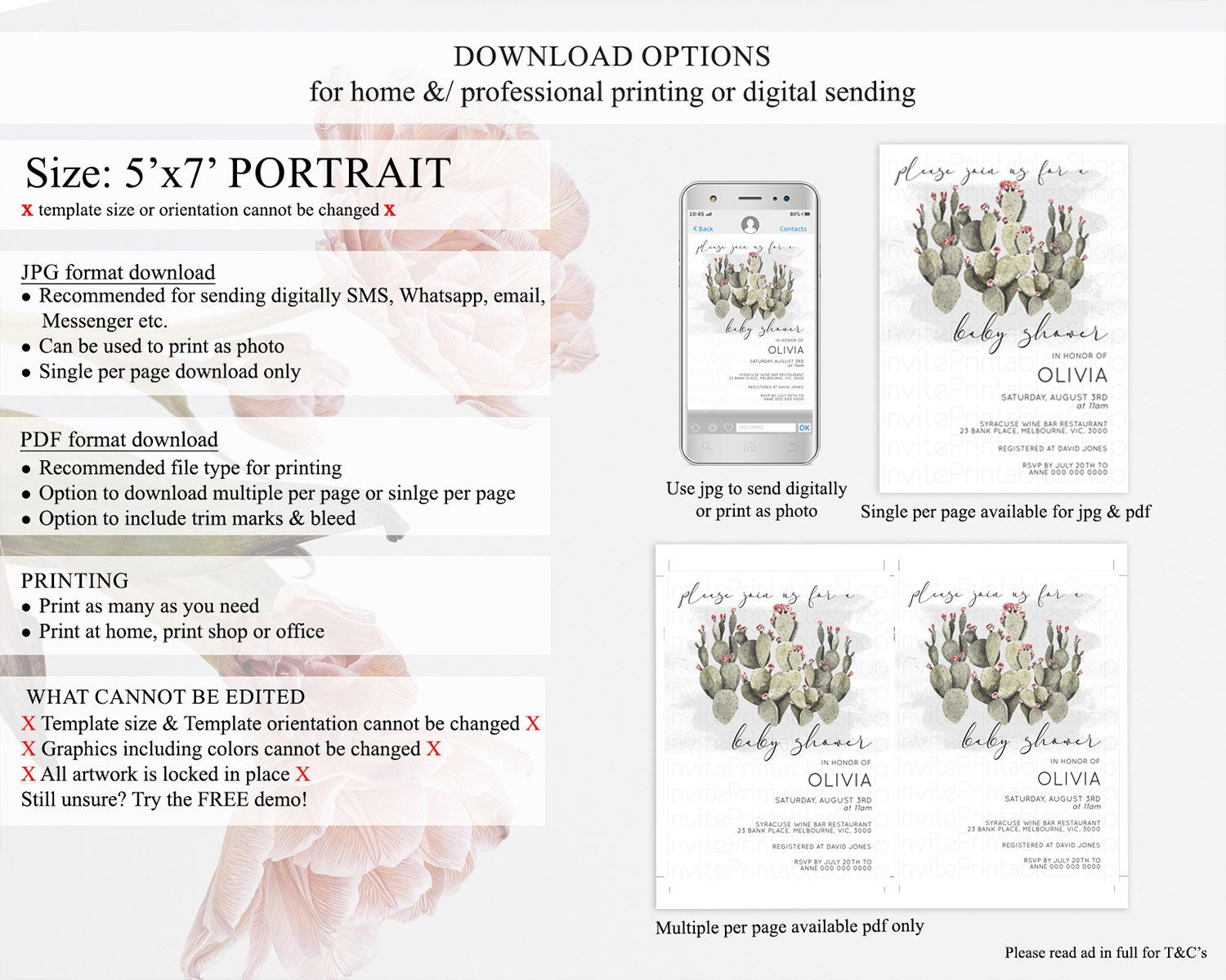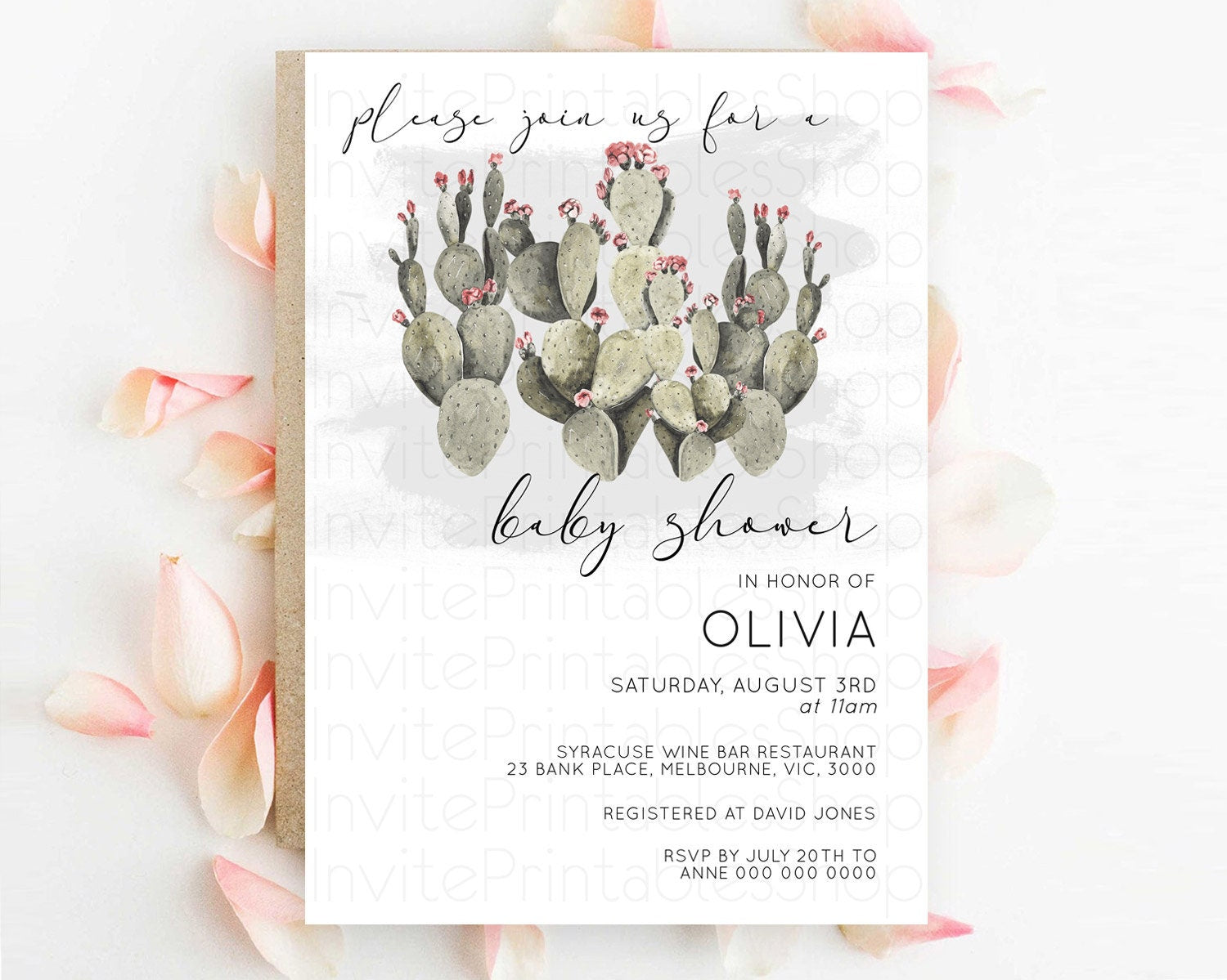 Prickly Pear Baby Shower Invitation Prickly Pear Invitation Cactus Watercolor Invitation Tropical Fiesta Baby Shower Invites D11015
