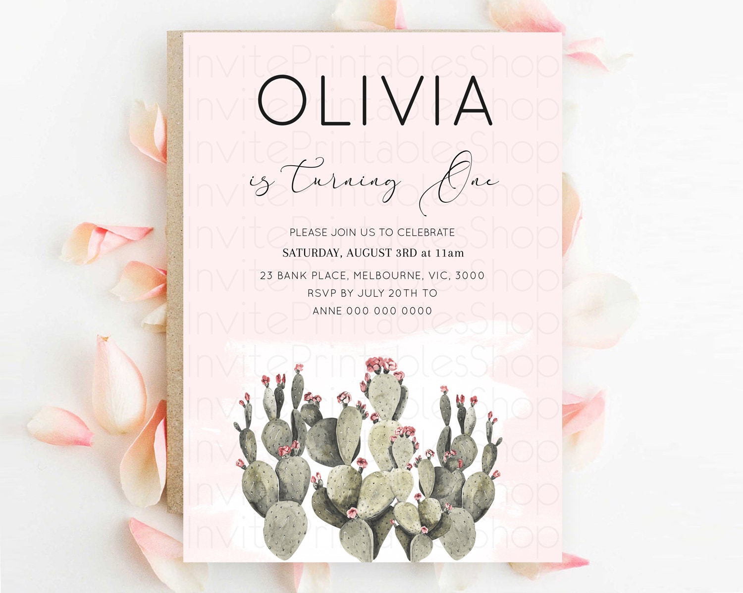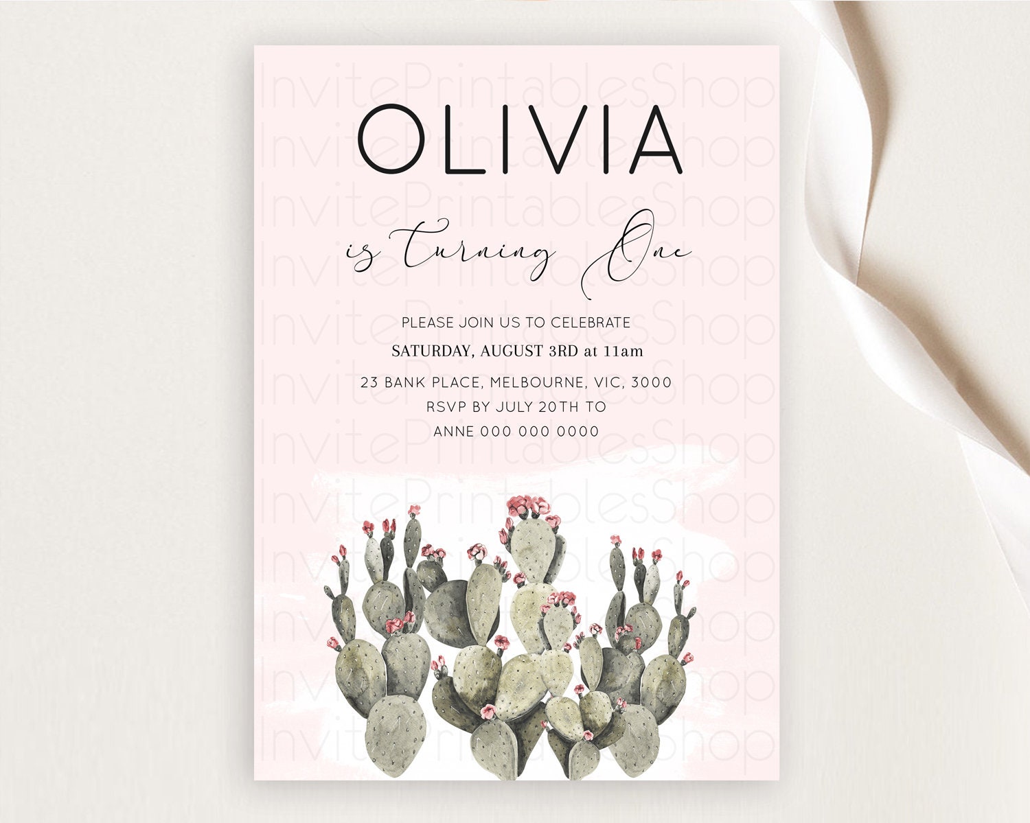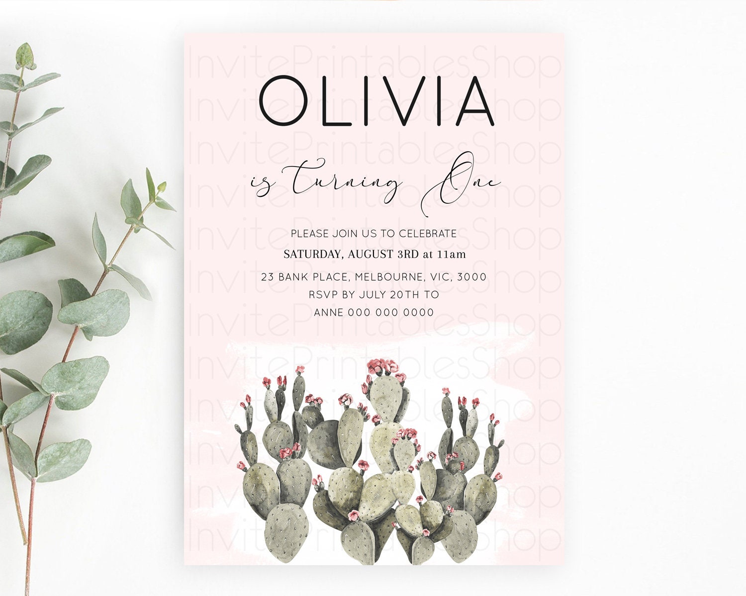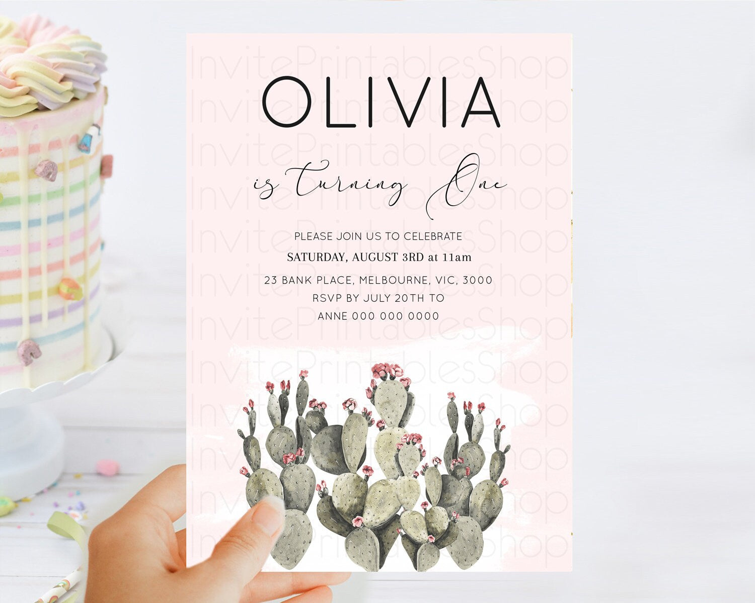 Prickly Pear Invitation Birthday Prickly Pear Invitation Cactus Invitation tropical fiesta invites Watercolor 3rd 2nd First Birthday D11052
