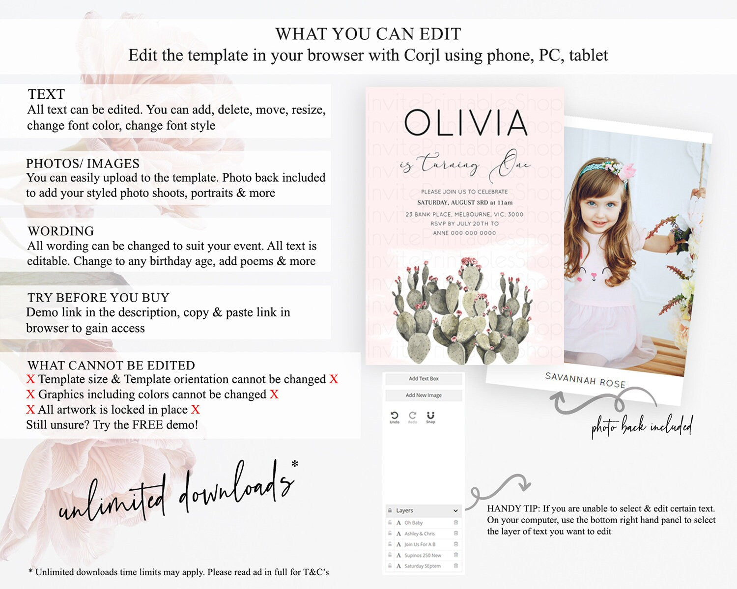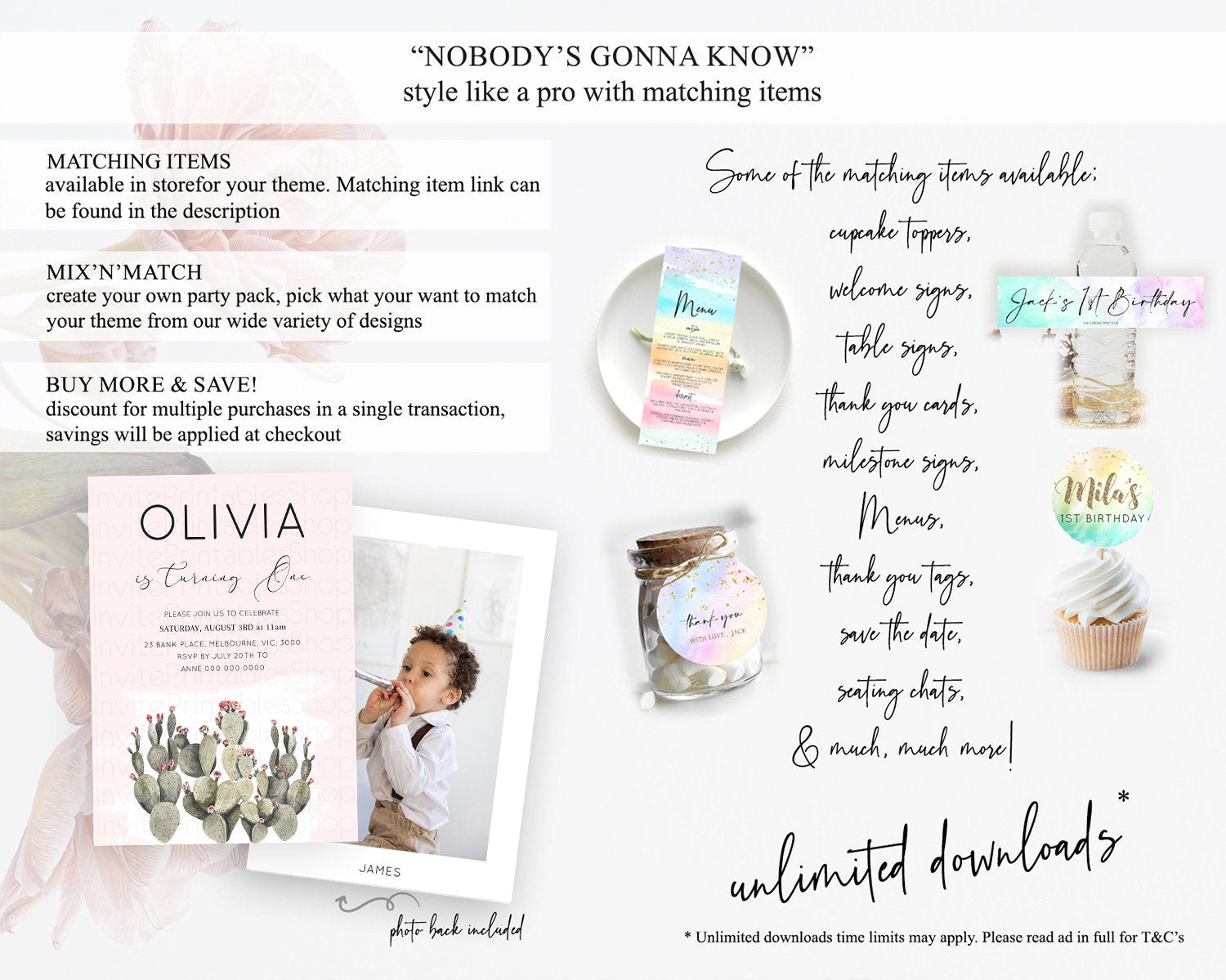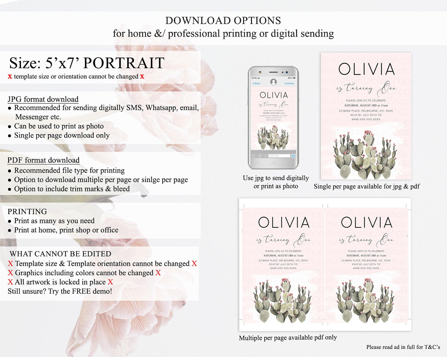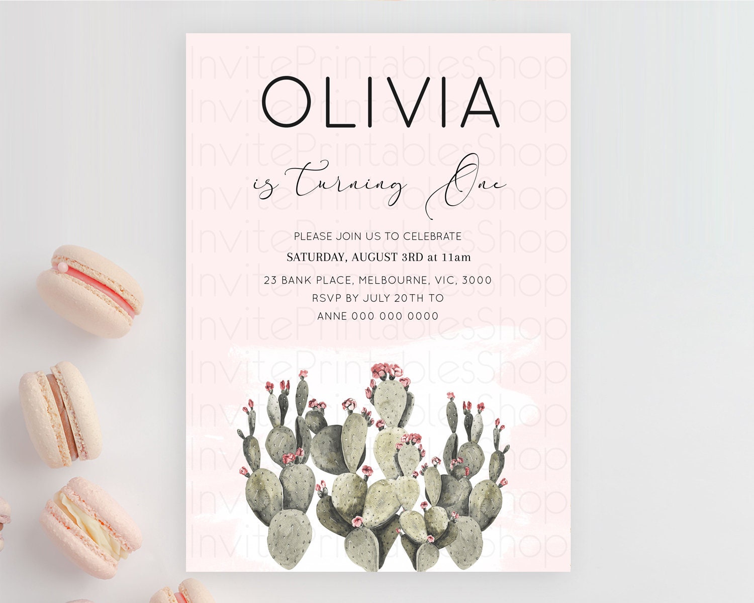 Prickly Pear Invitation Birthday Prickly Pear Invitation Cactus Invitation tropical fiesta invites Watercolor 3rd 2nd First Birthday D11052