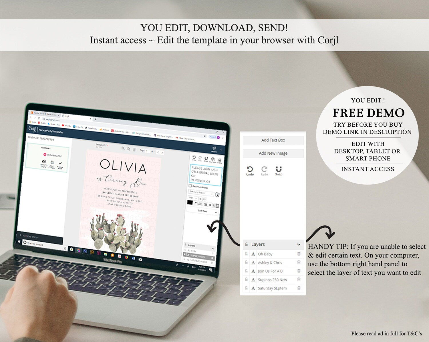 • After purchase, Corjl emails your editing link. Allow up to 15 minutes for delivery.