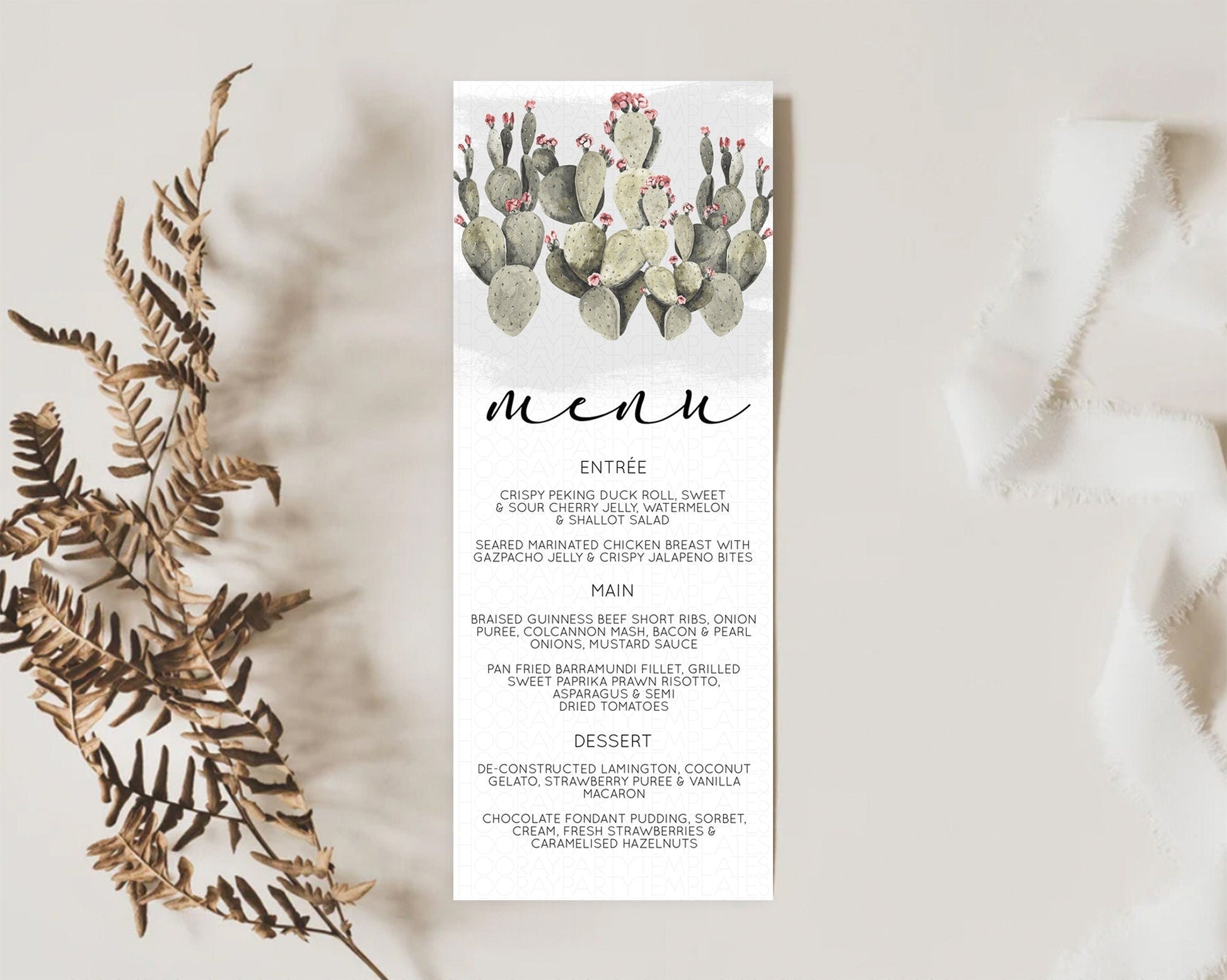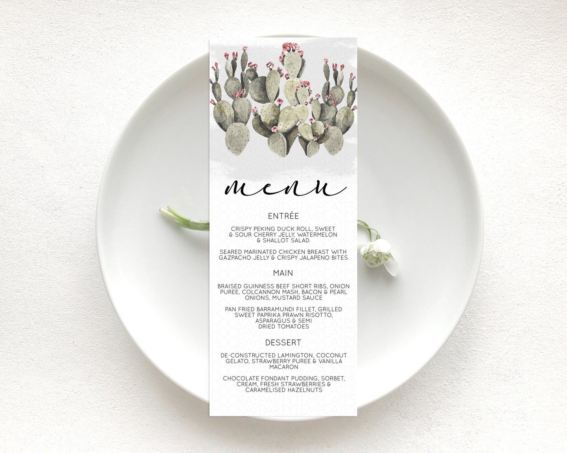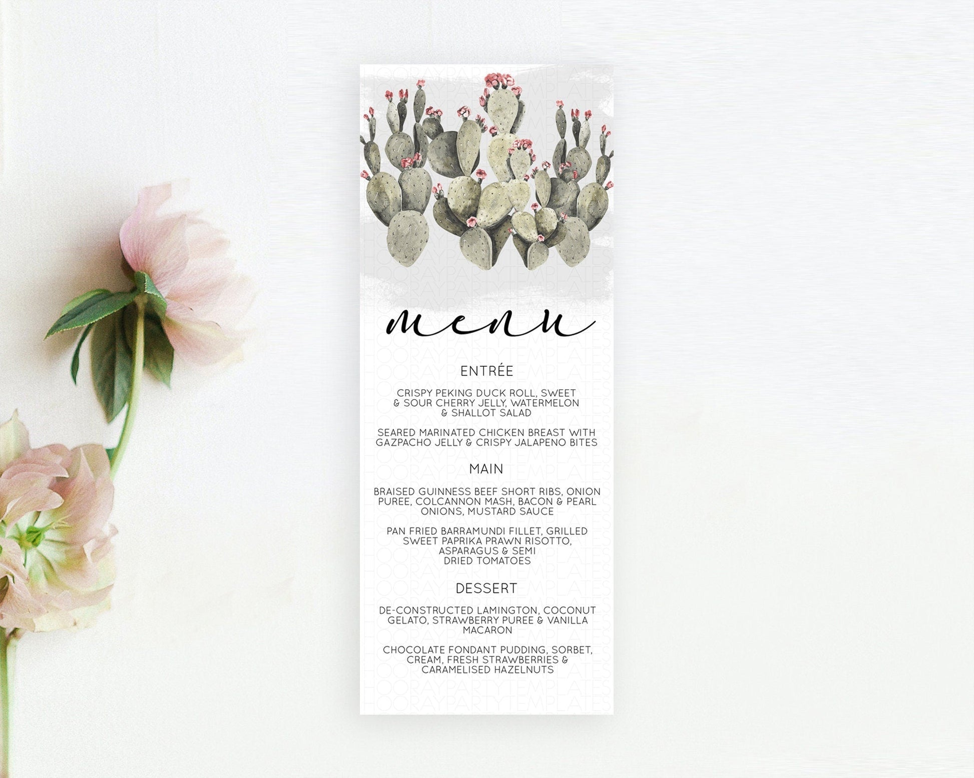 Prickly Pear Menu Template Prickly Pear Menu Cactus Table Decor Tropical Fiesta Party Cactus Dinner Dessert Food Menu D11015