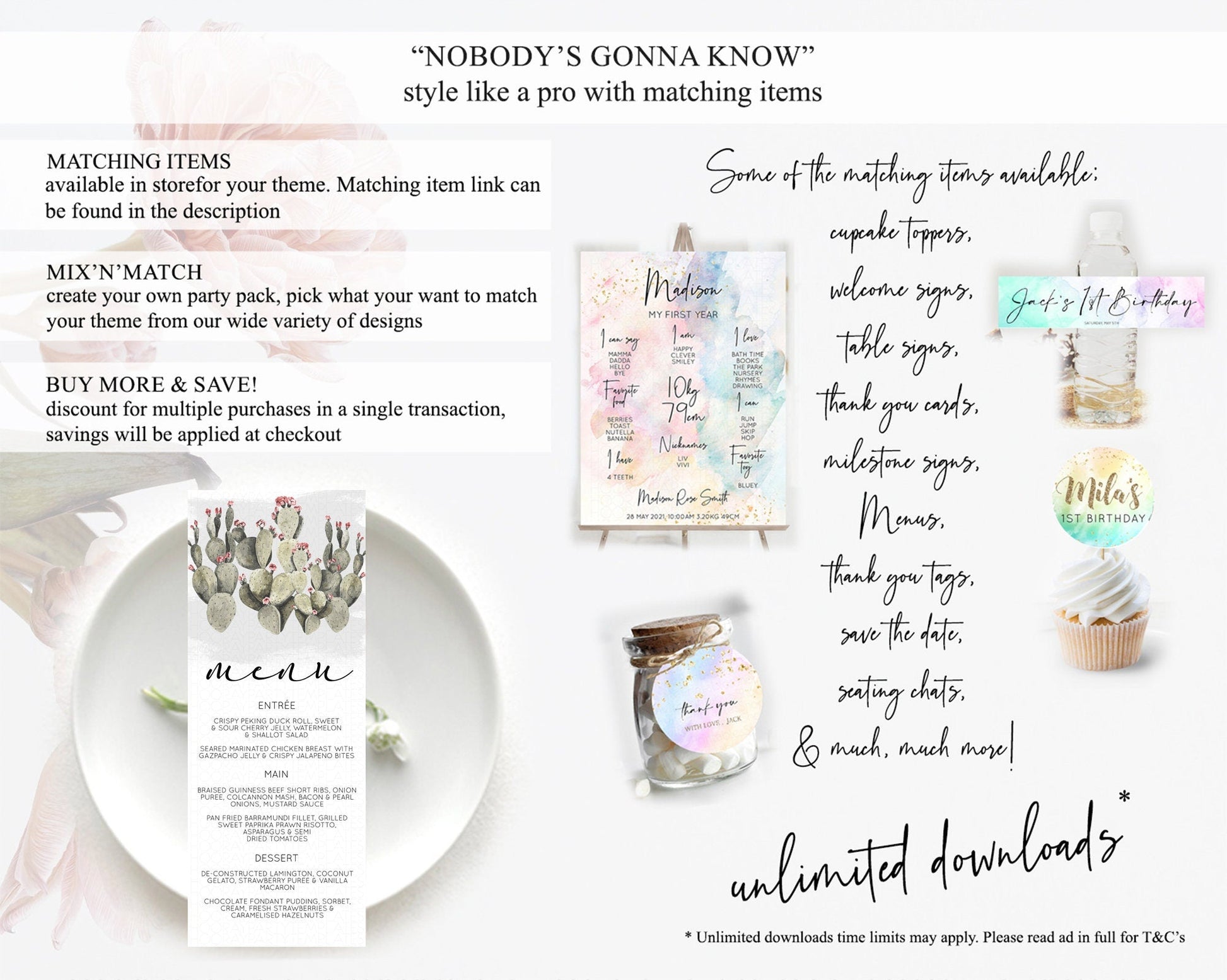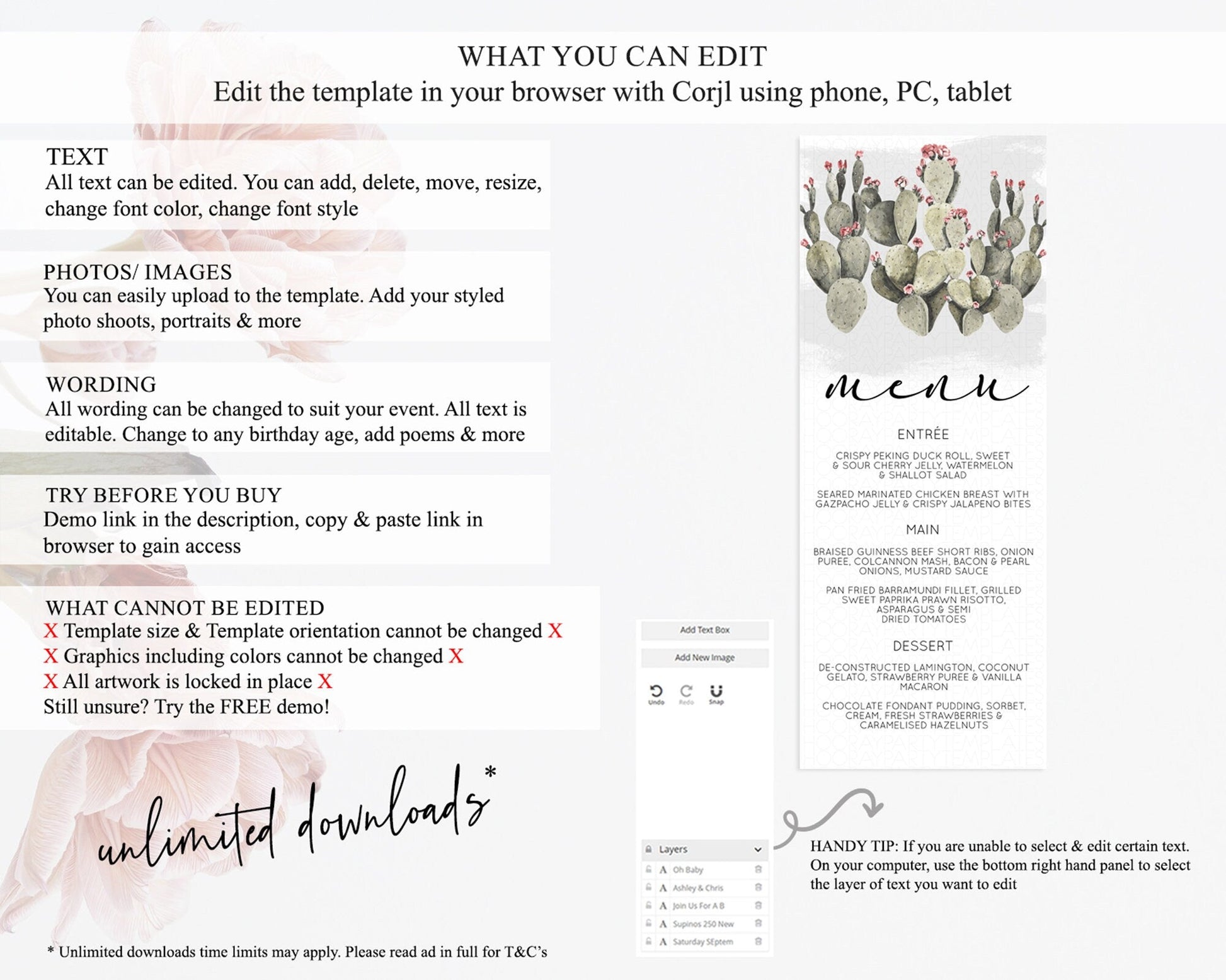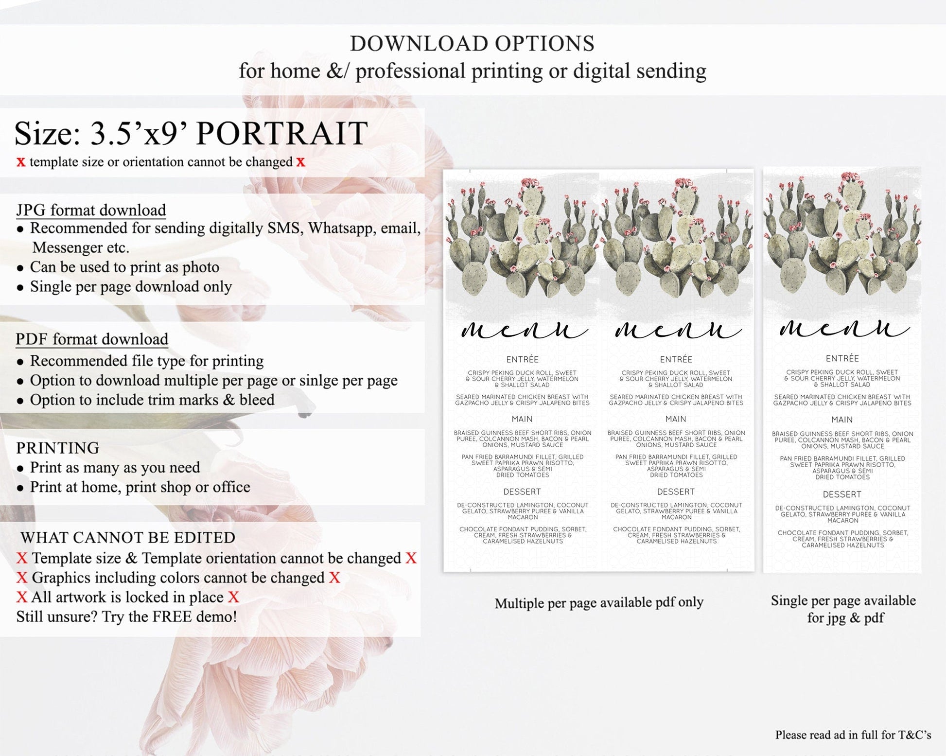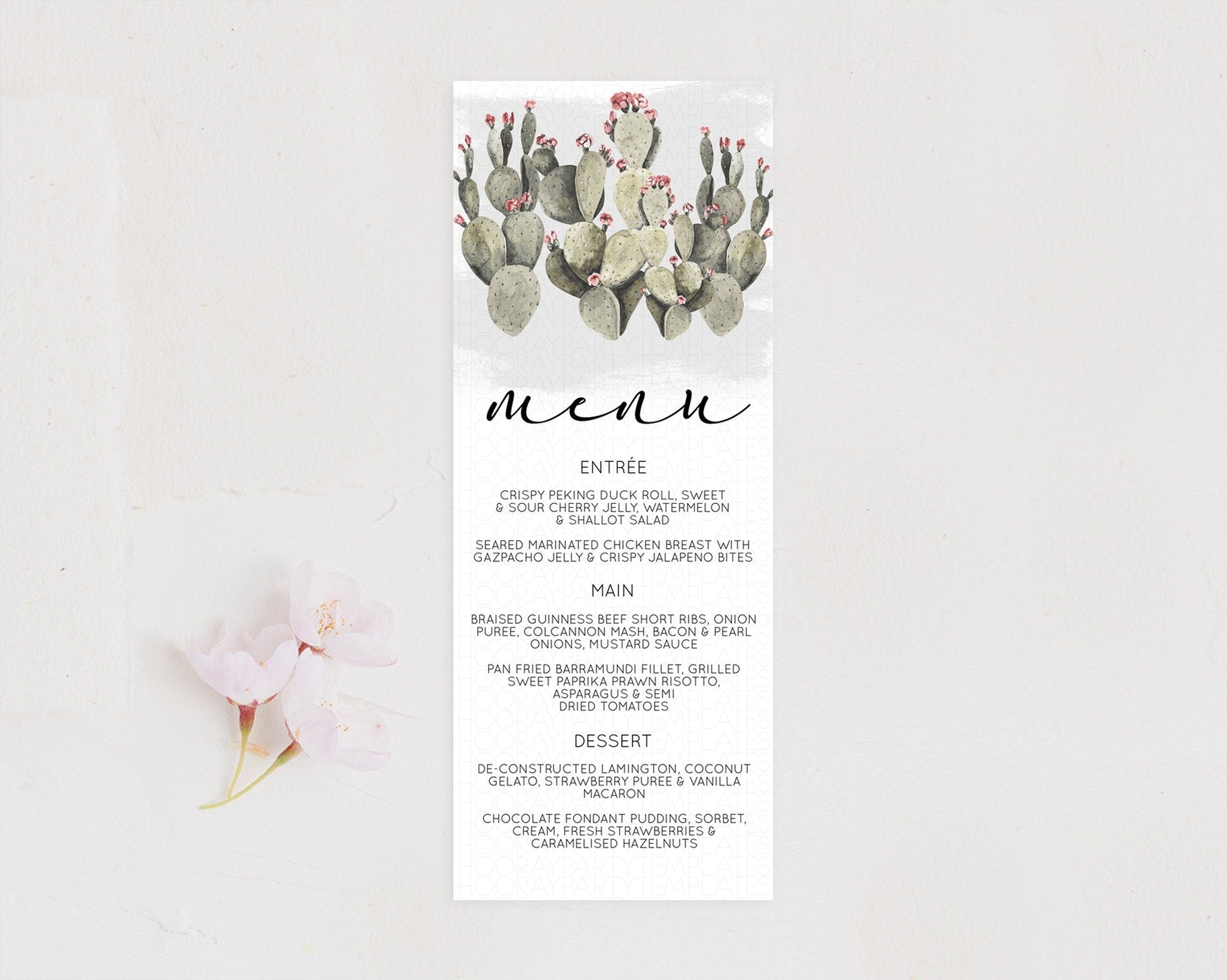 Prickly Pear Menu Template Prickly Pear Menu Cactus Table Decor Tropical Fiesta Party Cactus Dinner Dessert Food Menu D11015