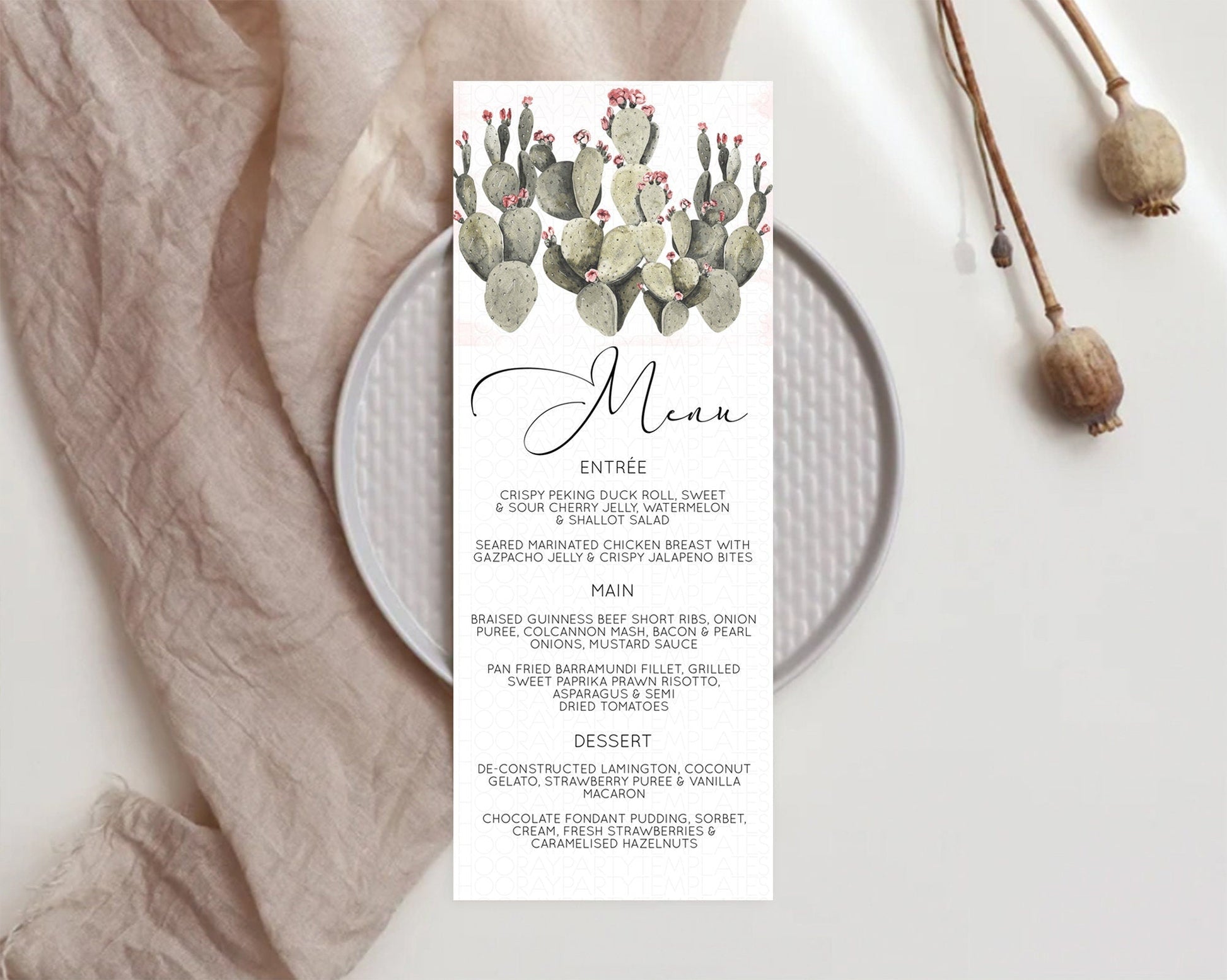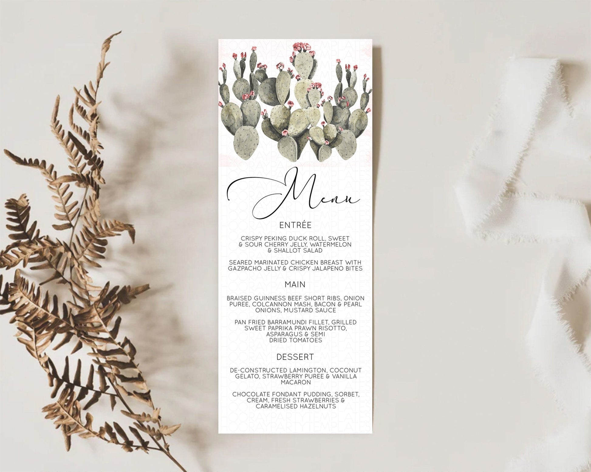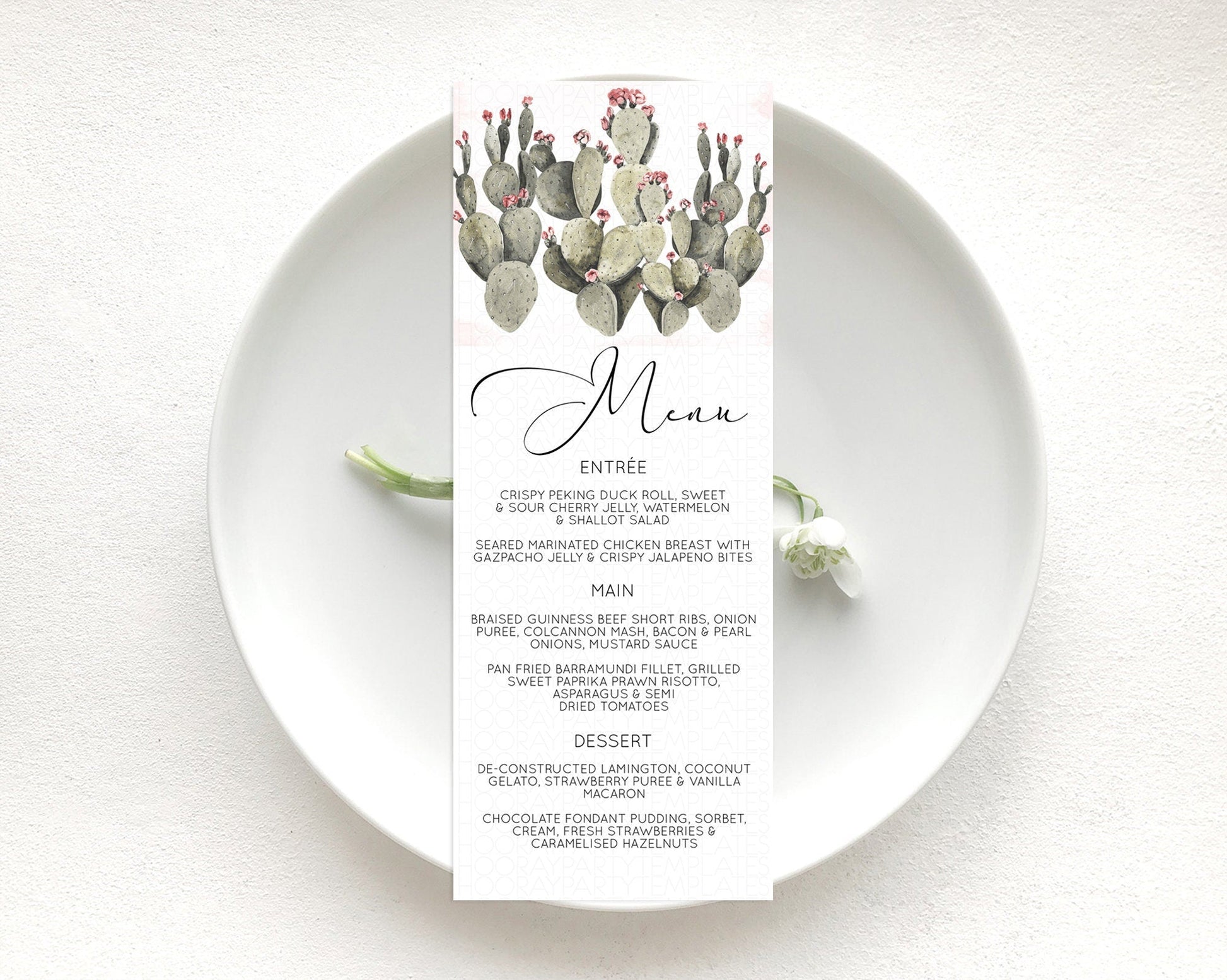 Prickly Pear Menu Template Prickly Pear Menu Cactus Table Decor Tropical Fiesta Party Cactus Dinner Dessert Food Menu D11052