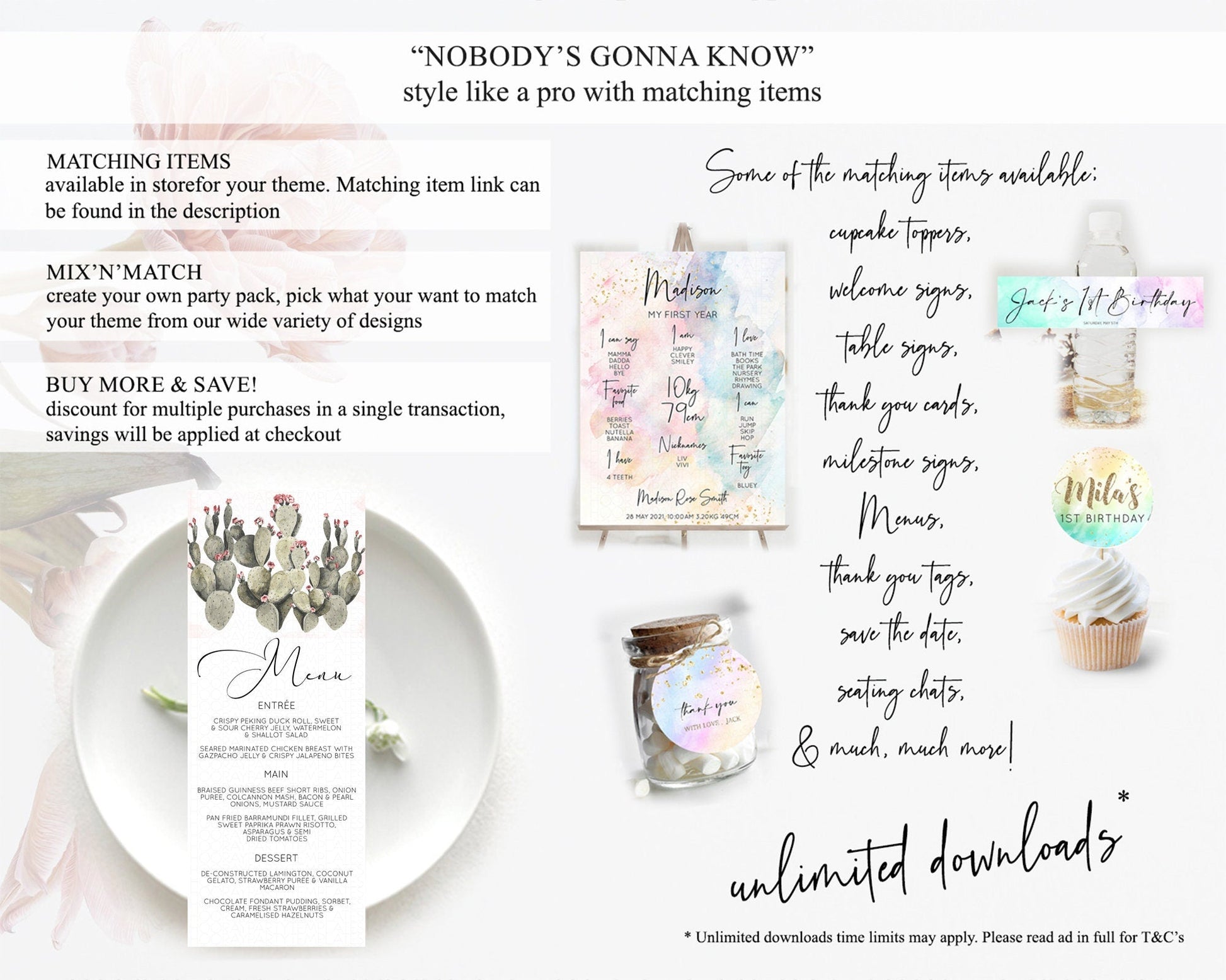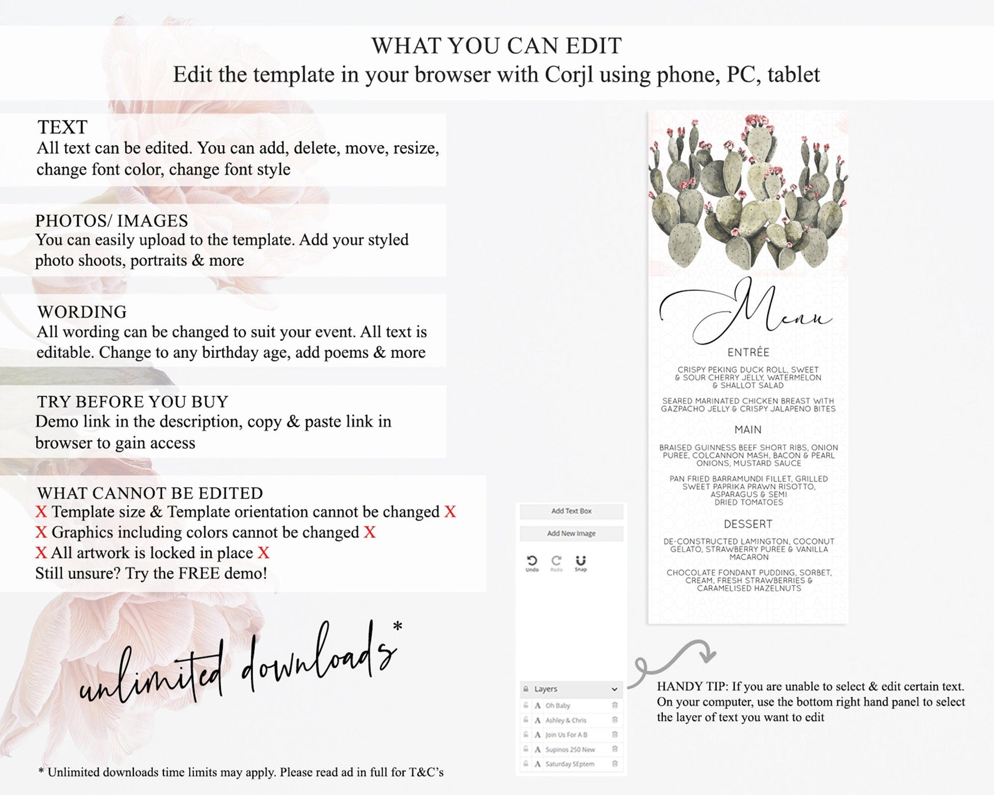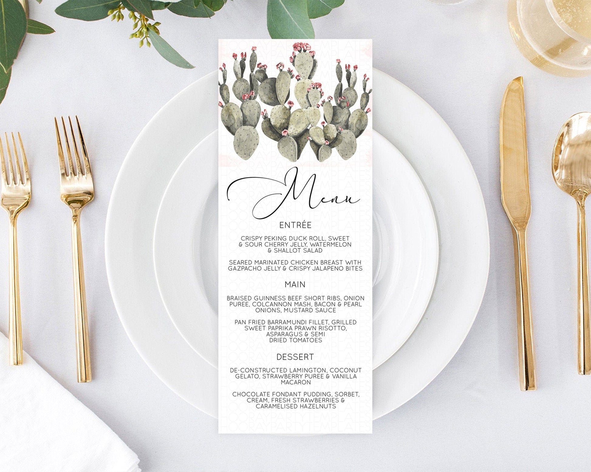 Prickly Pear Menu Template Prickly Pear Menu Cactus Table Decor Tropical Fiesta Party Cactus Dinner Dessert Food Menu D11052