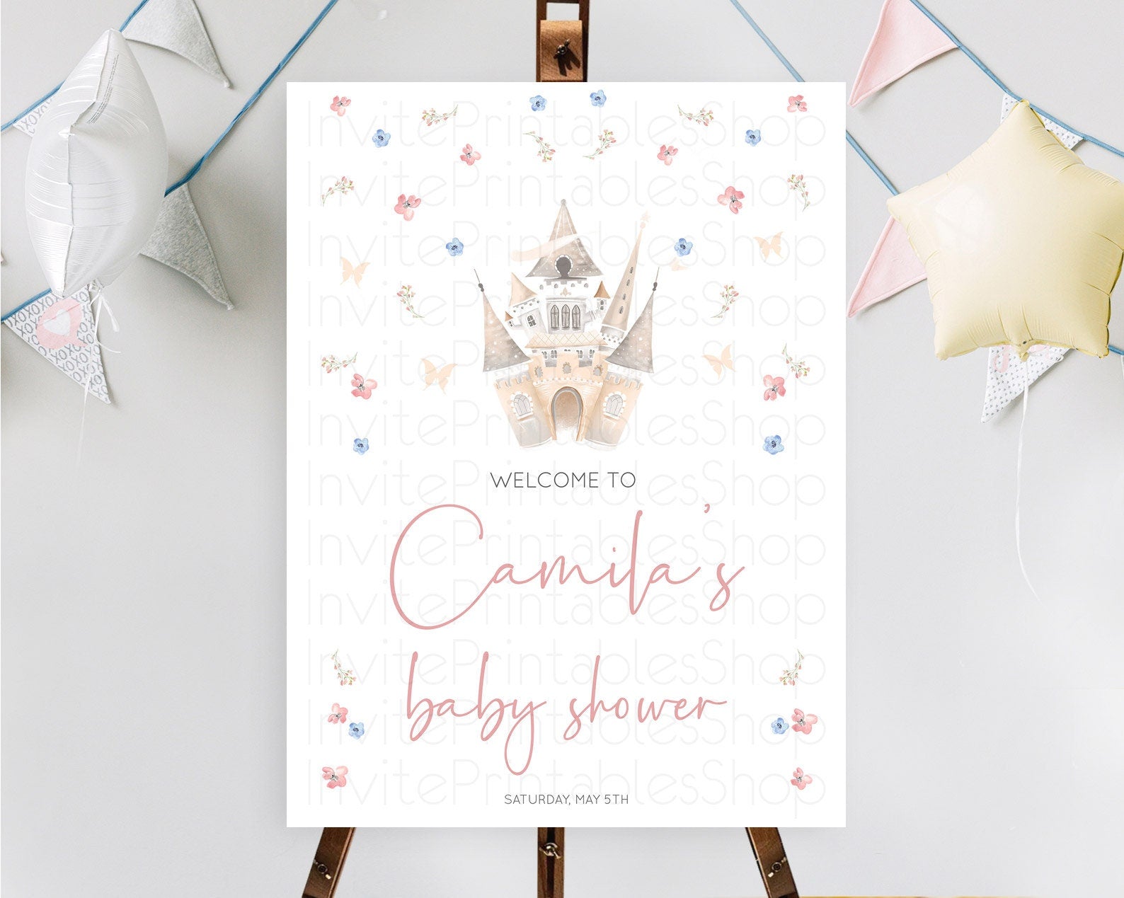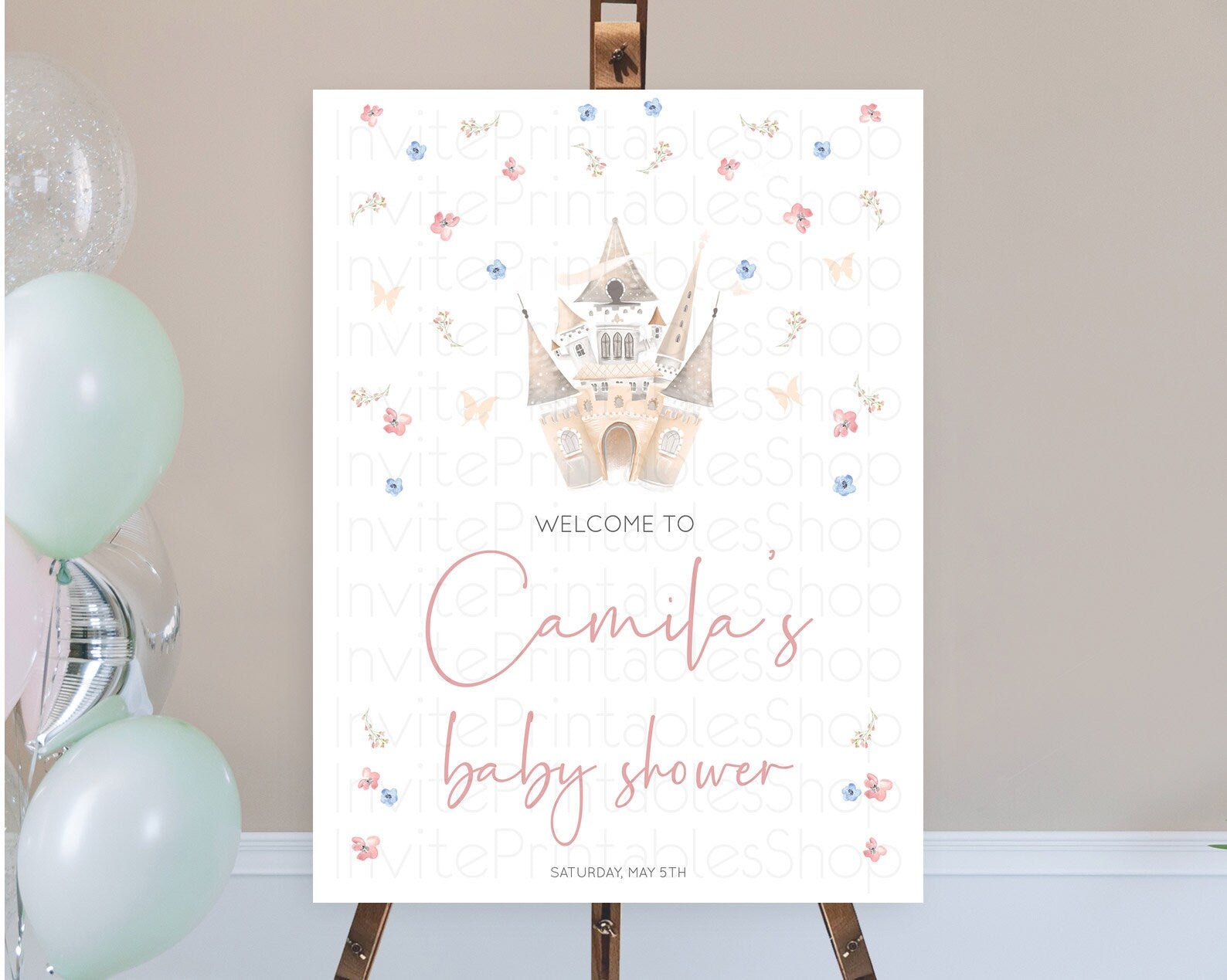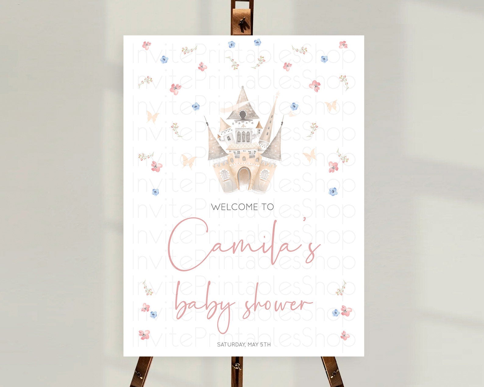 Princess Baby Shower Welcome Sign Castle Welcome Board Secret Garden Enchanted Castle Pastel Floral Garden Baby Shower Welcome Sign D10364