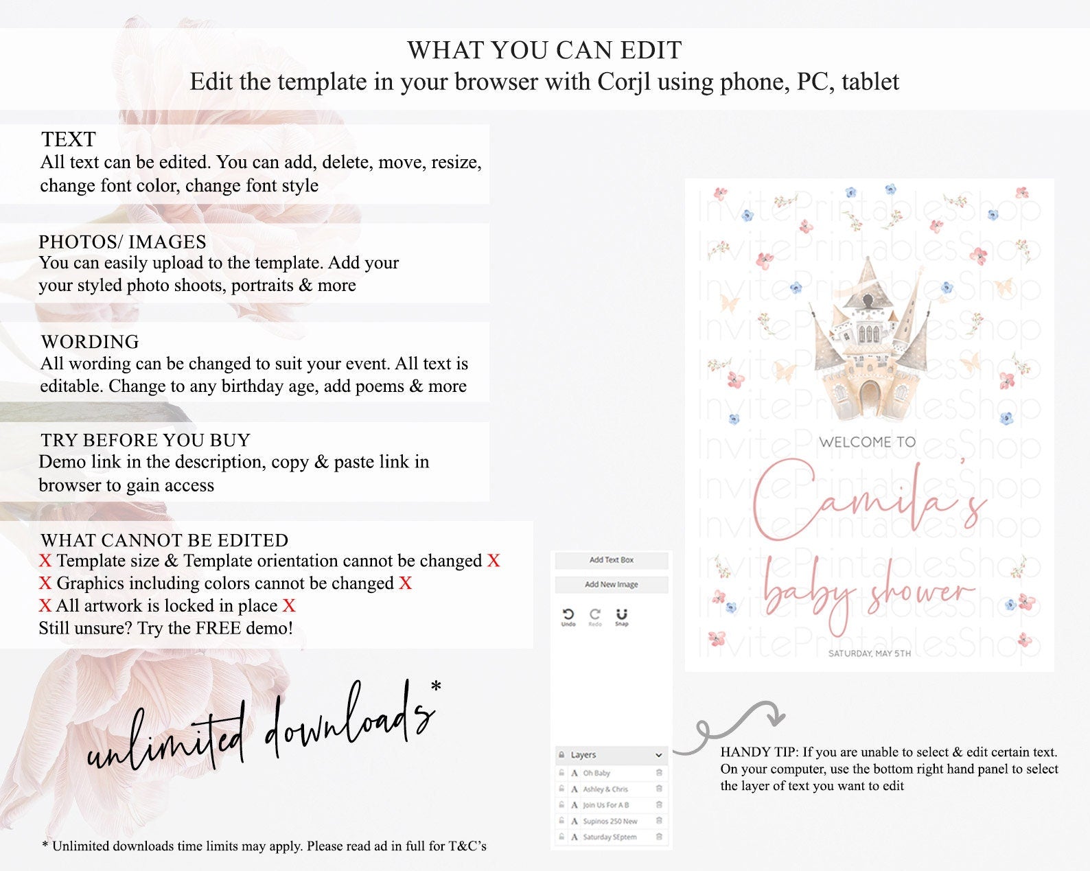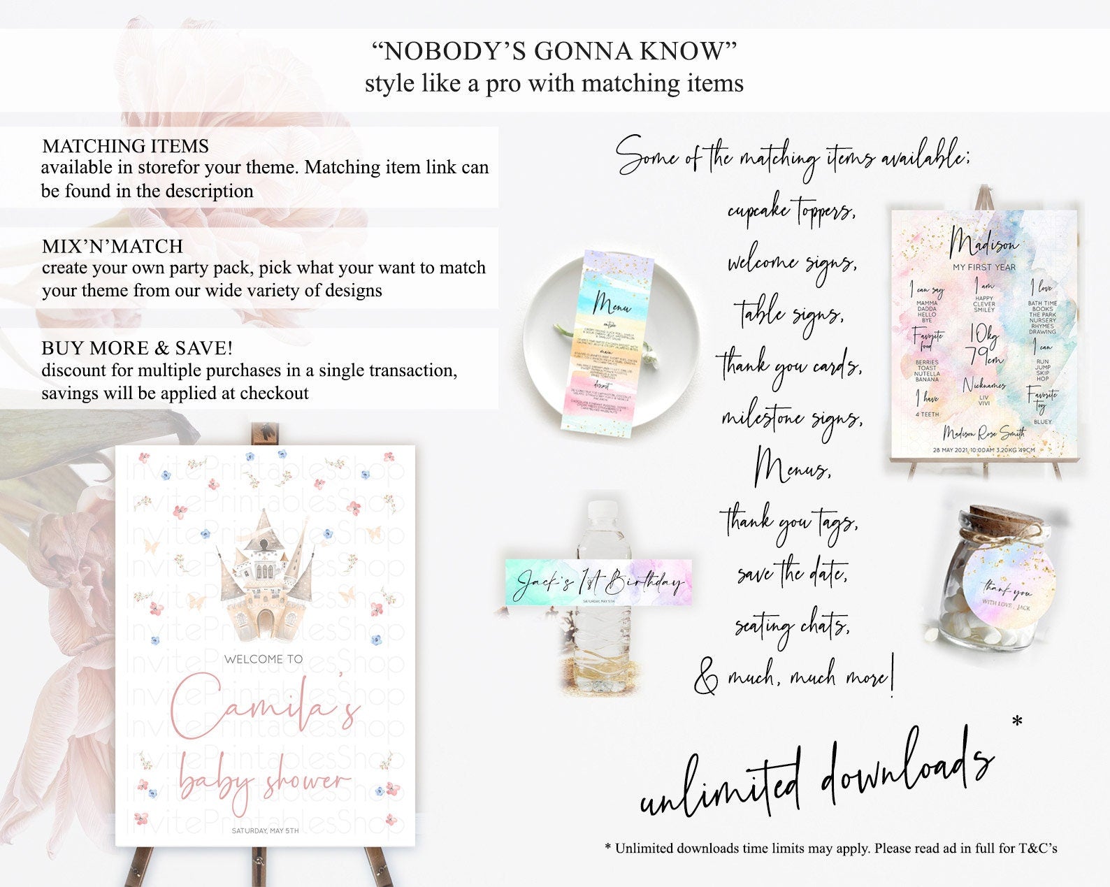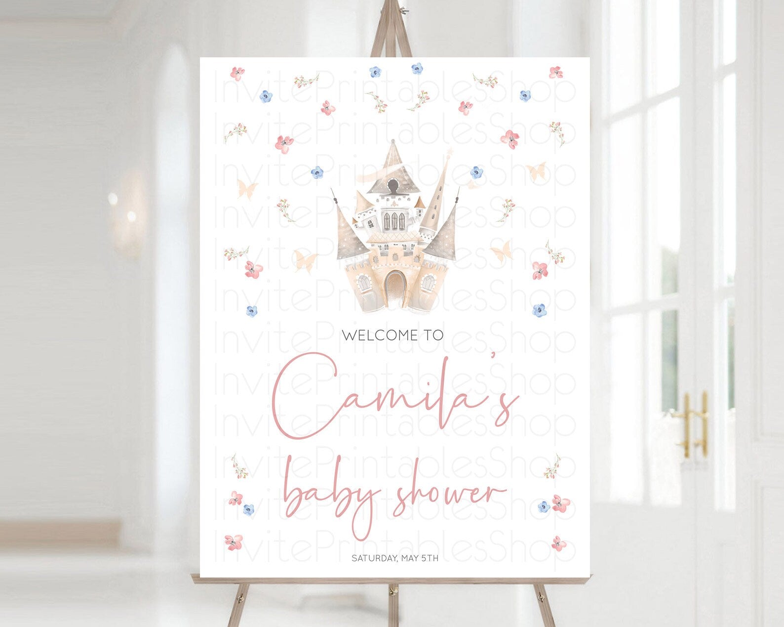 Princess Baby Shower Welcome Sign Castle Welcome Board Secret Garden Enchanted Castle Pastel Floral Garden Baby Shower Welcome Sign D10364