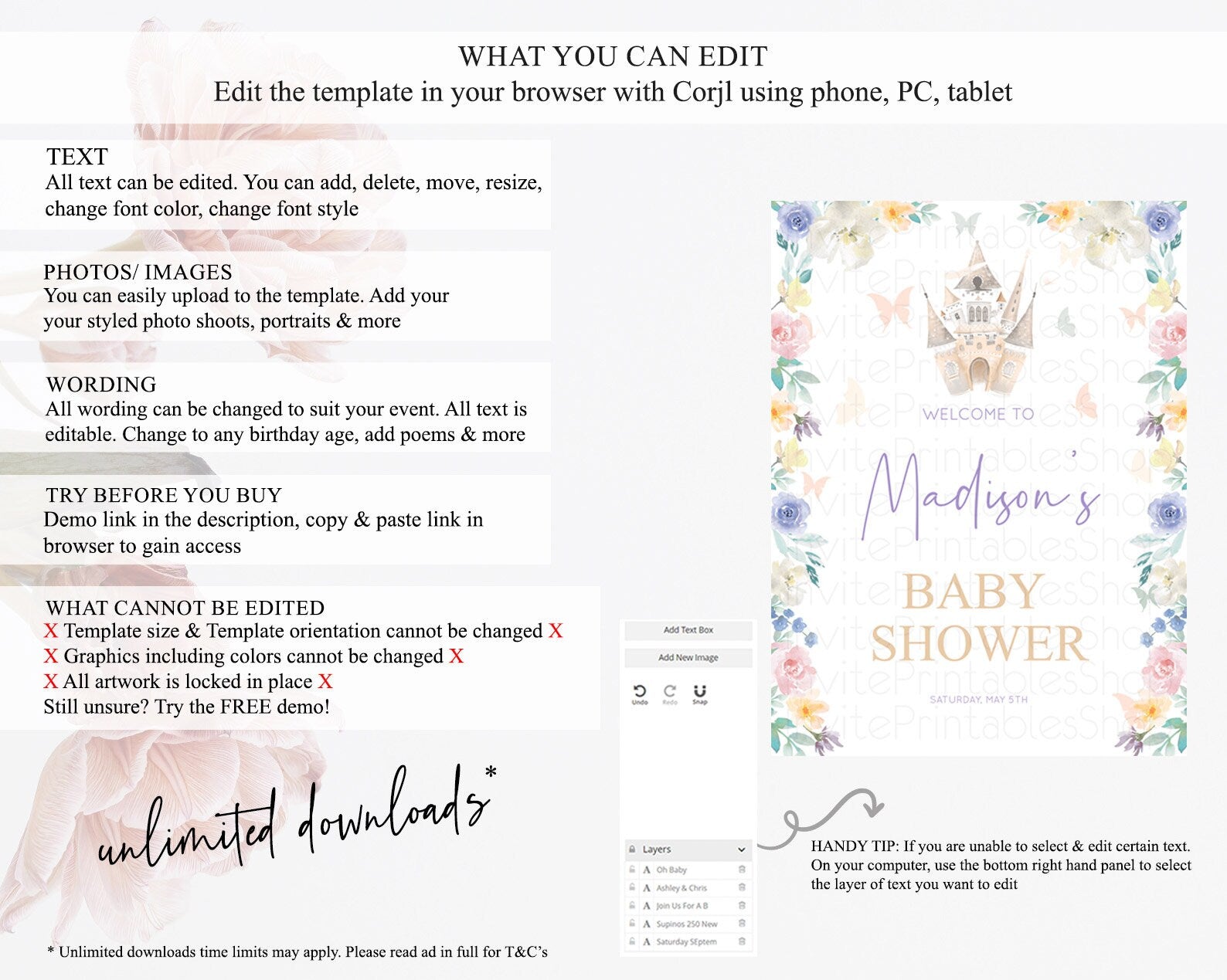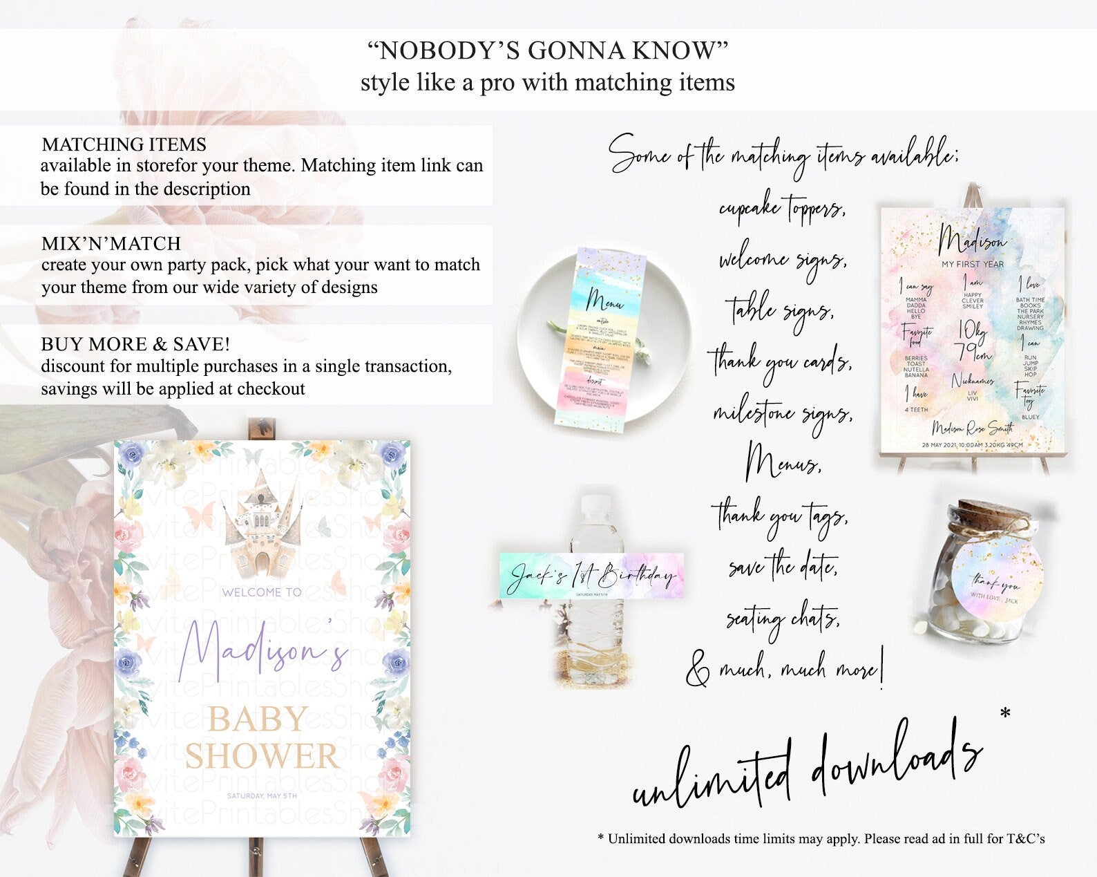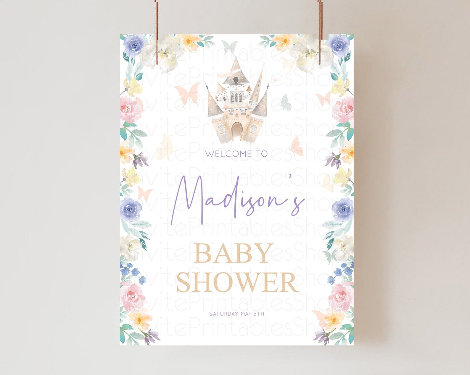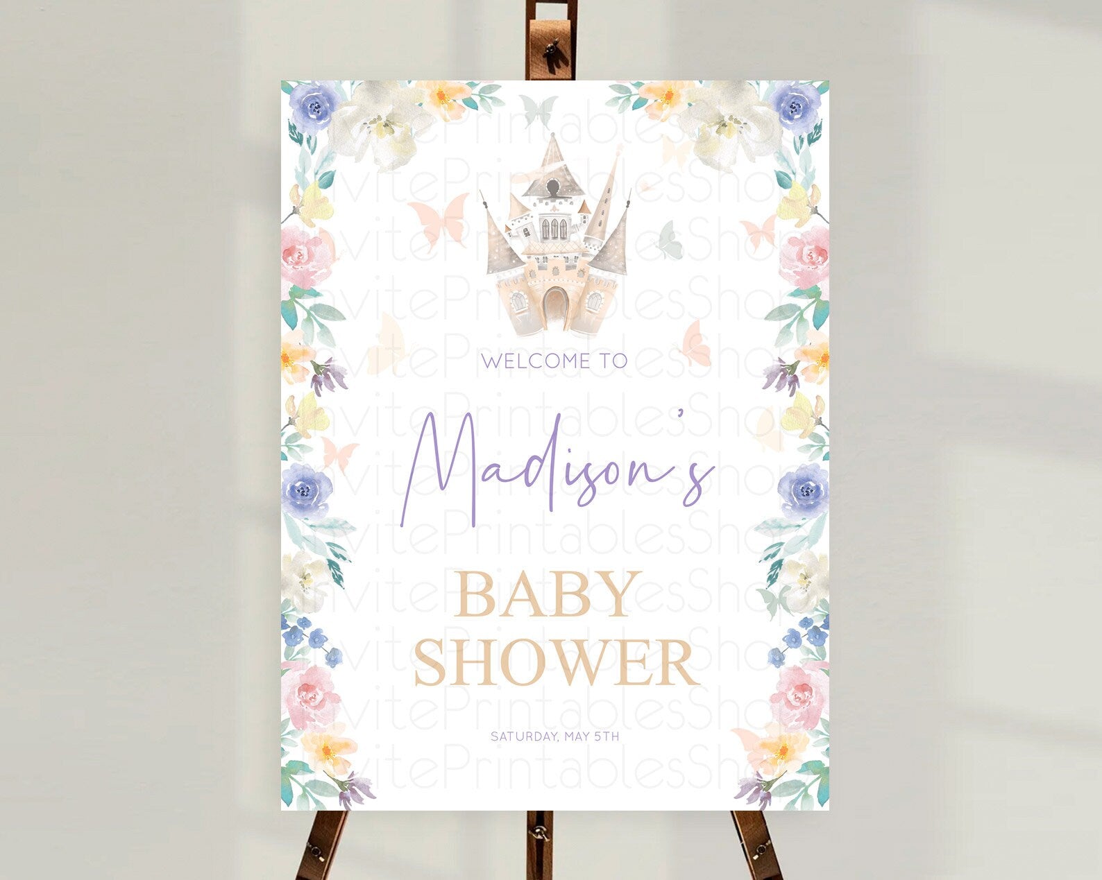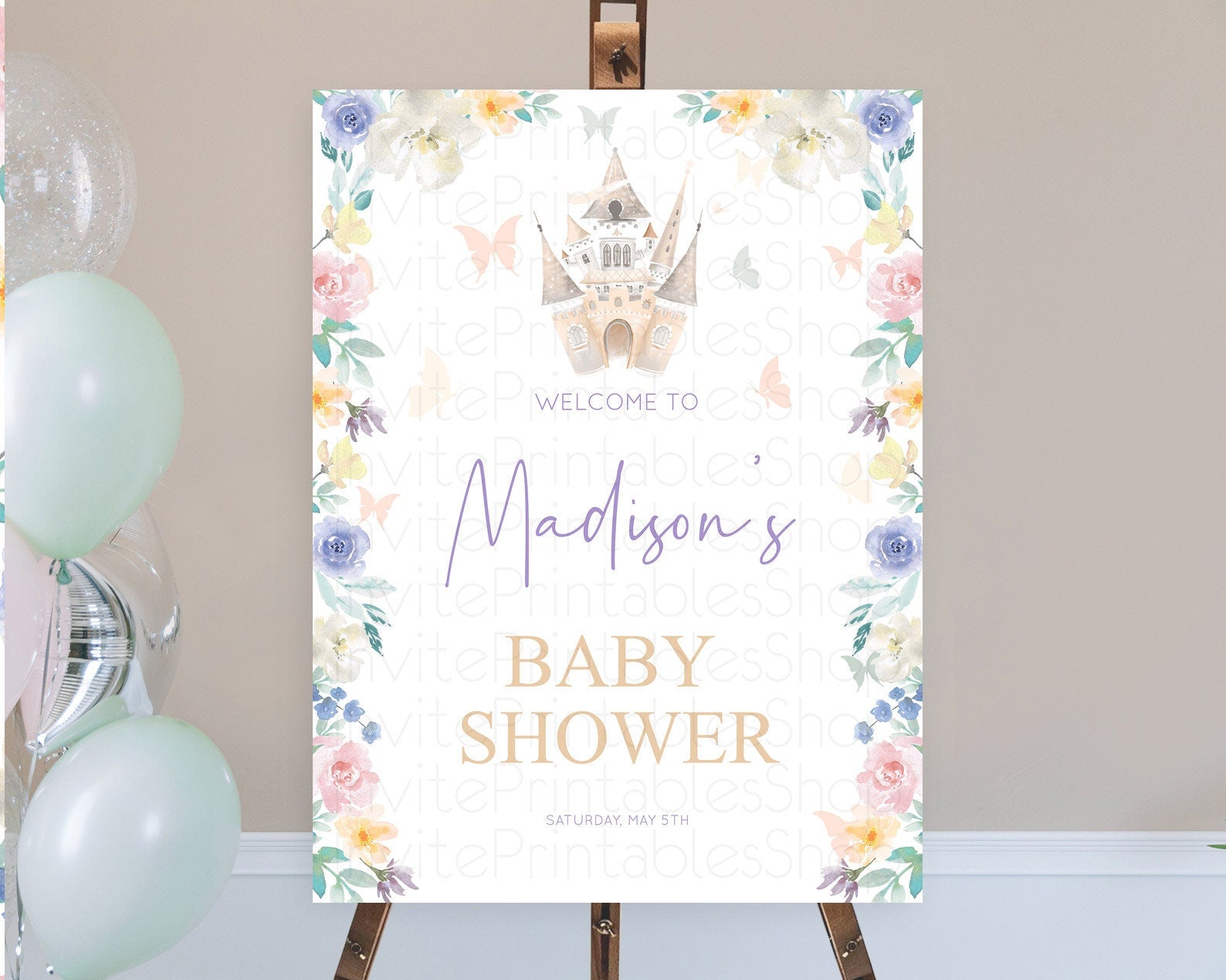 Princess Baby Shower Welcome Sign Castle Welcome Board Secret Garden Enchanted Castle Pastel Floral Garden Baby Shower Welcome Sign D10709