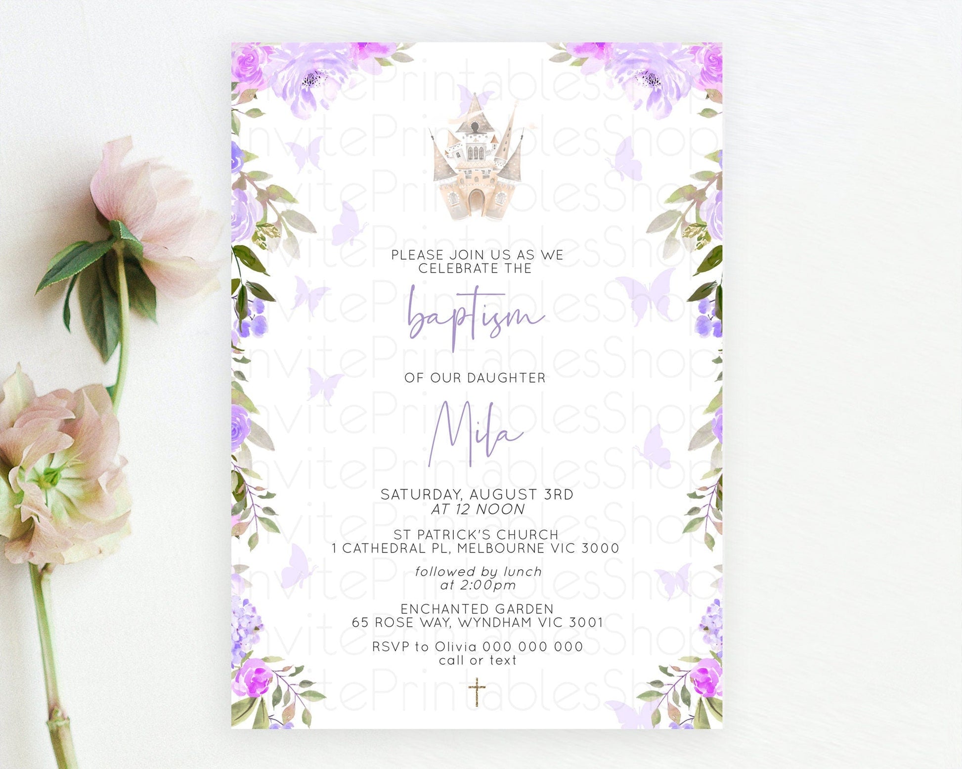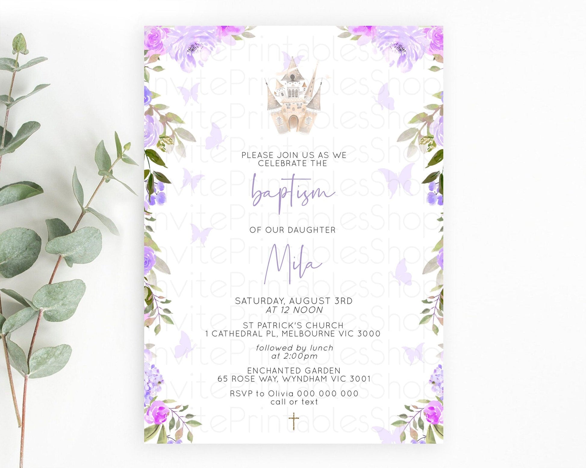 Princess Baptism Invitation Enchanted Castle Baptism 1st Birthday Invitation Royal Party Pastel Floral Secret Garden Christening D10339