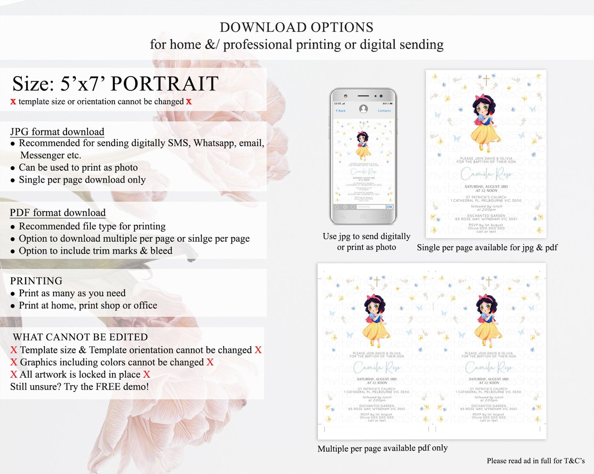 Princess Baptism Invitation Enchanted Castle Baptism 1st Birthday Invitation Royal Party Pastel Floral Secret Garden Christening D10353
