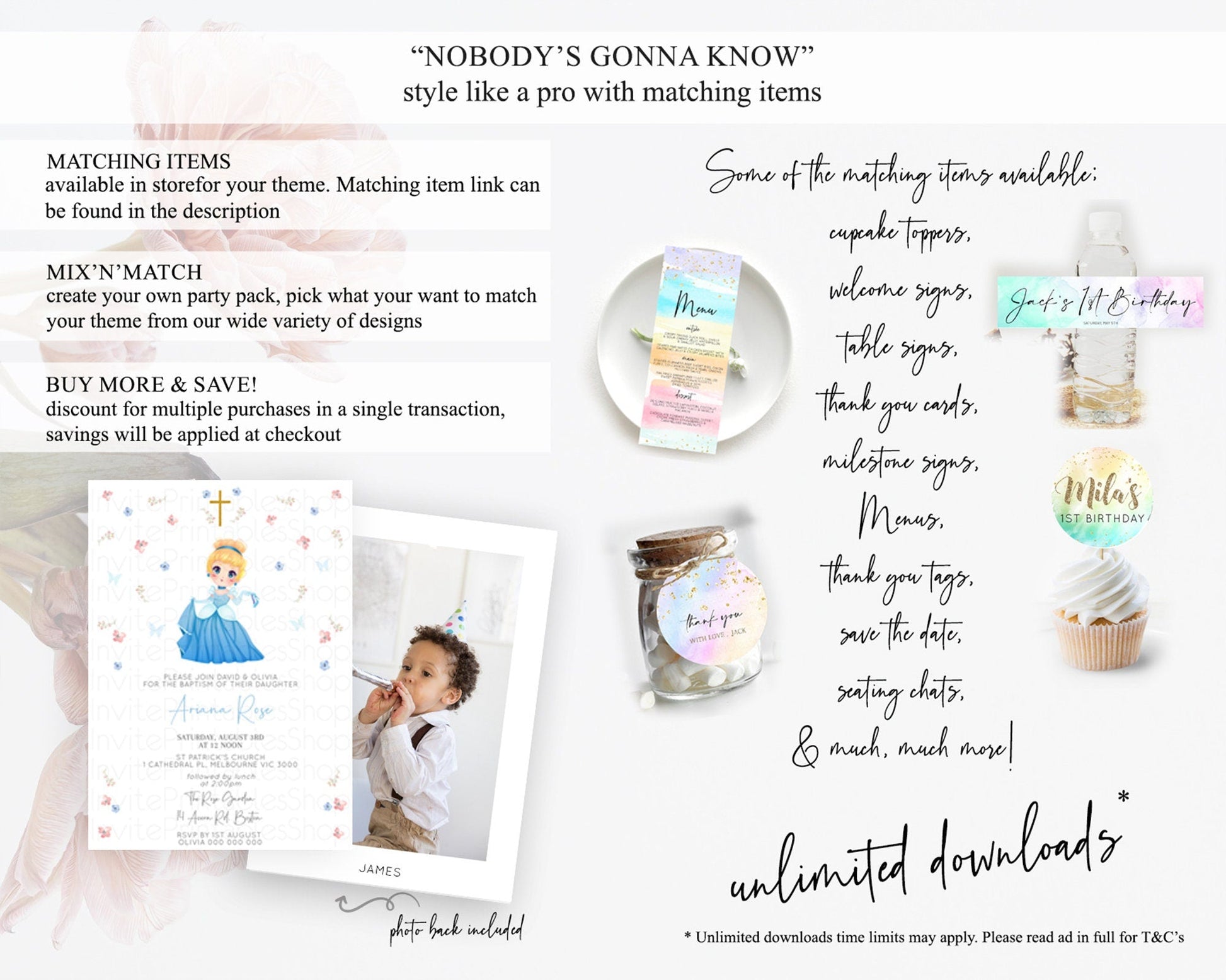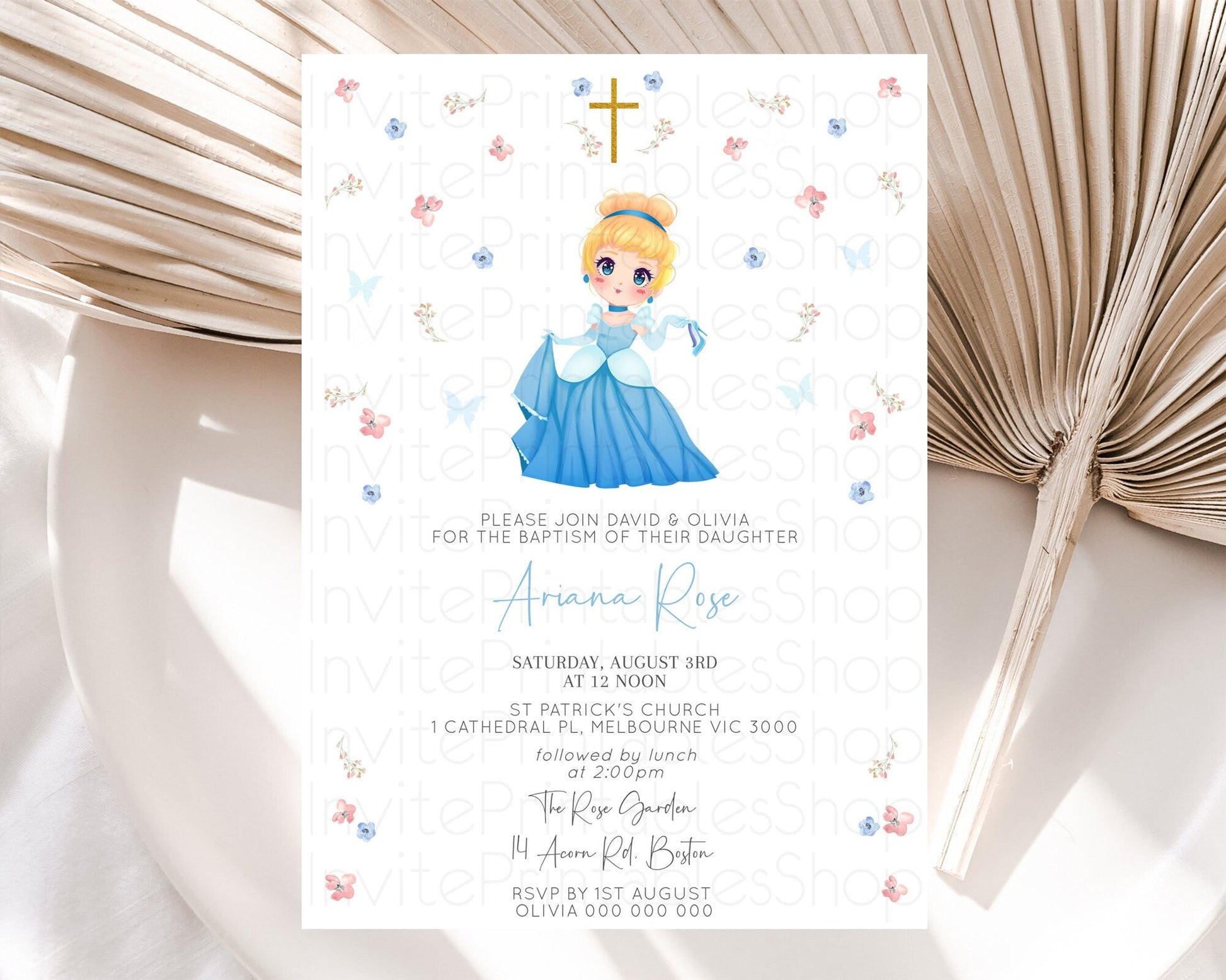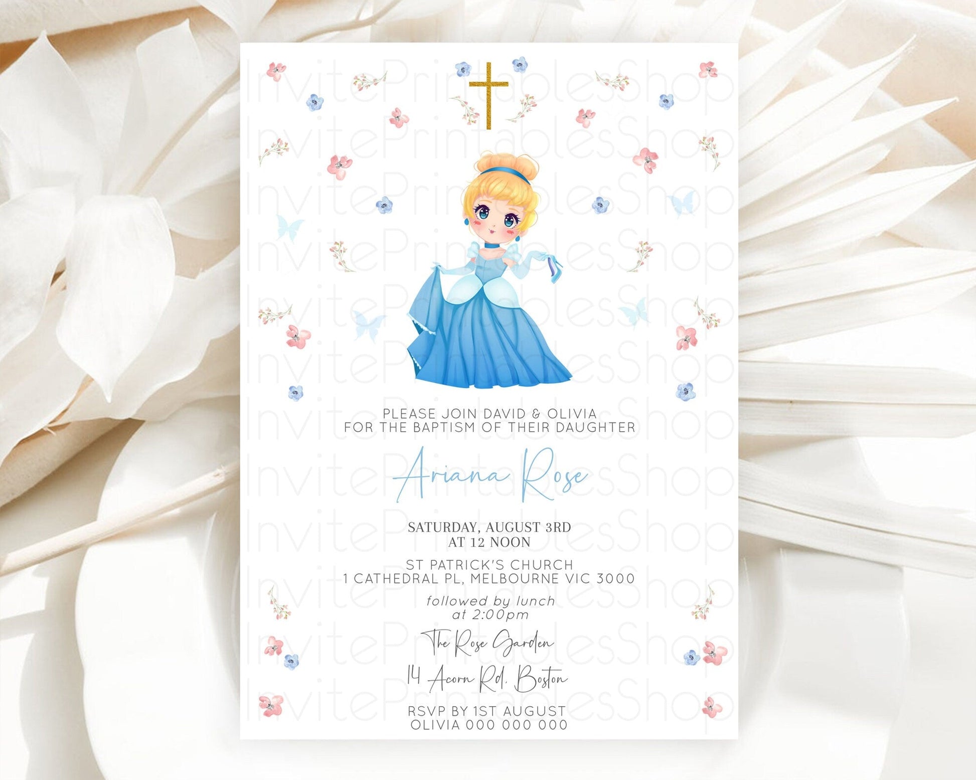 Princess Baptism Invitation Enchanted Castle Baptism 1st Birthday Invitation Royal Party Pastel Floral Secret Garden Christening D10354