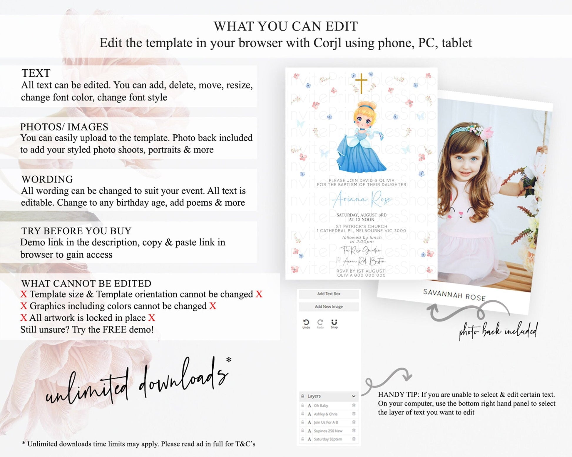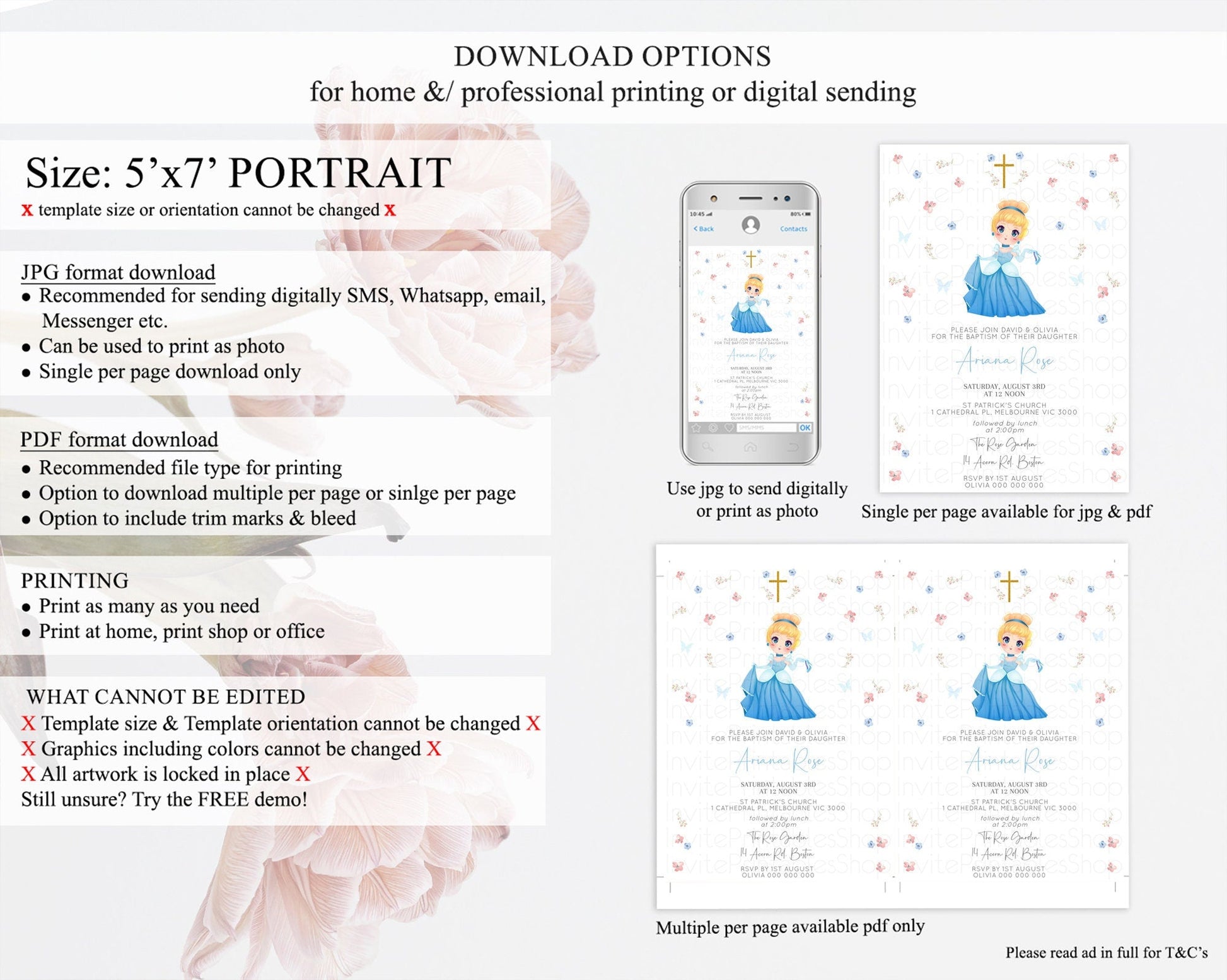 • Template size & orientation cannot be changed. Please use the demo link to confirm this product suits your needs.