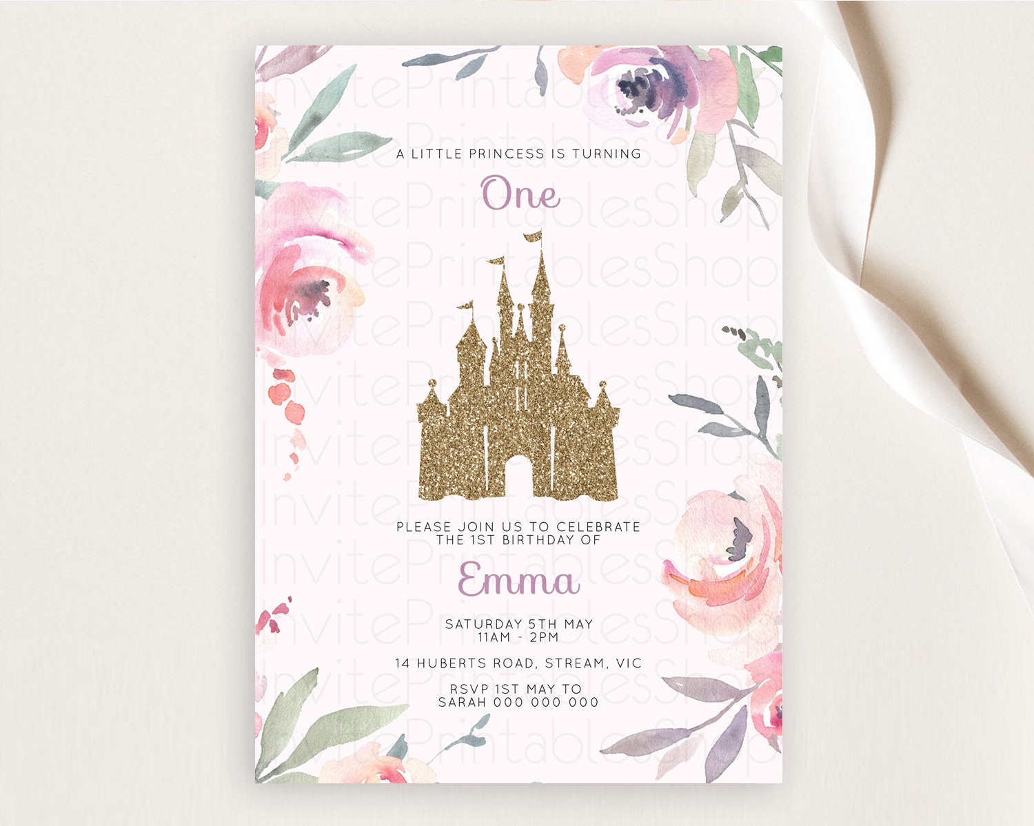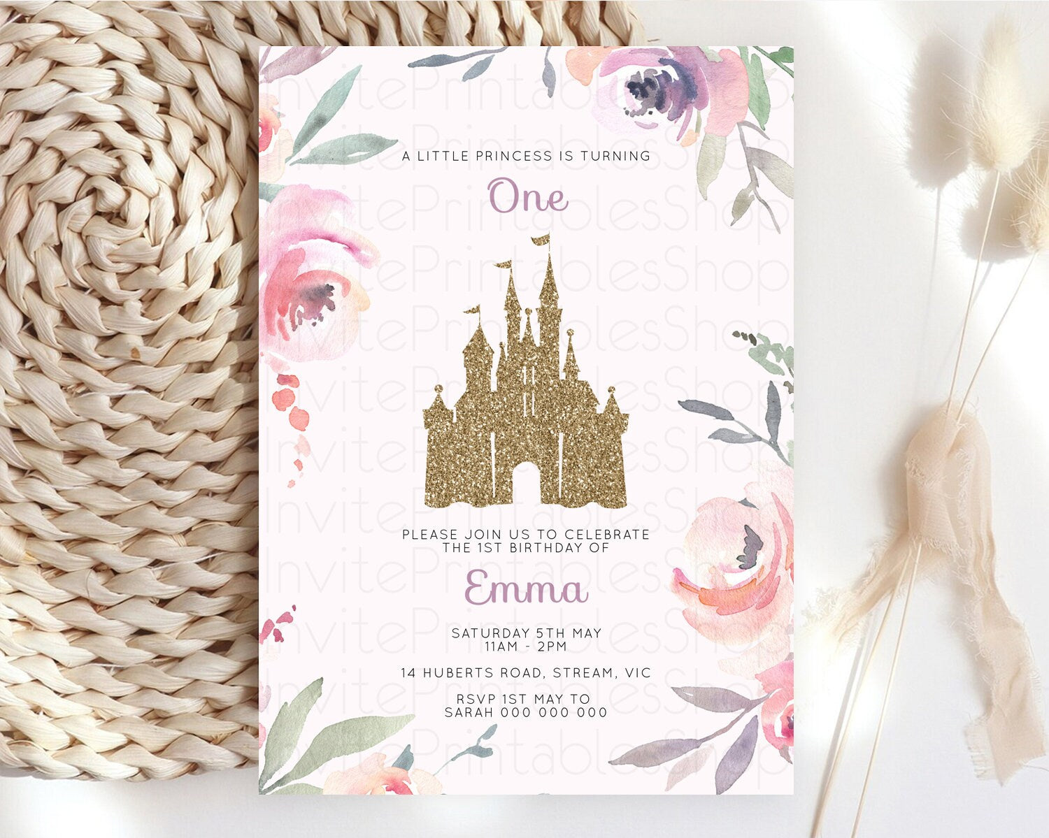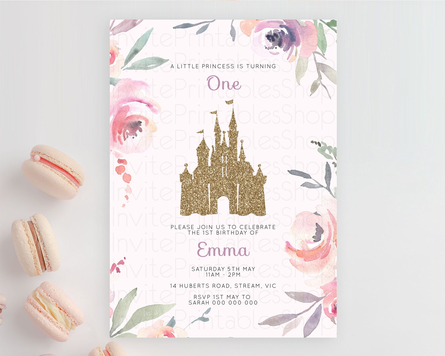 Princess Birthday Invitation Castle Invitation Royal Birthday Fairy Tale Enchanted Castle Pastel Floral Garden 1st First Birthday D10195