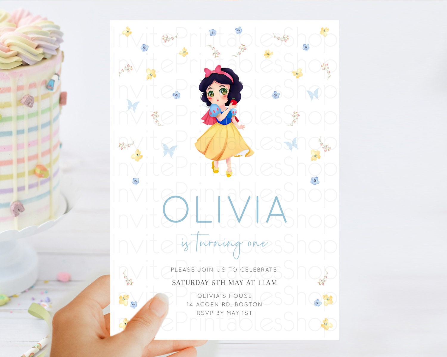 Princess Birthday Invitation Castle Invitation Royal Birthday Fairy Tale Enchanted Castle Pastel Floral Garden 1st First Birthday D10353
