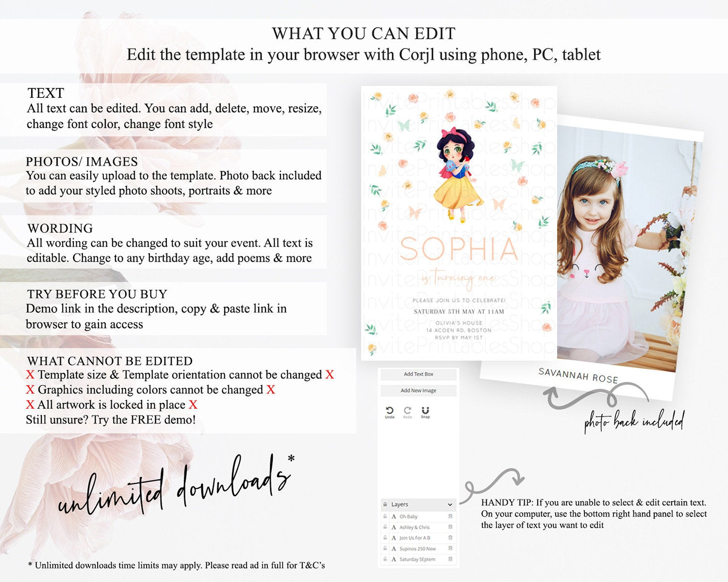 Princess Birthday Invitation Castle Invitation Royal Birthday Fairy Tale Enchanted Castle Pastel Floral Garden 1st First Birthday D10356