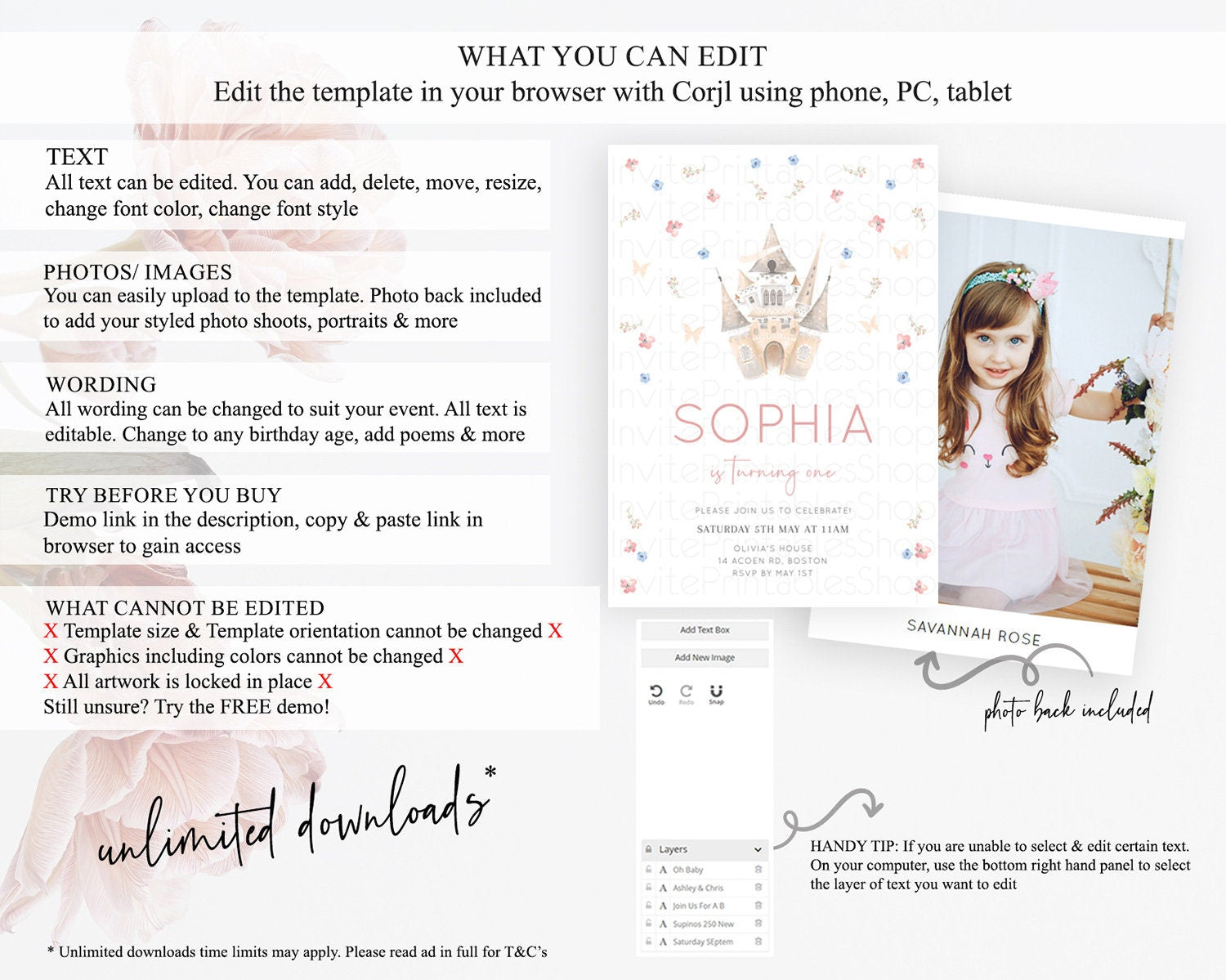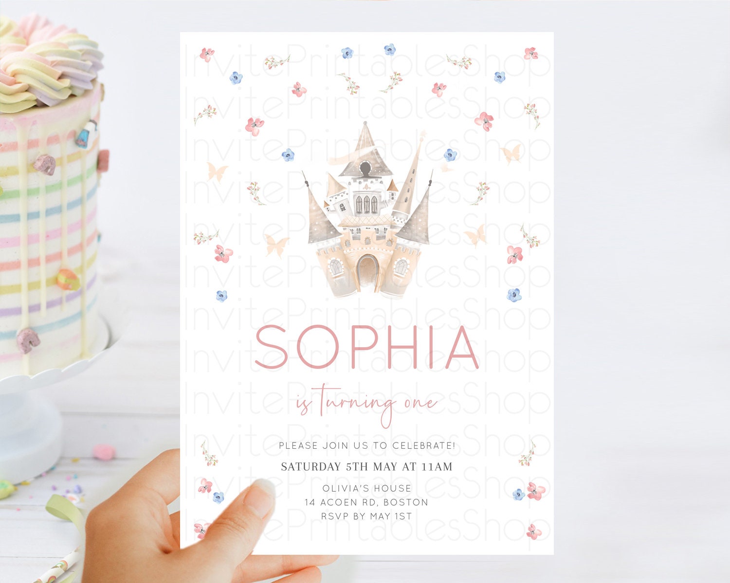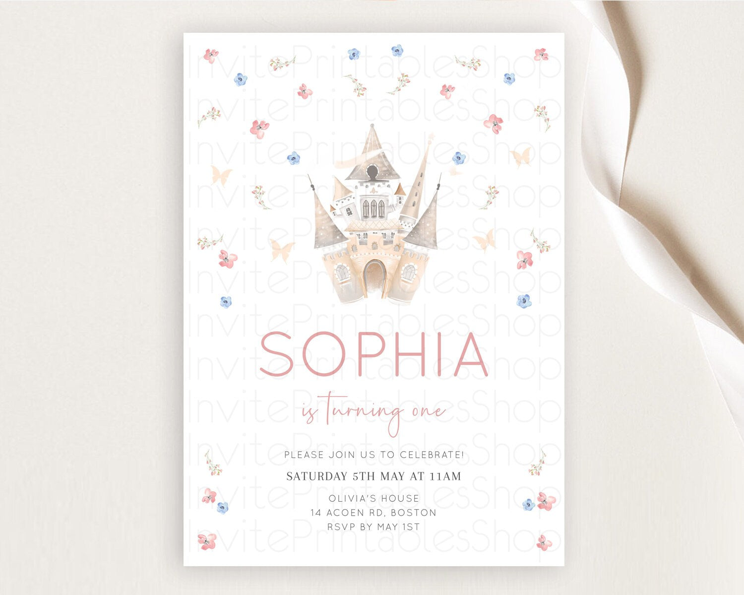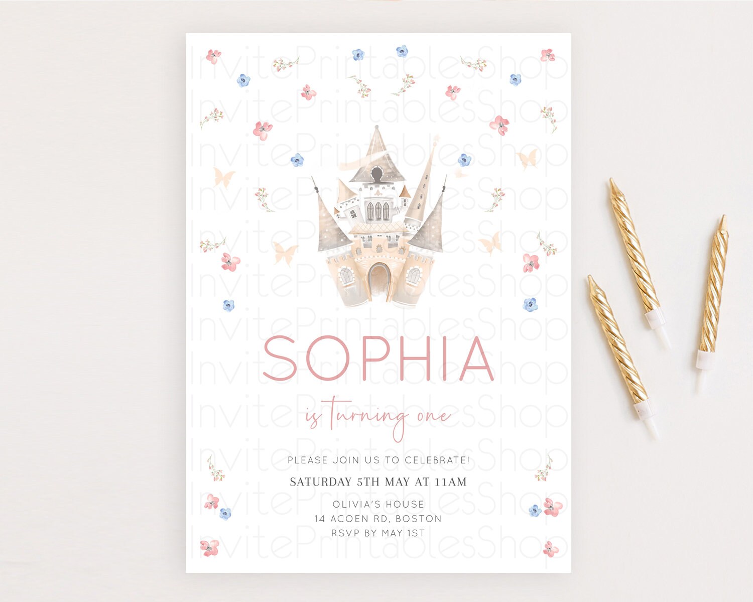 Princess Birthday Invitation Castle Invitation Royal Birthday Fairy Tale Enchanted Castle Pastel Floral Garden 1st First Birthday D10364