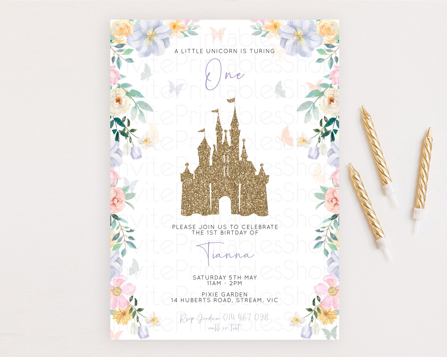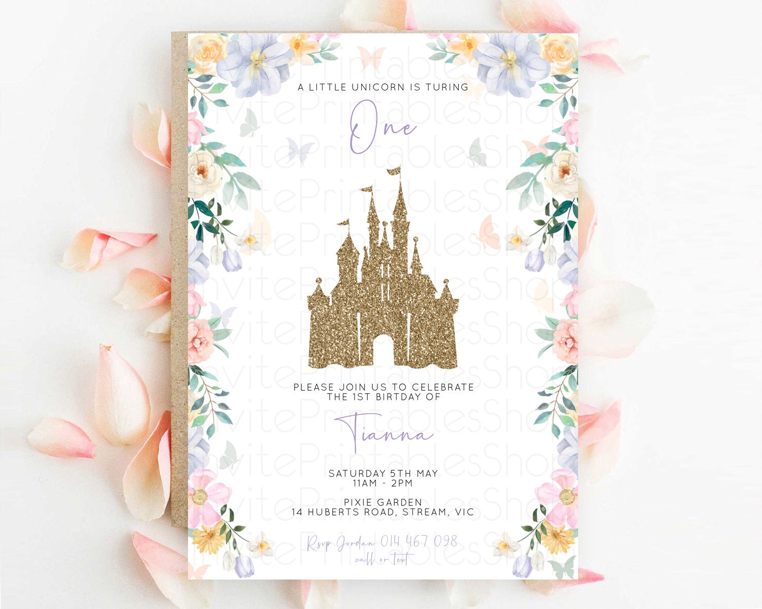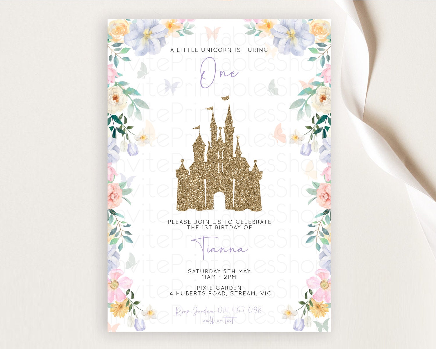 Princess Birthday Invitation Castle Invitation Royal Birthday Fairy Tale Enchanted Castle Pastel Floral Garden 1st First Birthday D10469
