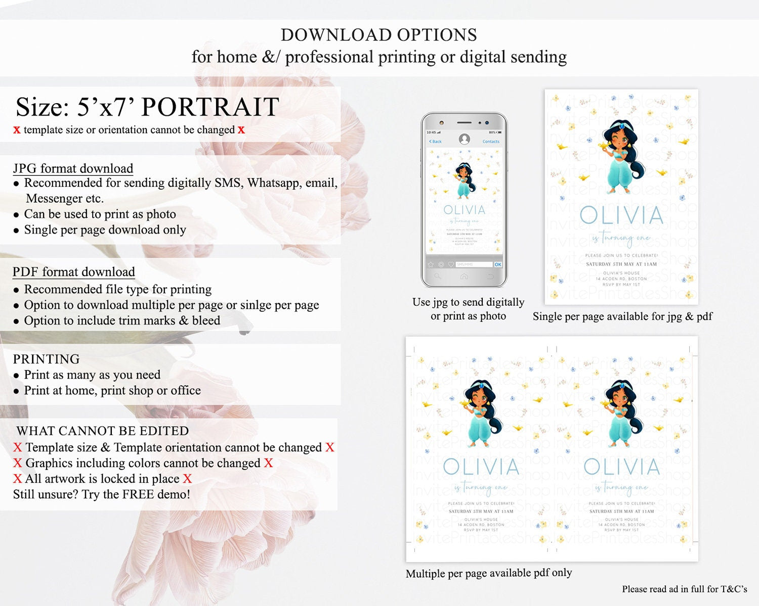 Princess Birthday Invitation Castle Invitation Royal Birthday Fairy Tale Enchanted Castle Pastel Floral Garden 1st First Birthday D10887