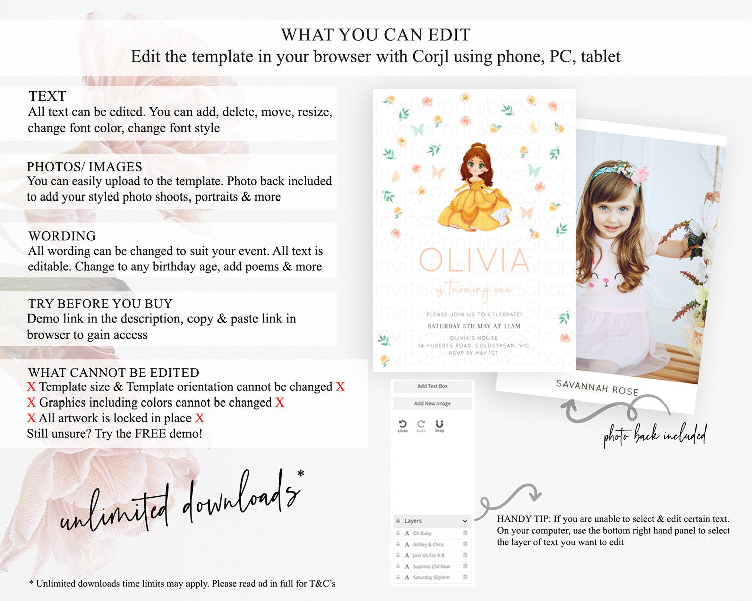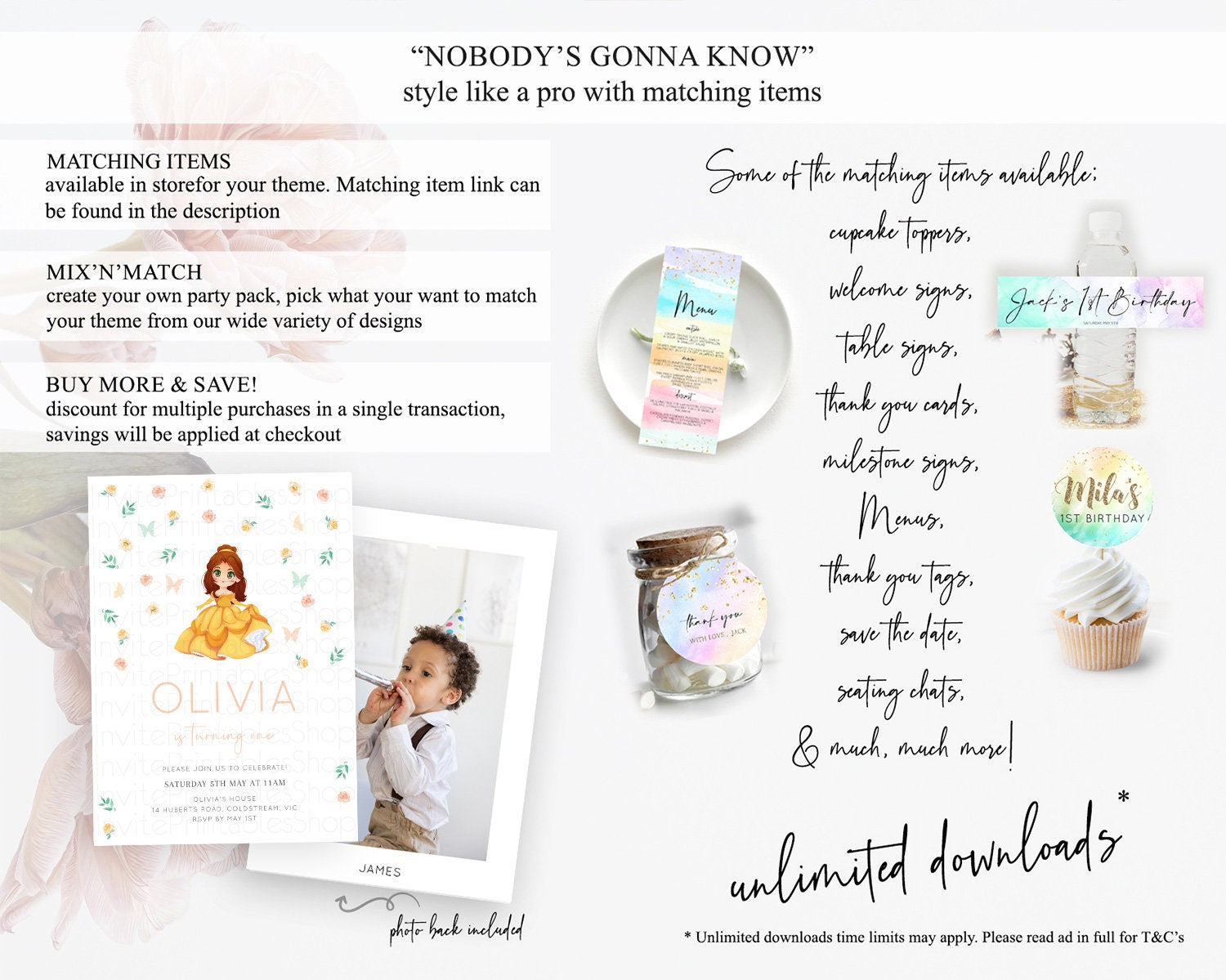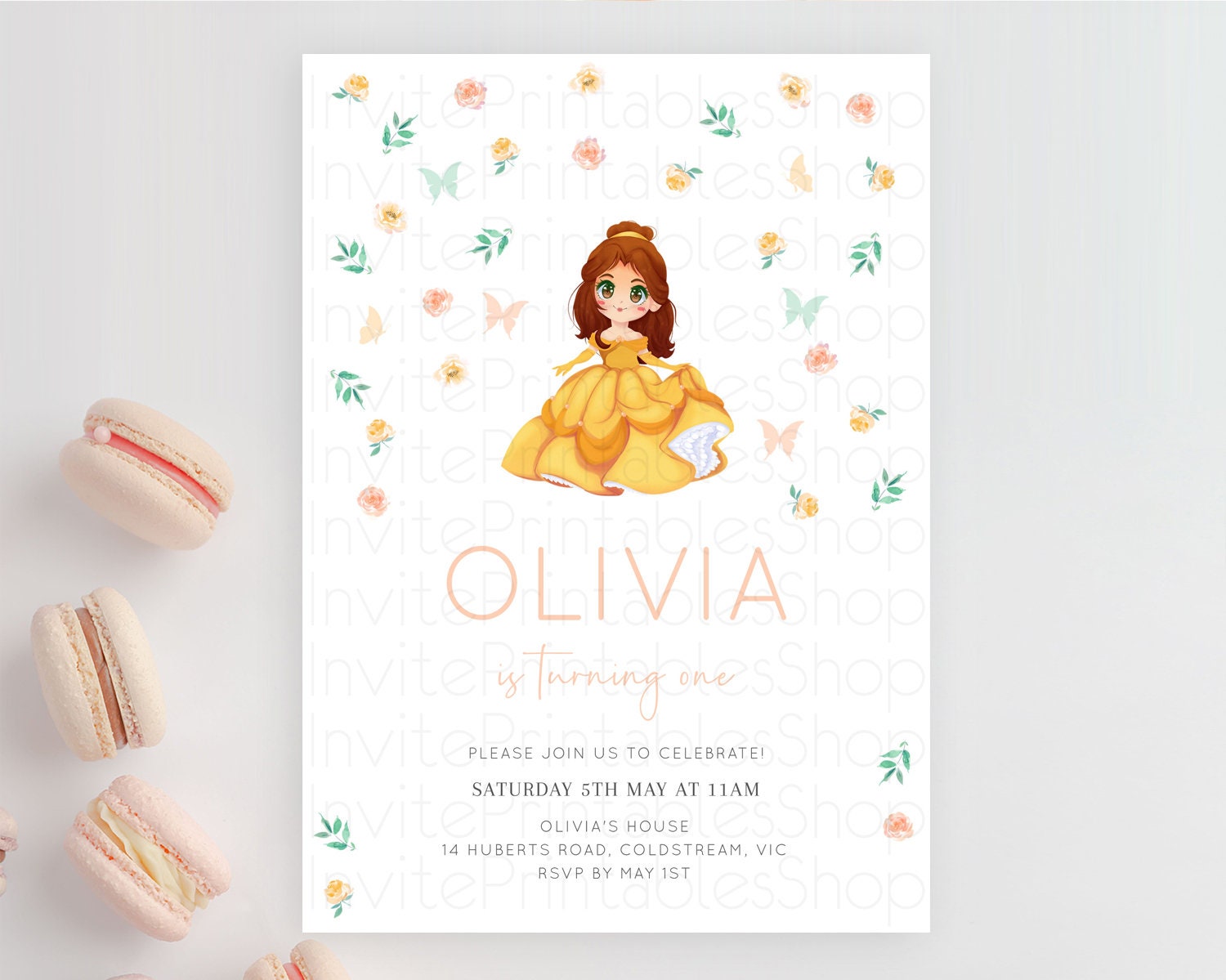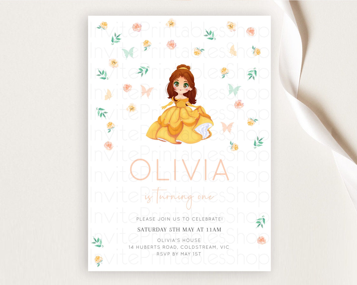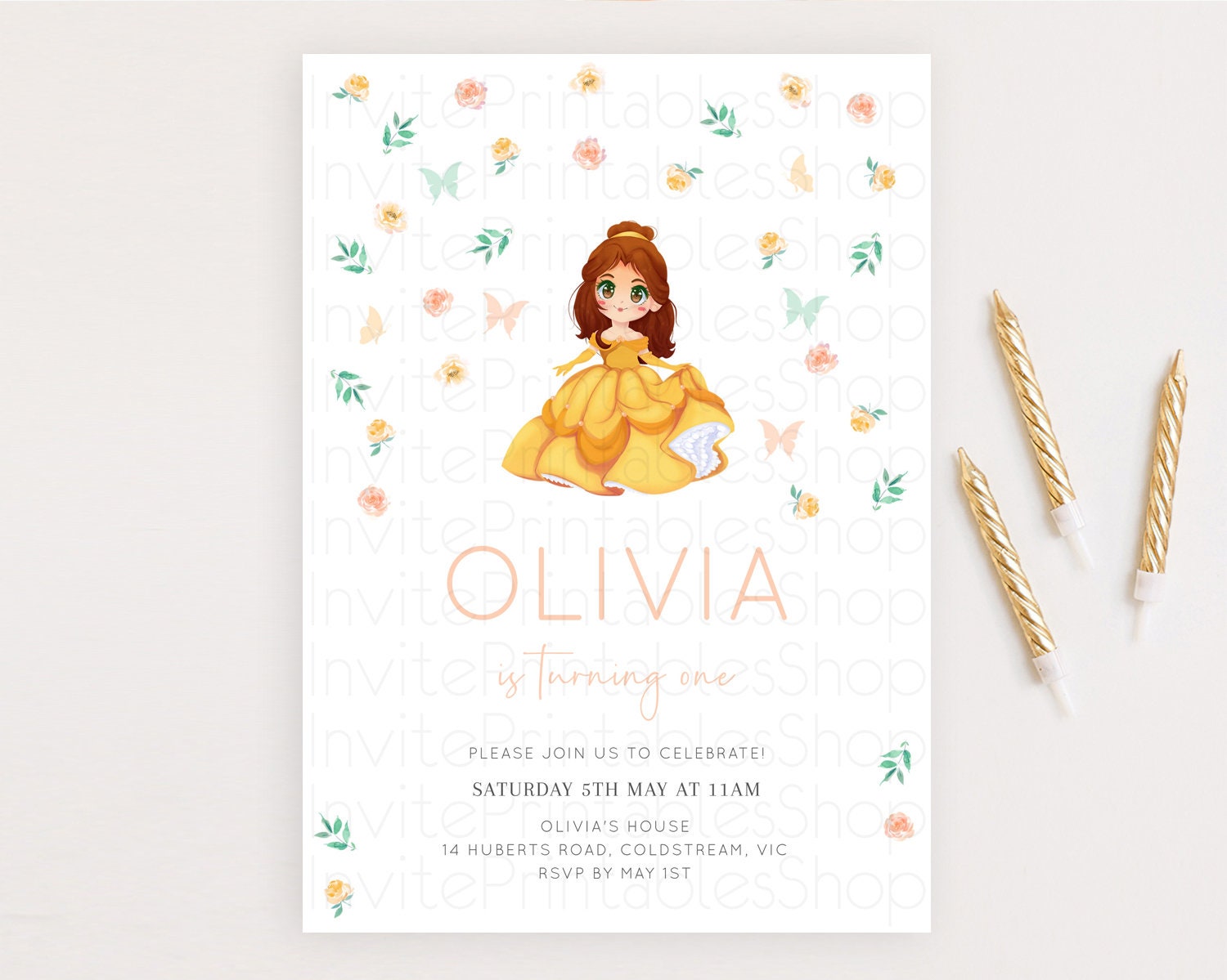Princess Birthday Invitation Castle Invitation Royal Birthday Fairy Tale Enchanted Castle Pastel Floral Garden 1st First Birthday D10890